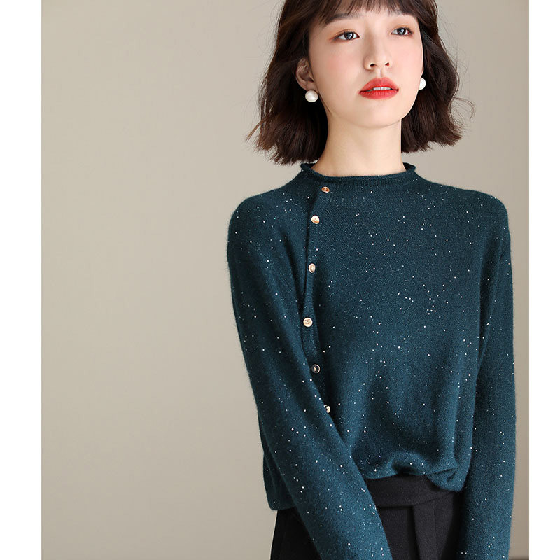 Шерстяной трикотажный осенний небольшой дизайнерский свитер, тренд сезона, оверсайз