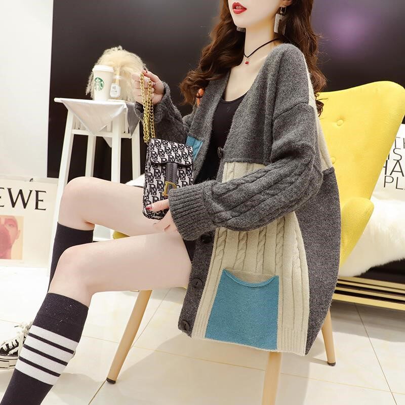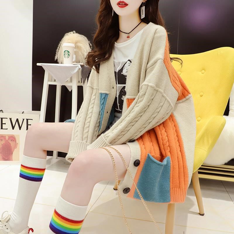 Осенний трикотажный свитер, кардиган, милая модная куртка, оверсайз, в западном стиле