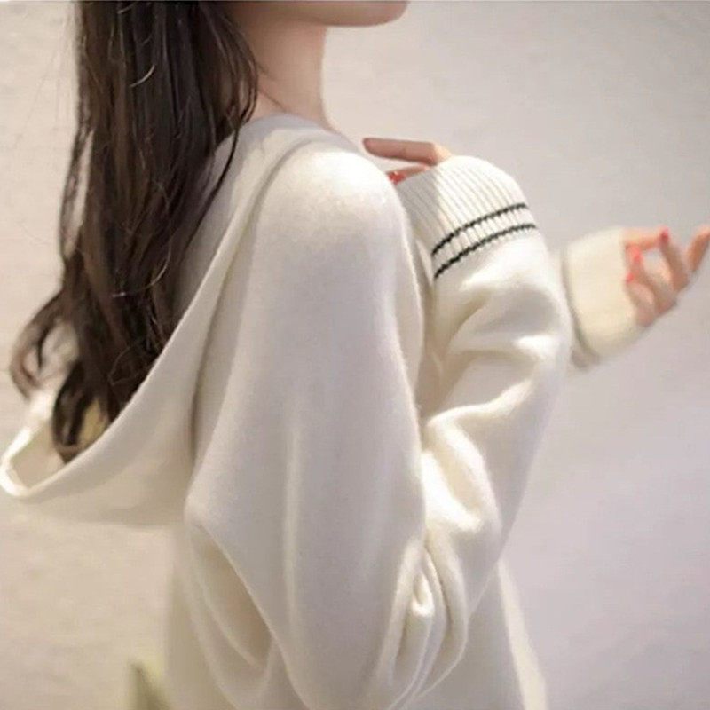 Трикотажный свитер, толстовка с капюшоном, осенний милый шерстяной лонгслив, коллекция 2021