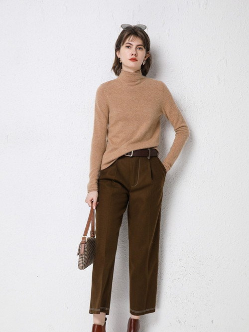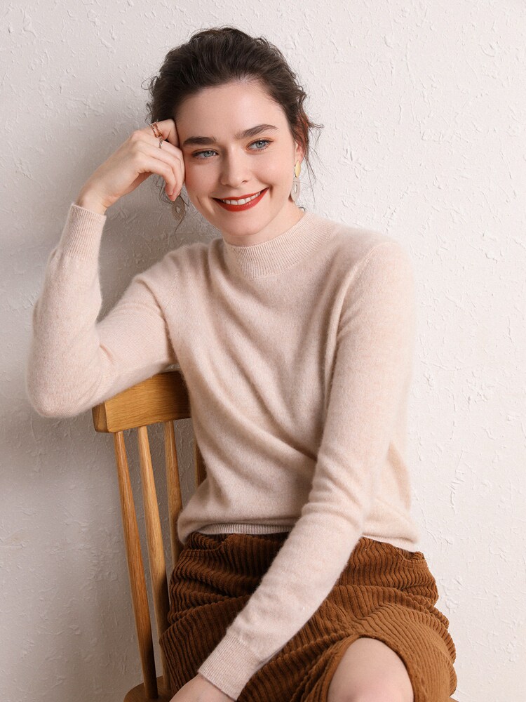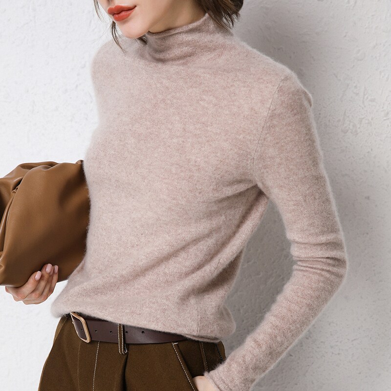 Шерстяной демисезонный базовый кашемировый свитер, высокий воротник, в западном стиле