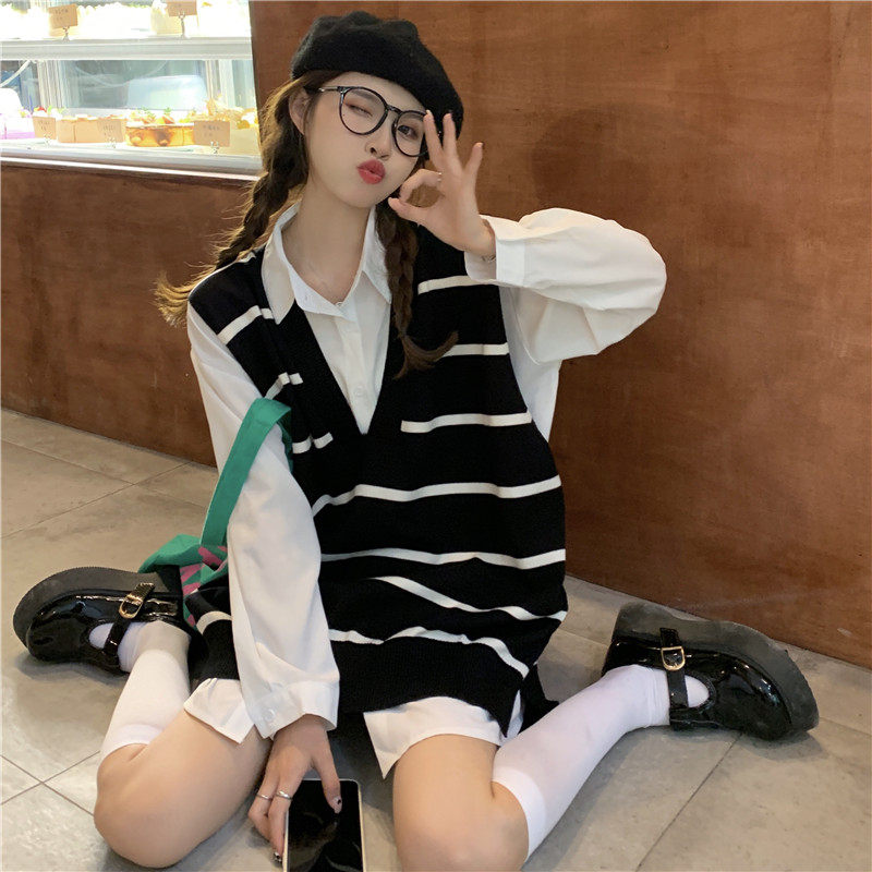 Трикотажный осенний ретро свитер, жилет, свободный крой
