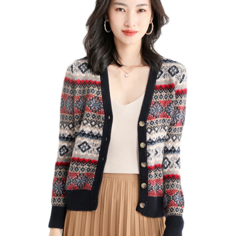 Демисезонный шерстяной этнический свитер, кардиган, плащ, этнический стиль, V-образный вырез, свободный крой, большой размер