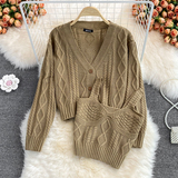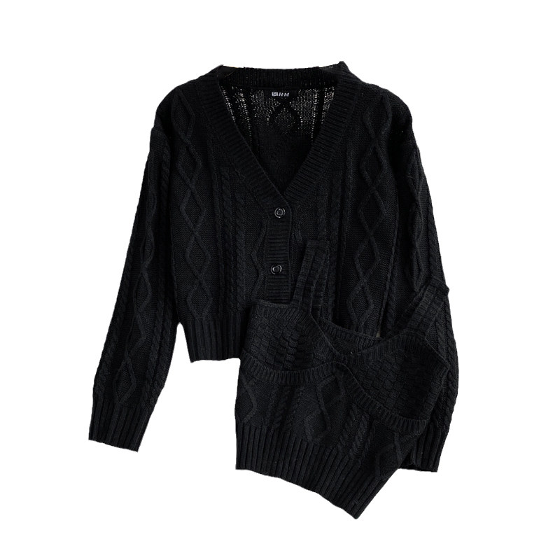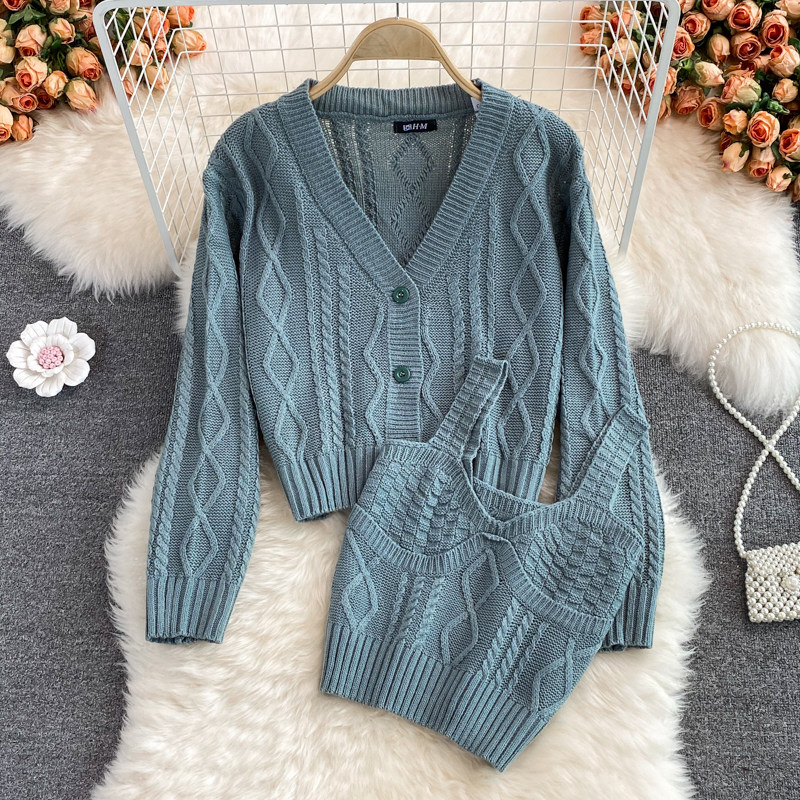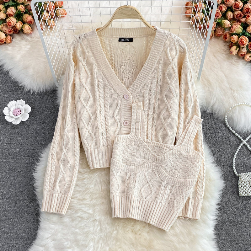 Кардиган с косичкой, свитер, универсальная куртка, комплект, топ с чашечками, V-образный вырез