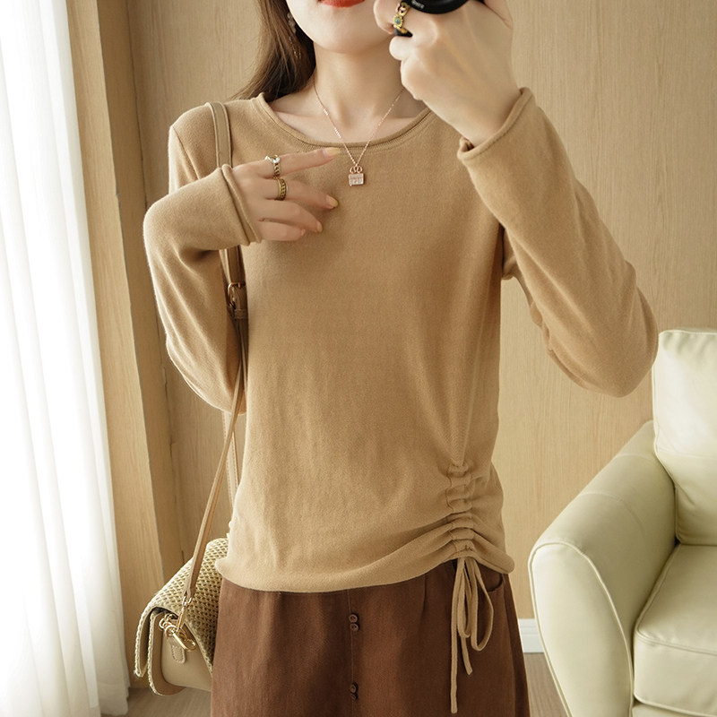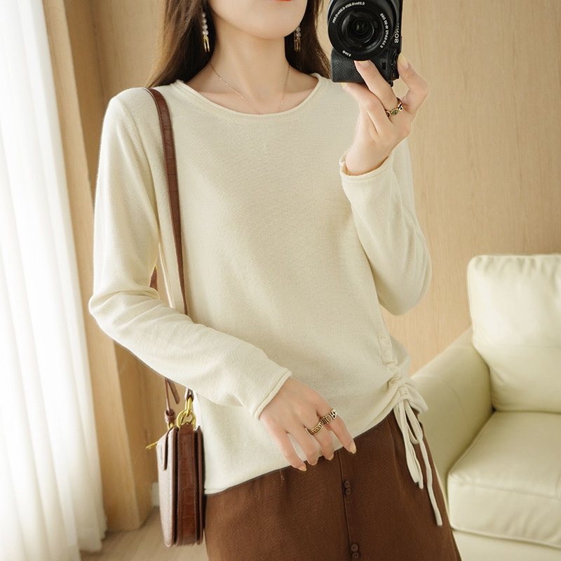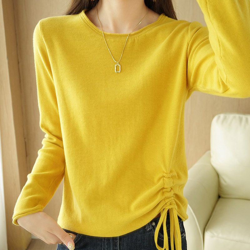 Хлопковый осенний свитер, дизайнерский лонгслив, 100% хлопок, на шнурках, в корейском стиле, тренд сезона