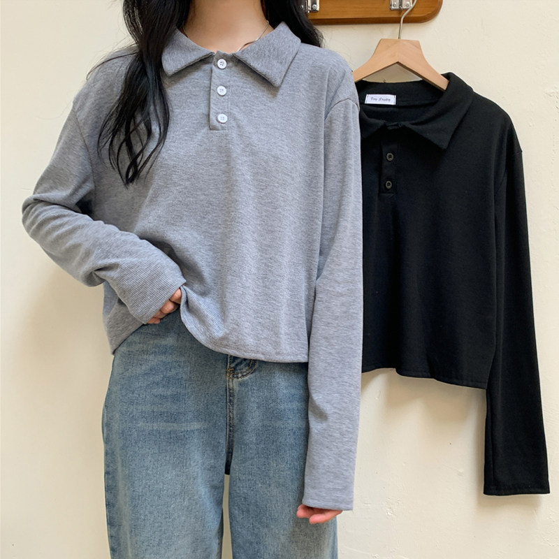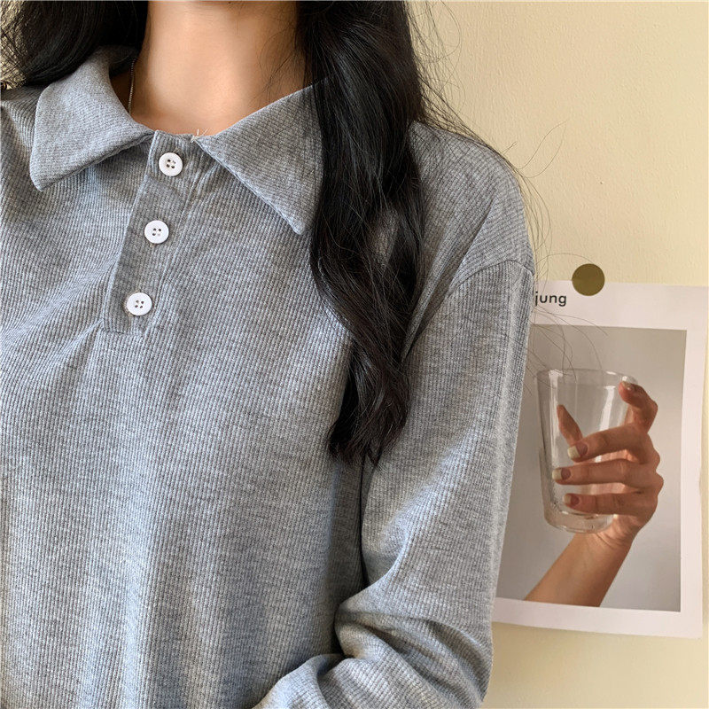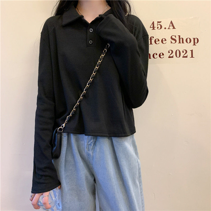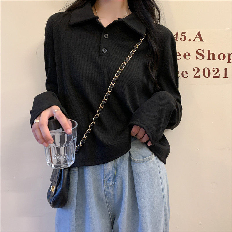 Трикотажный осенний свитер, базовый приятный телу лонгслив, городской стиль, оверсайз, воротник поло