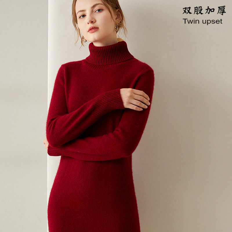 Трикотажное кашемировое длинное демисезонное приталенное шерстяное платье, увеличенная толщина, средней длины