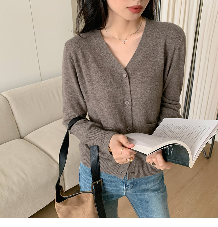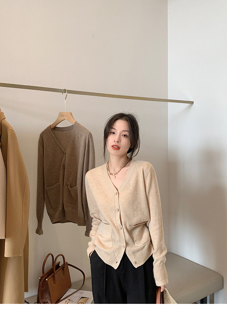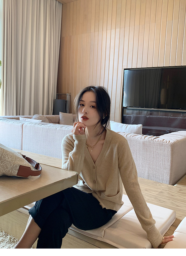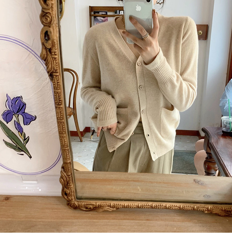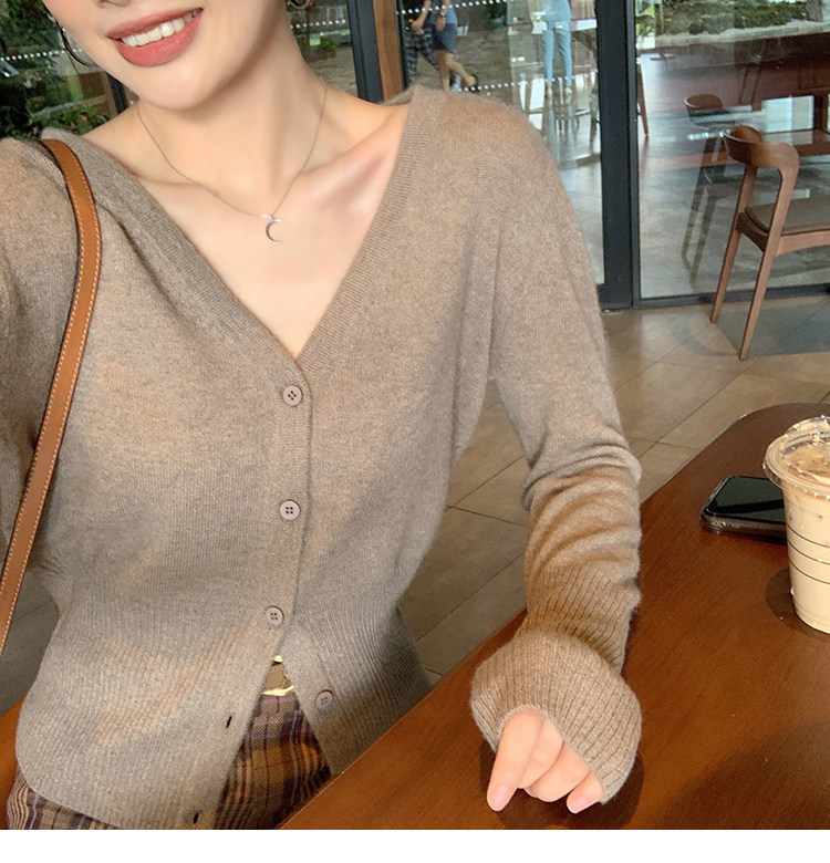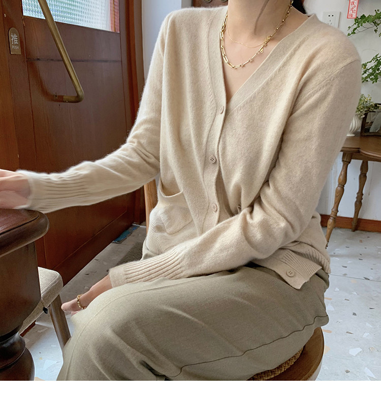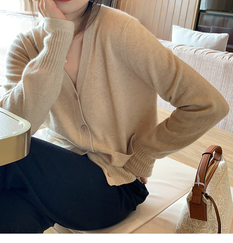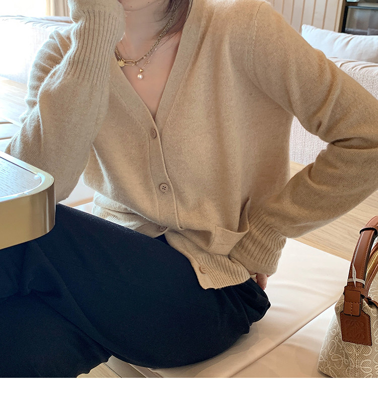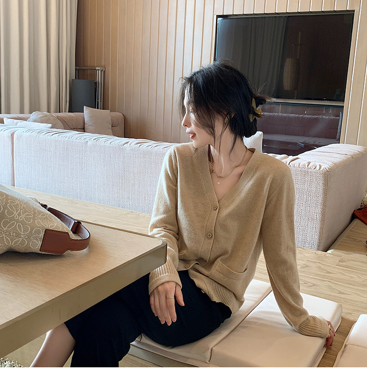 Кашемировый трикотажный лонгслив, кардиган, V-образный вырез