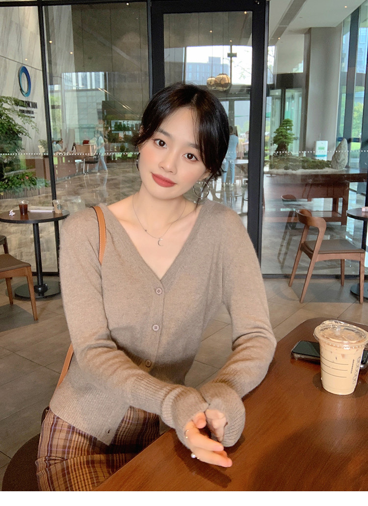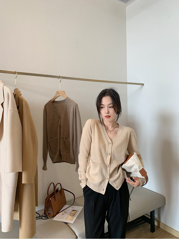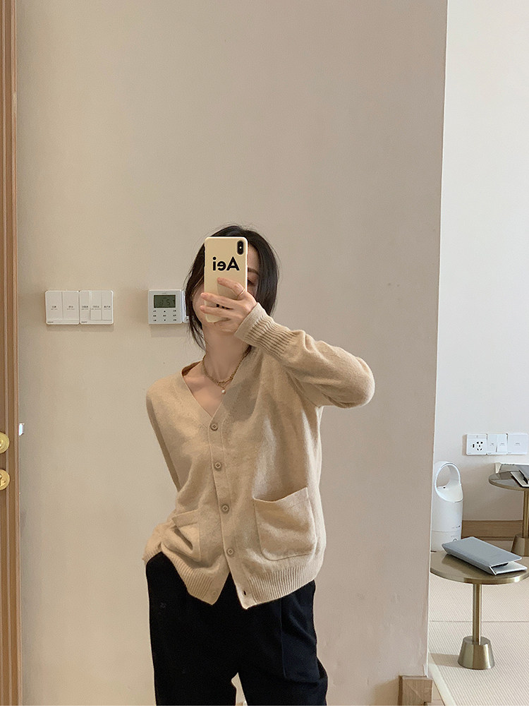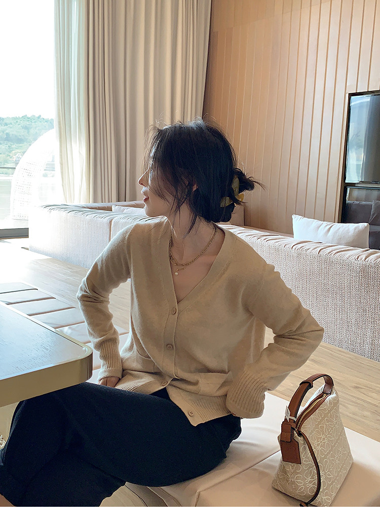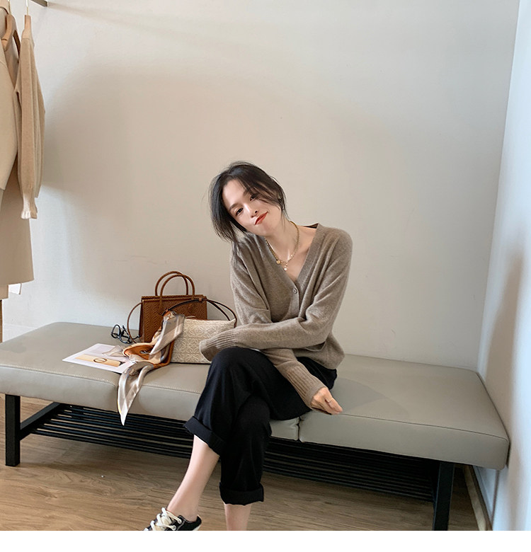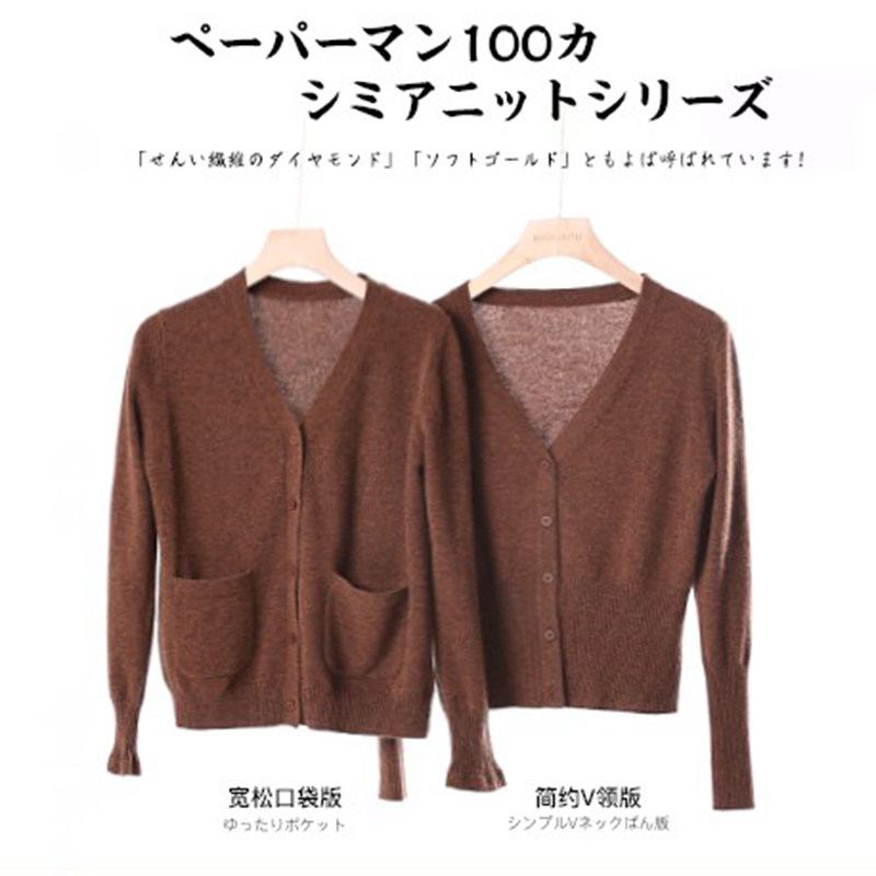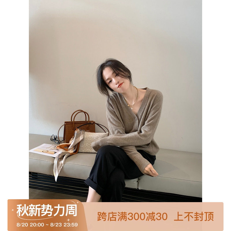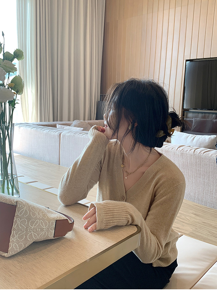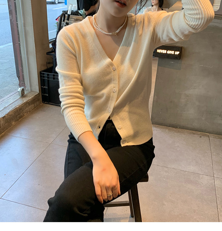 Кашемировый трикотажный лонгслив, кардиган, V-образный вырез