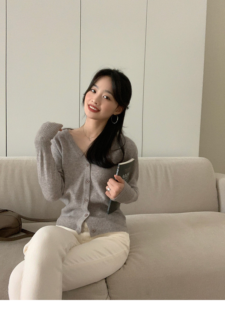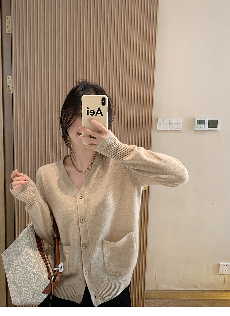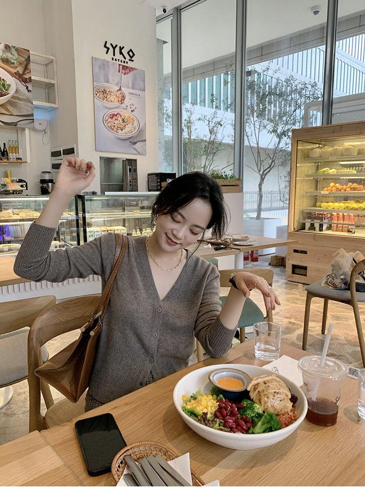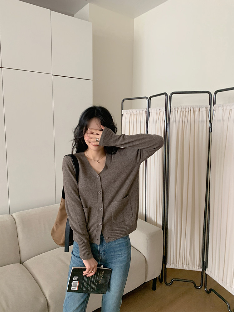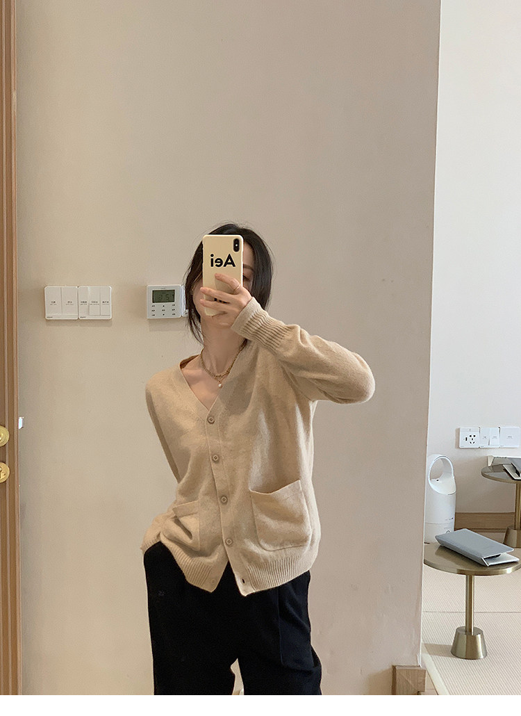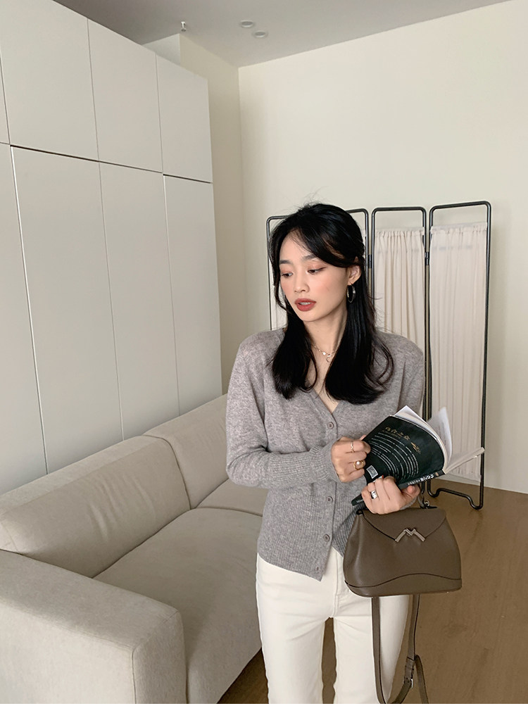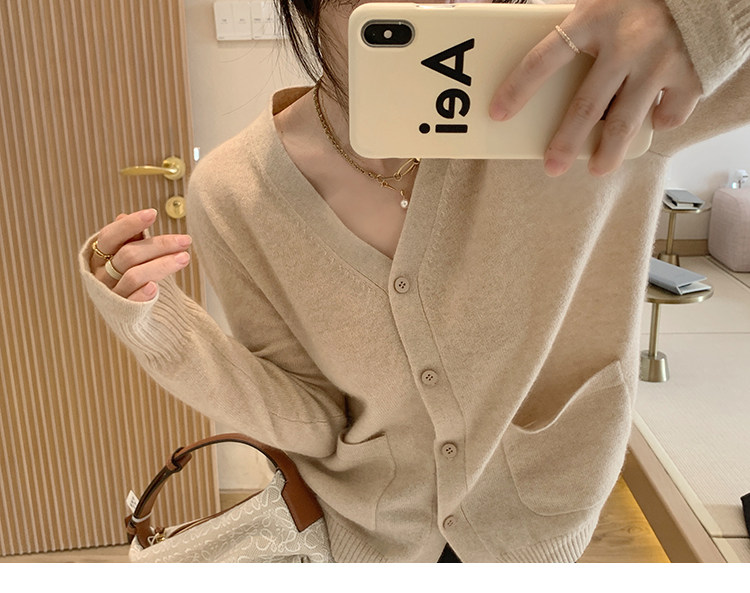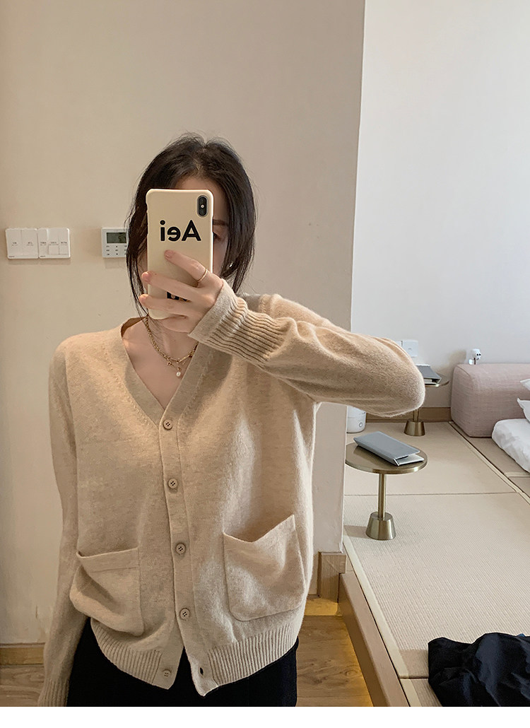 Кашемировый трикотажный лонгслив, кардиган, V-образный вырез