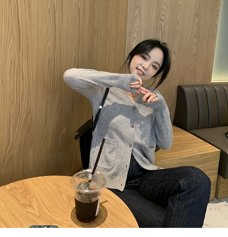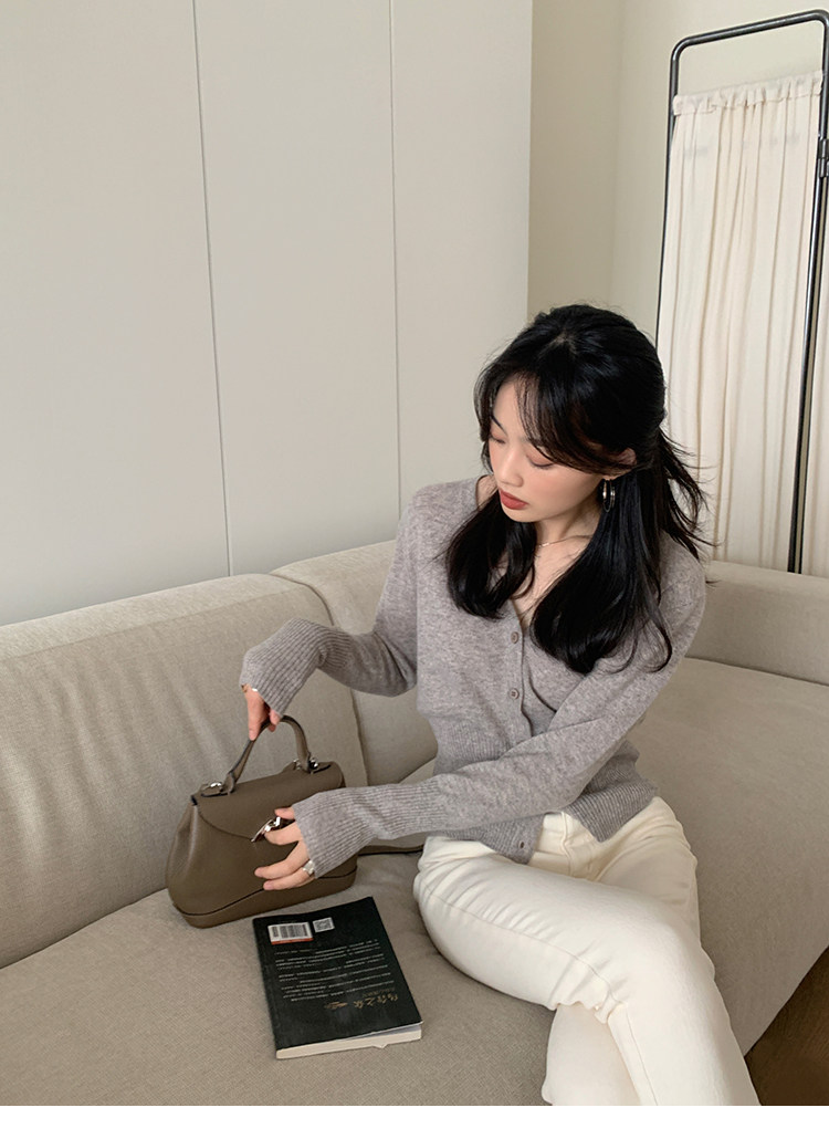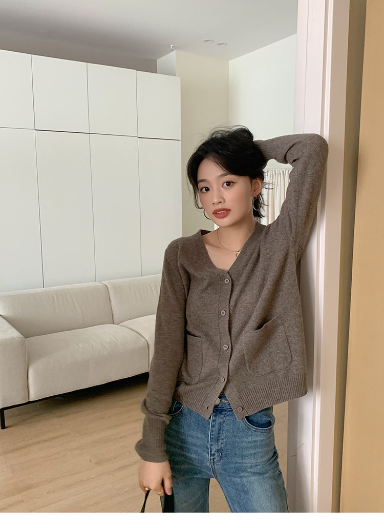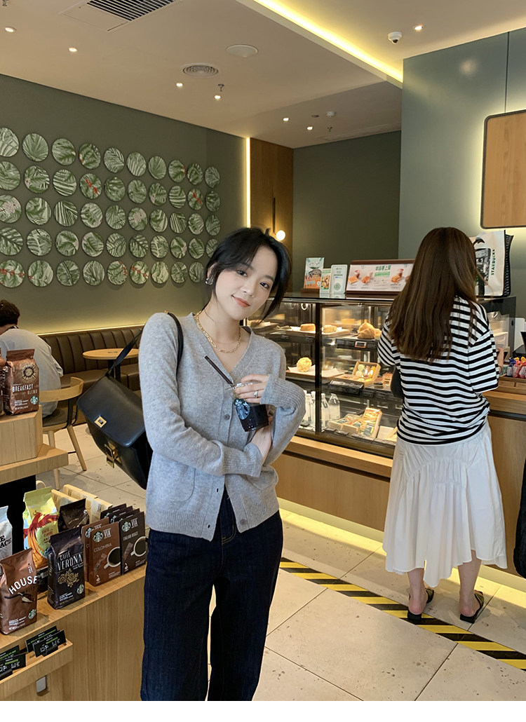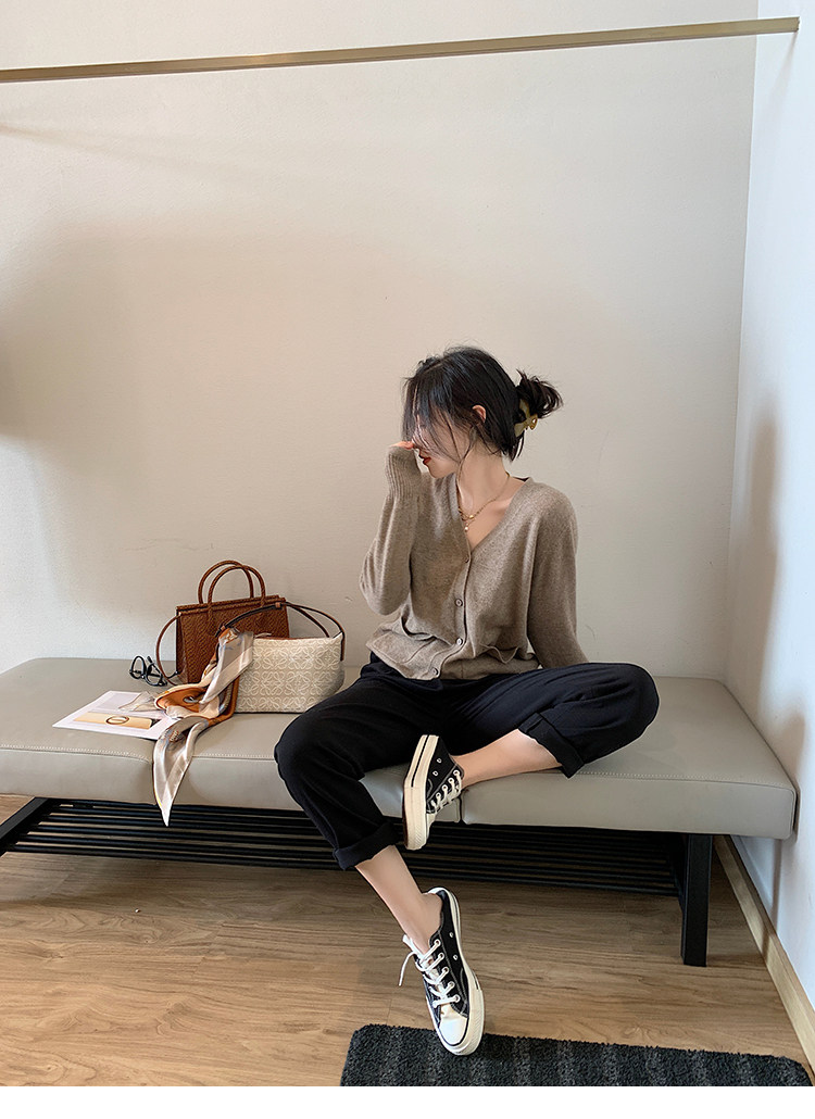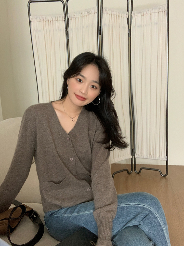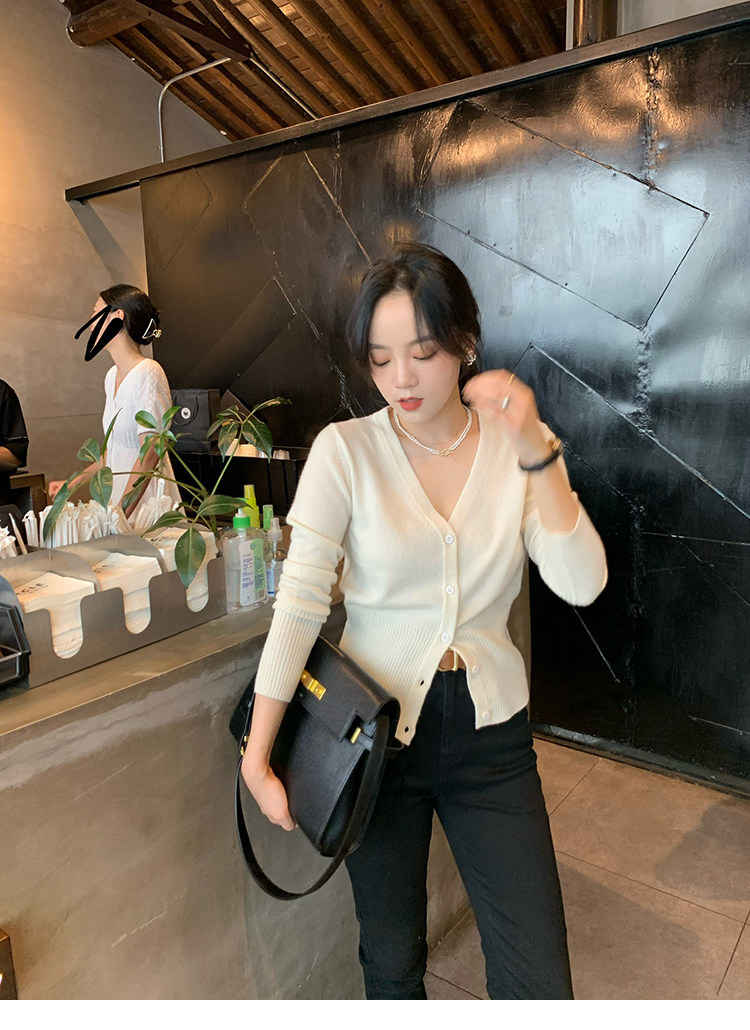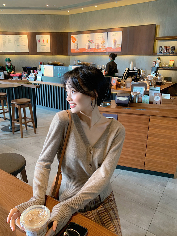 Кашемировый трикотажный лонгслив, кардиган, V-образный вырез