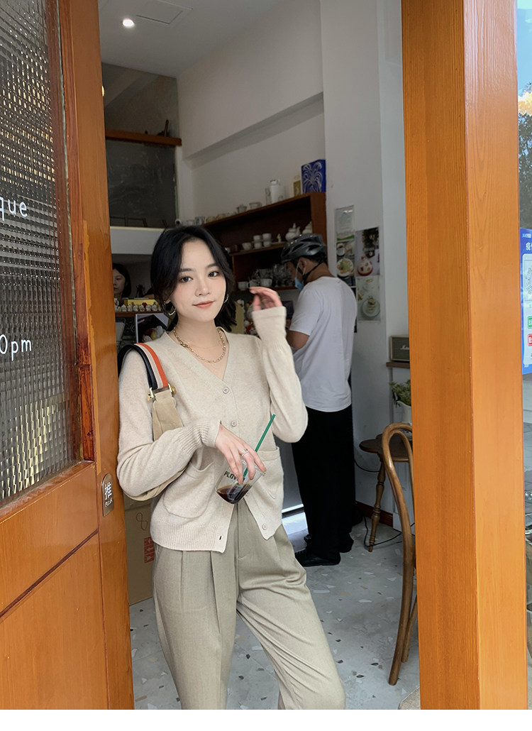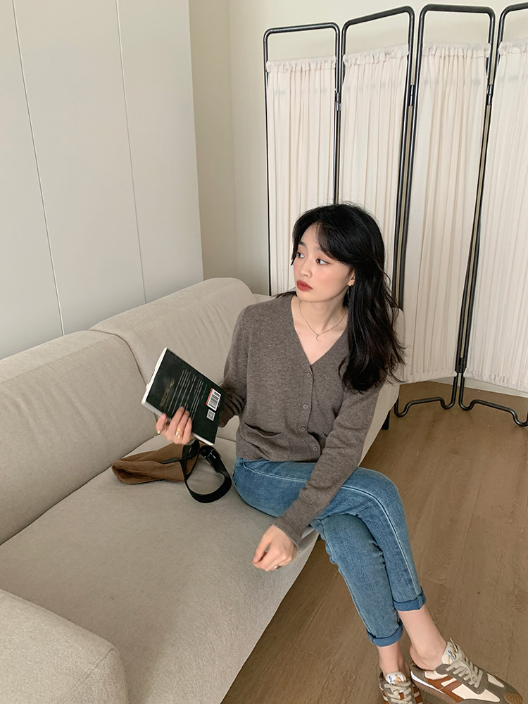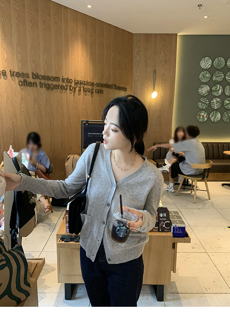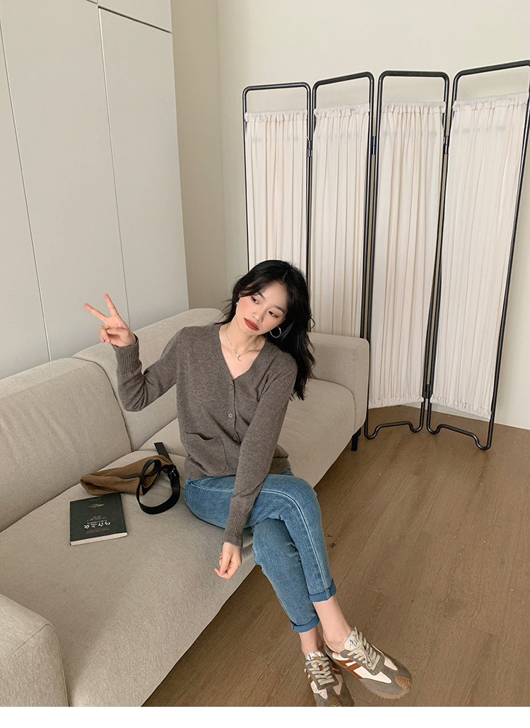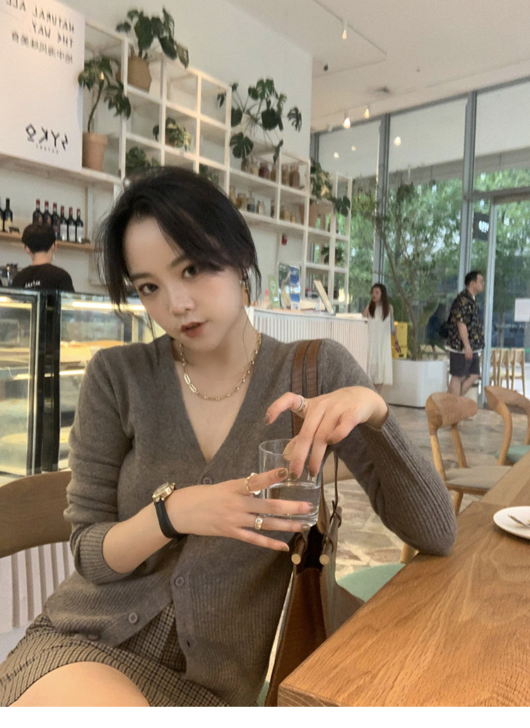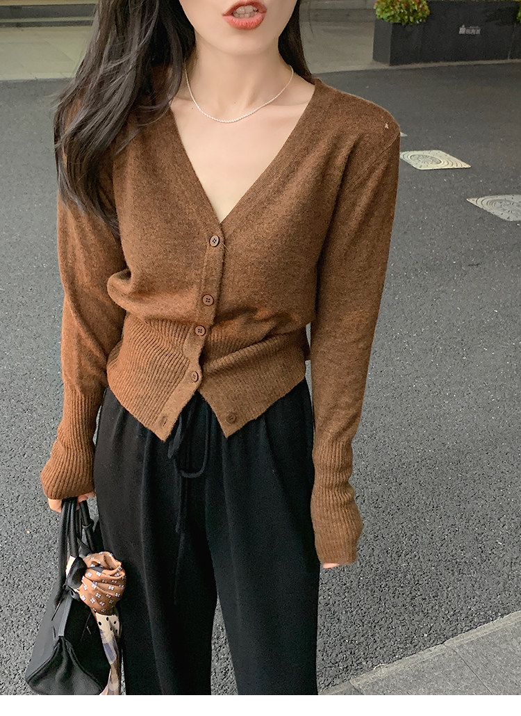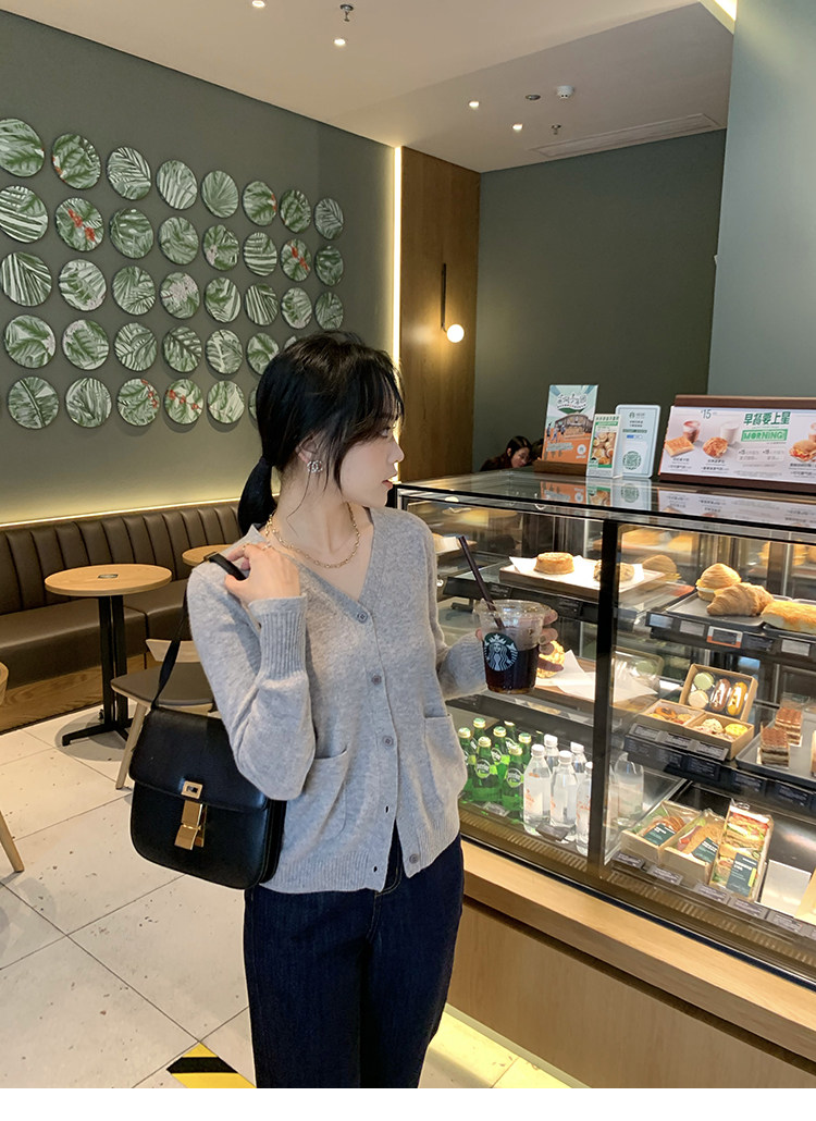 Кашемировый трикотажный лонгслив, кардиган, V-образный вырез