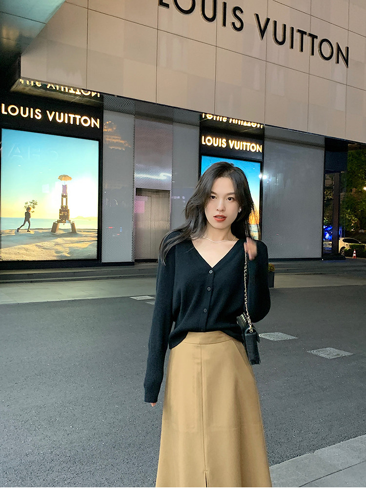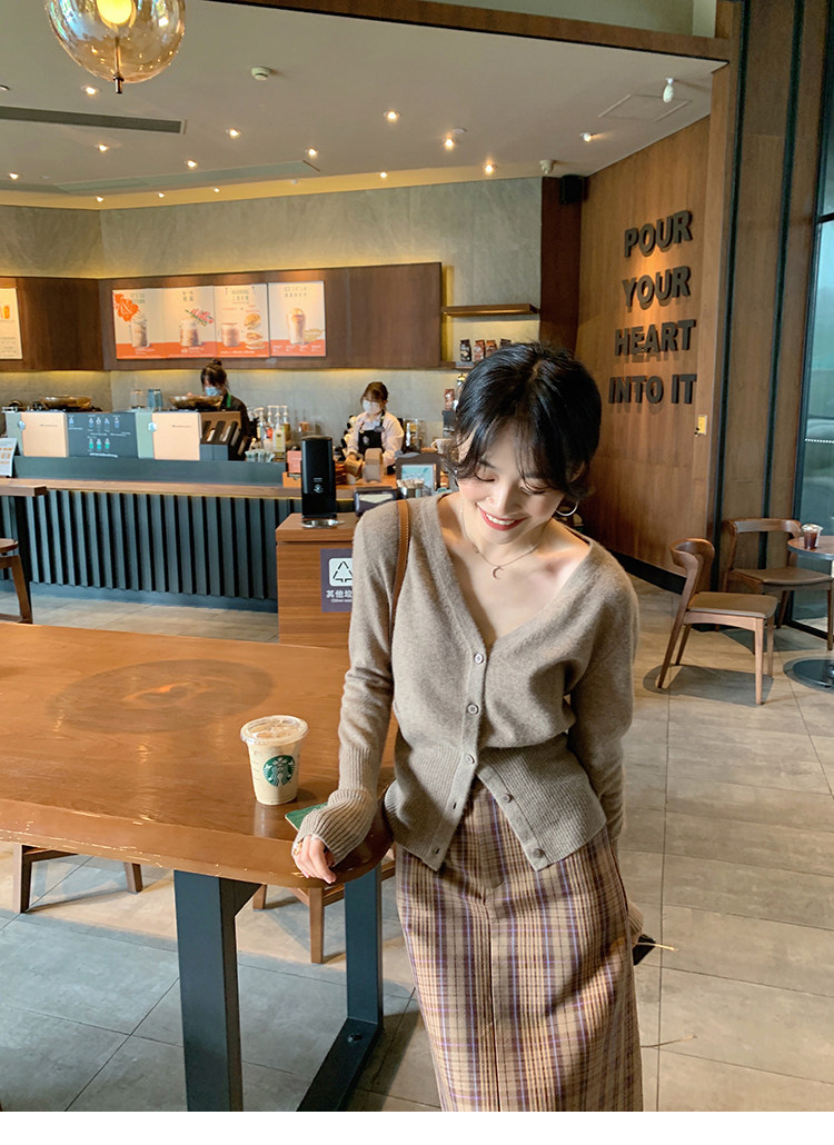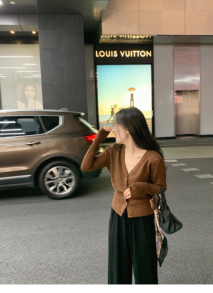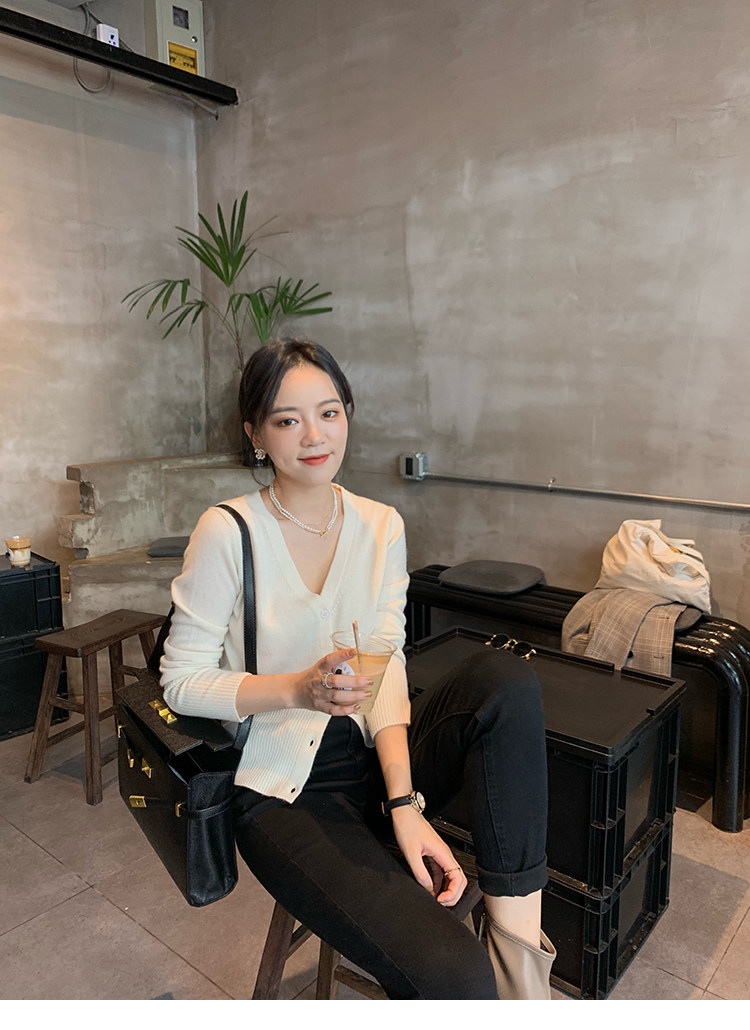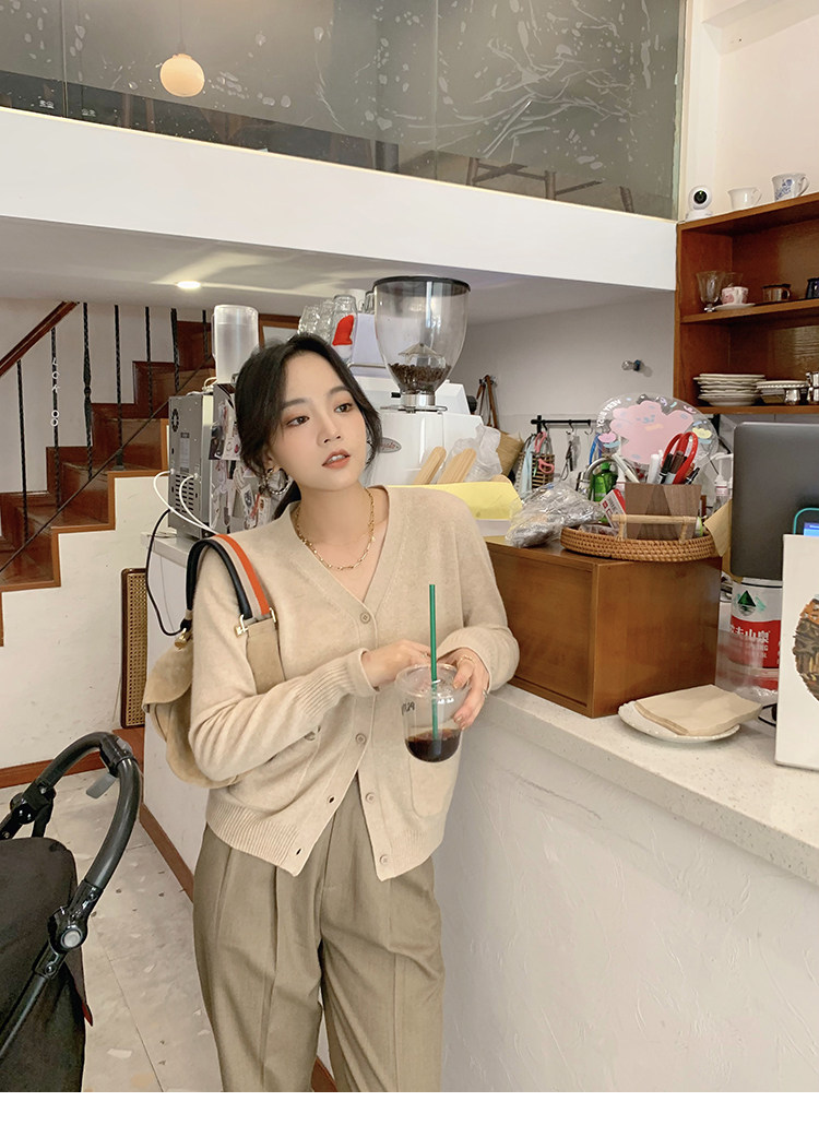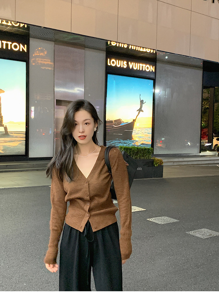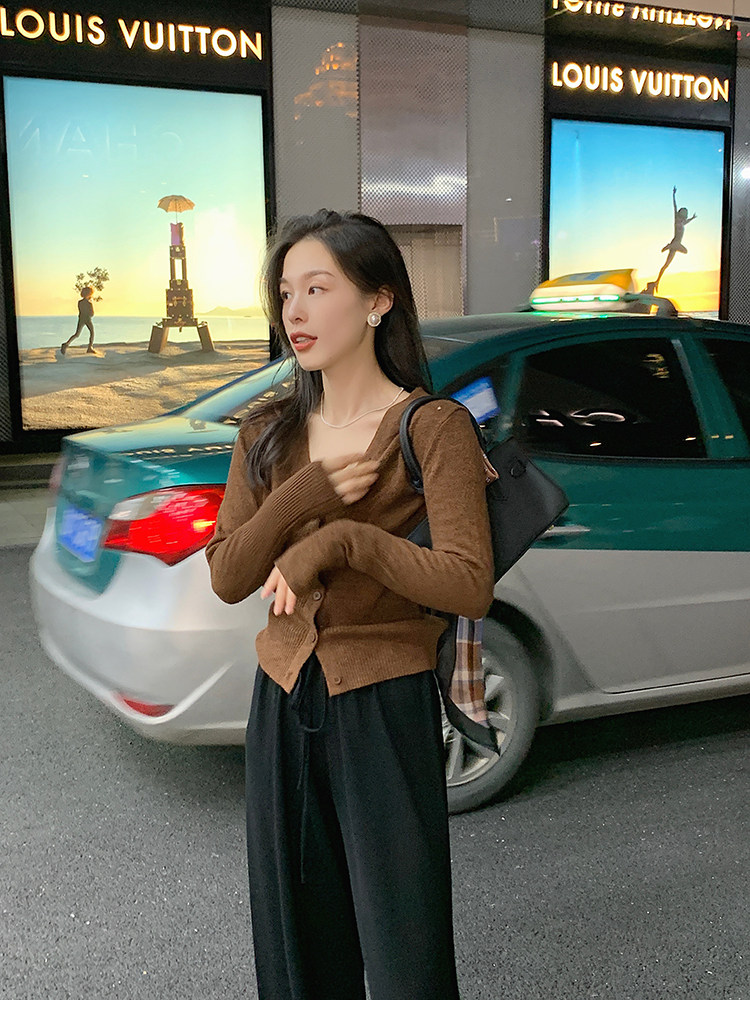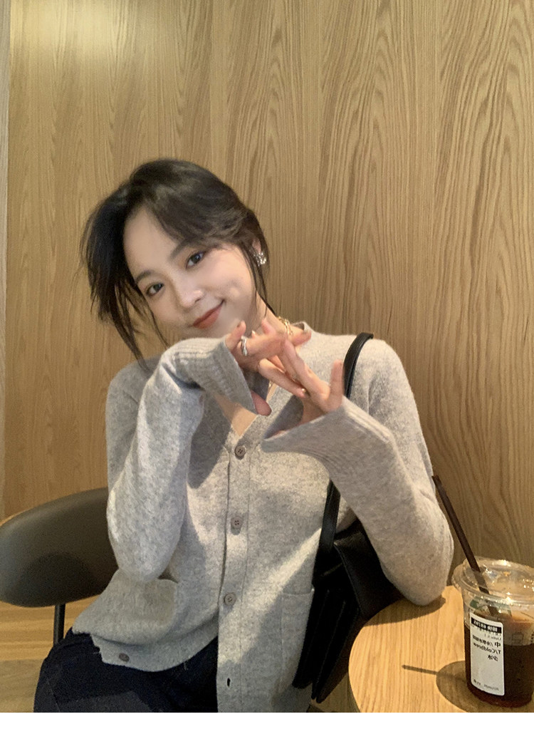 Кашемировый трикотажный лонгслив, кардиган, V-образный вырез