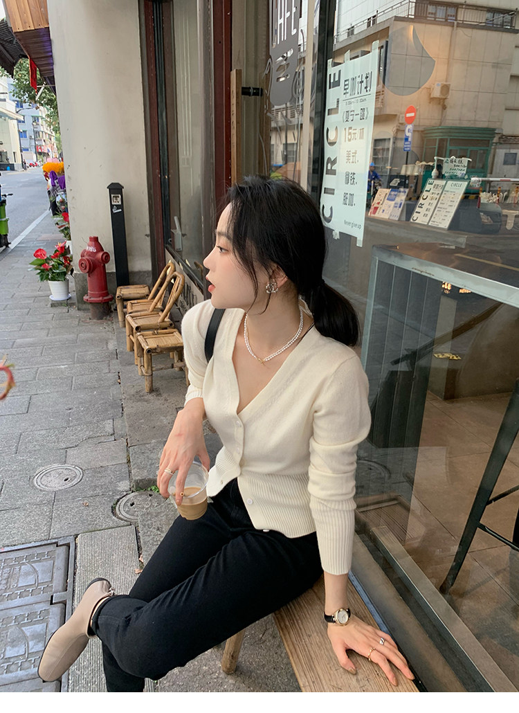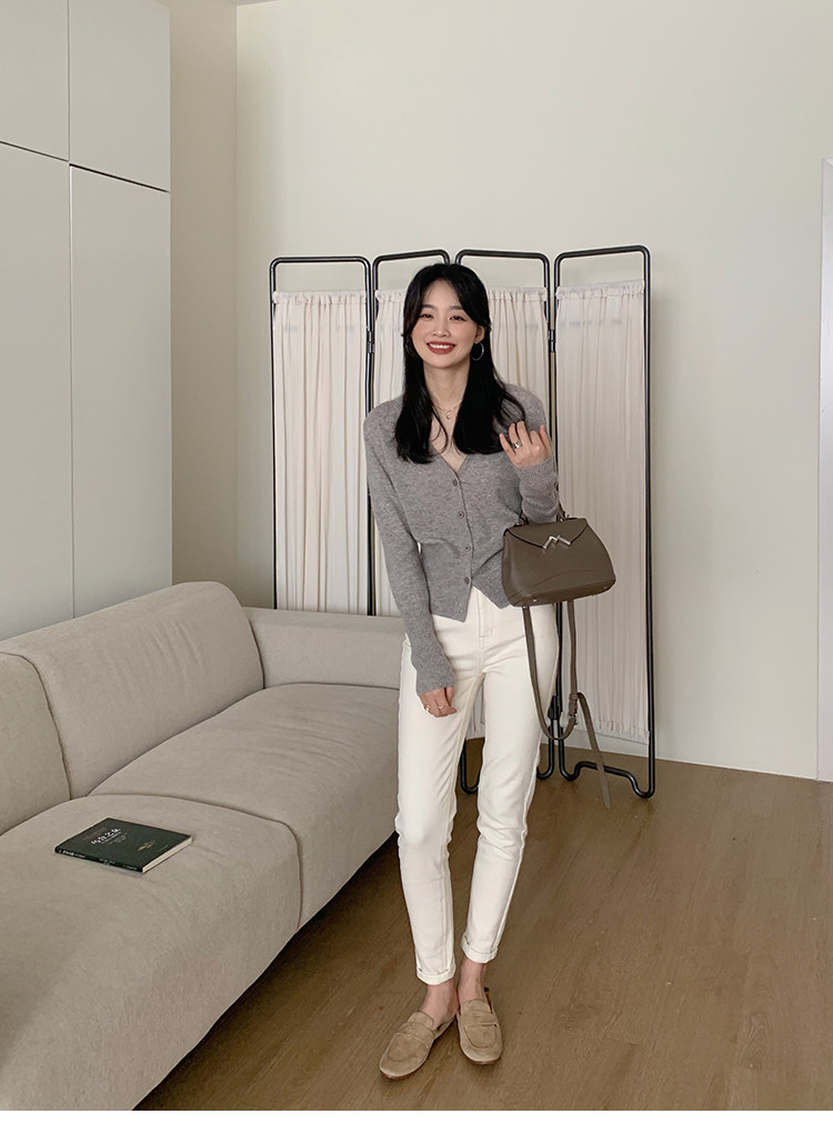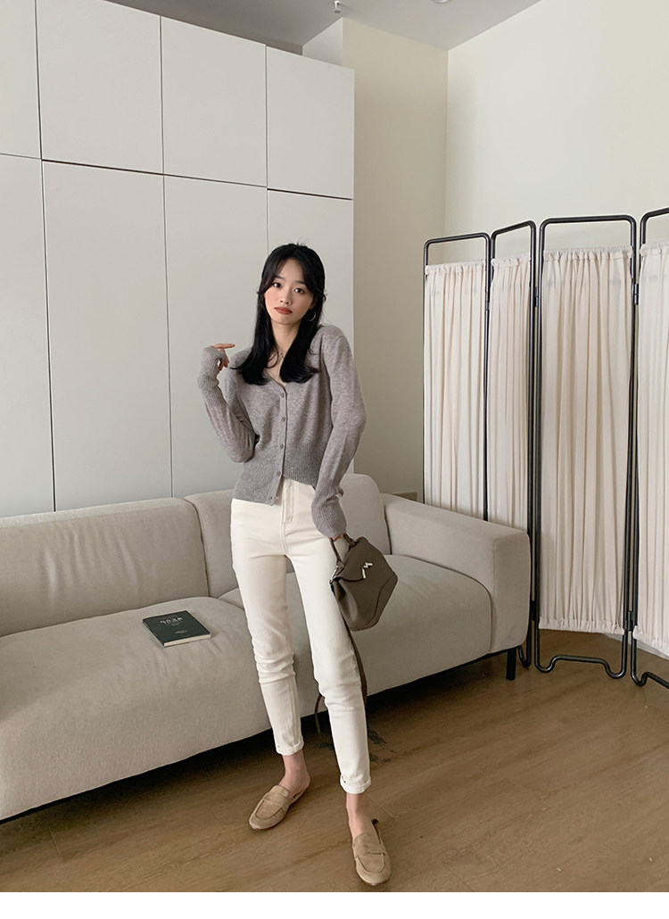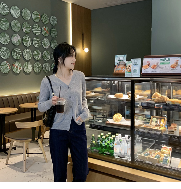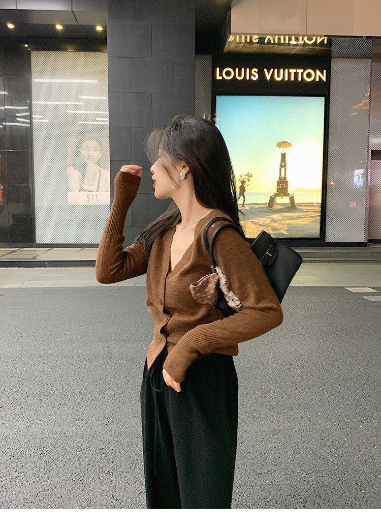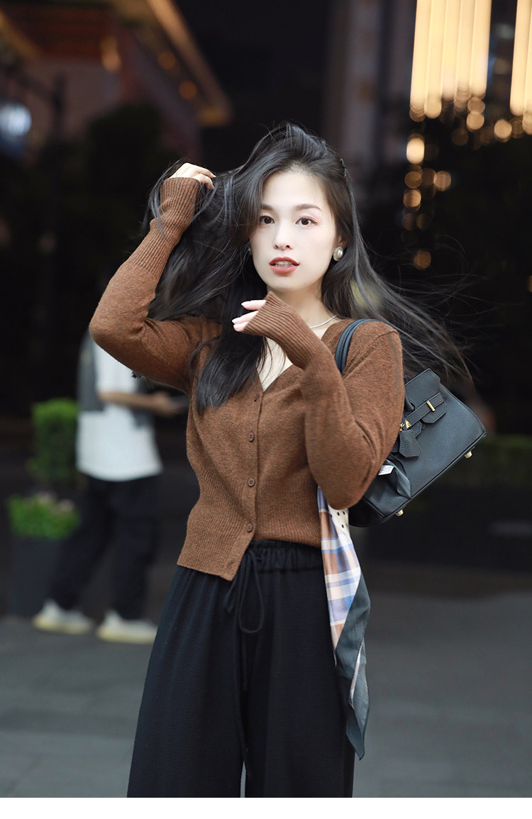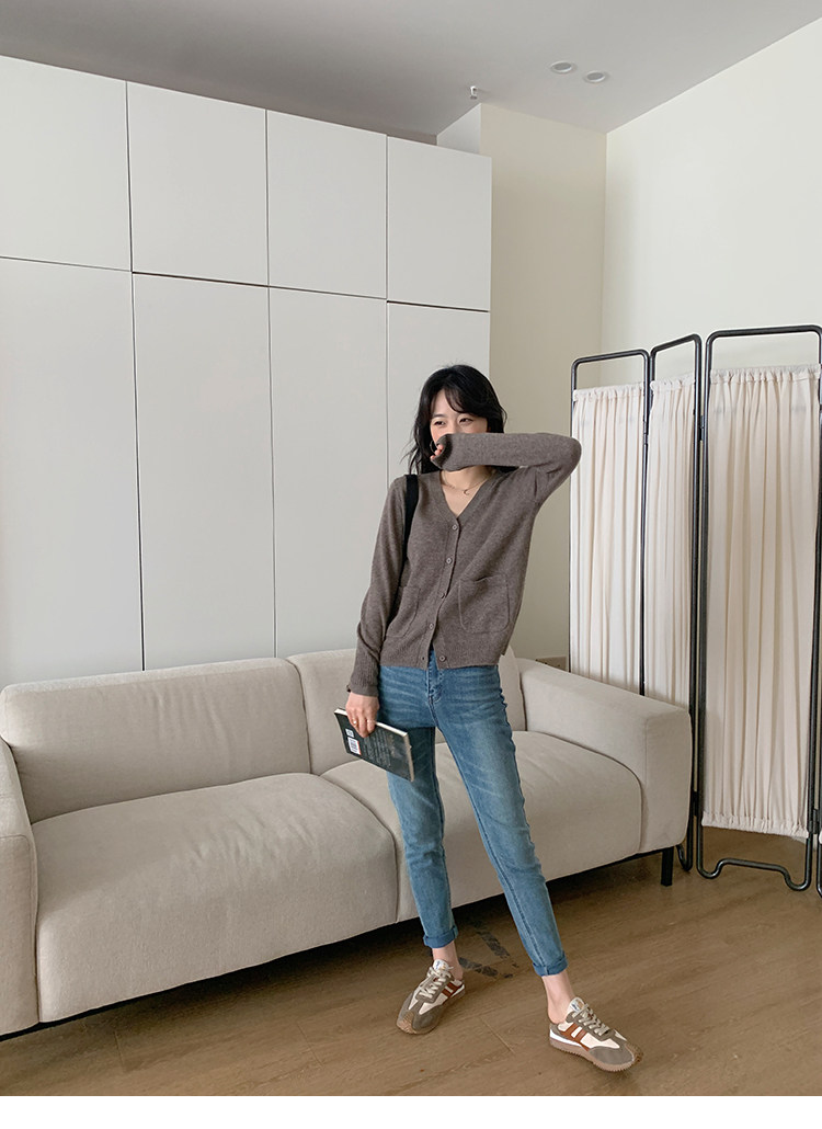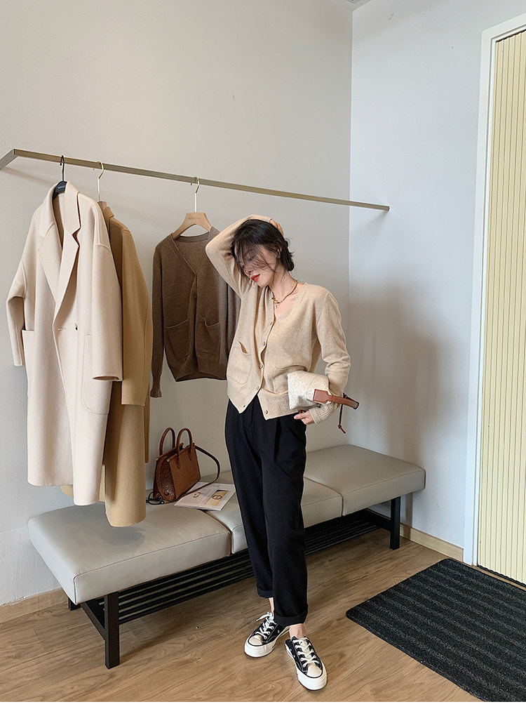 Кашемировый трикотажный лонгслив, кардиган, V-образный вырез