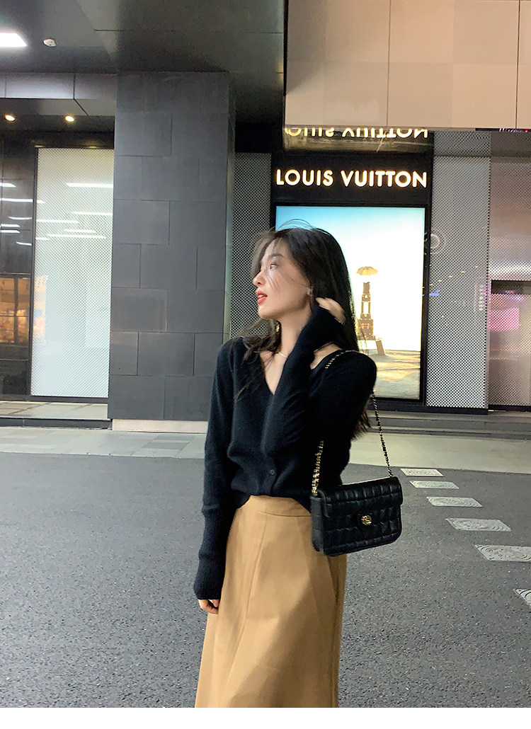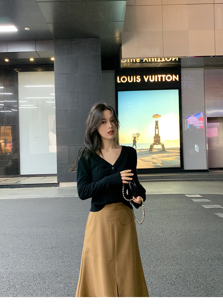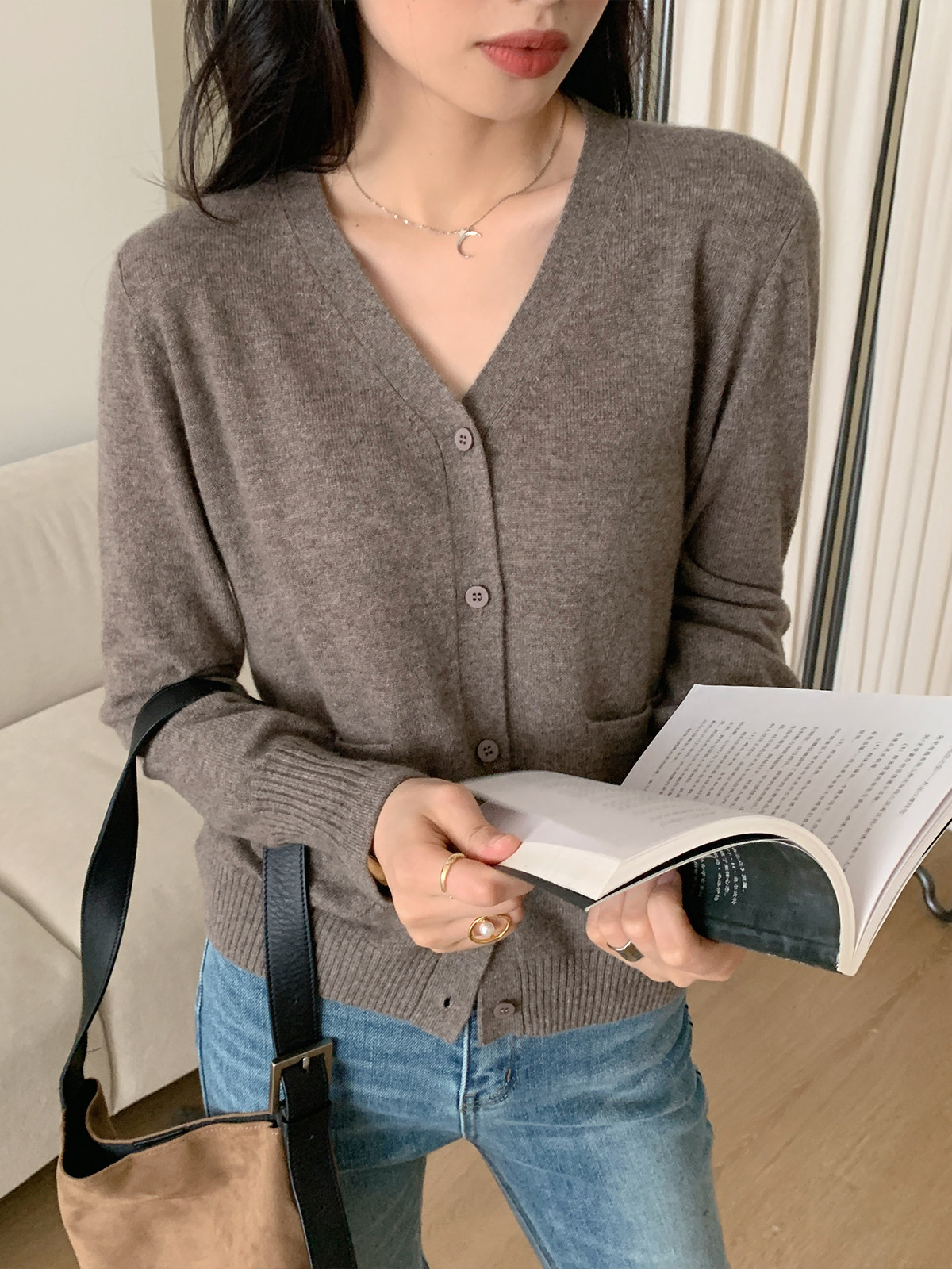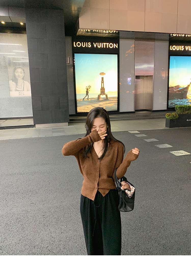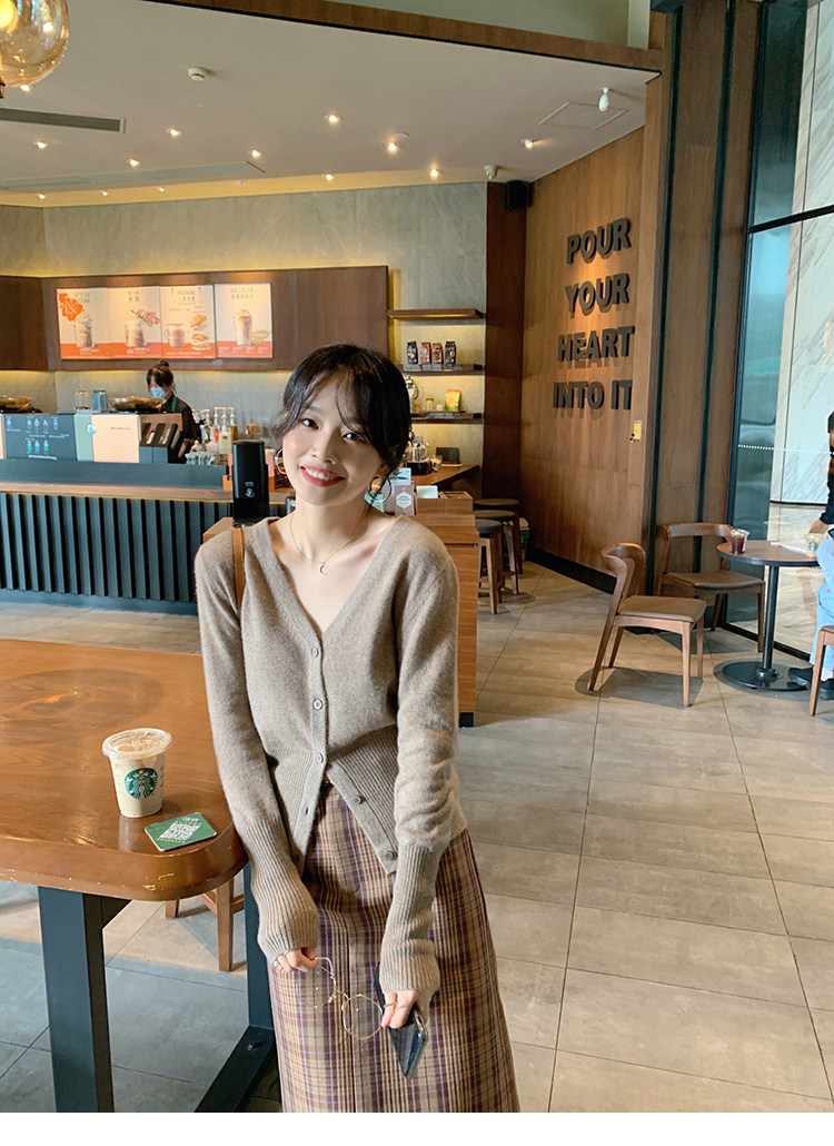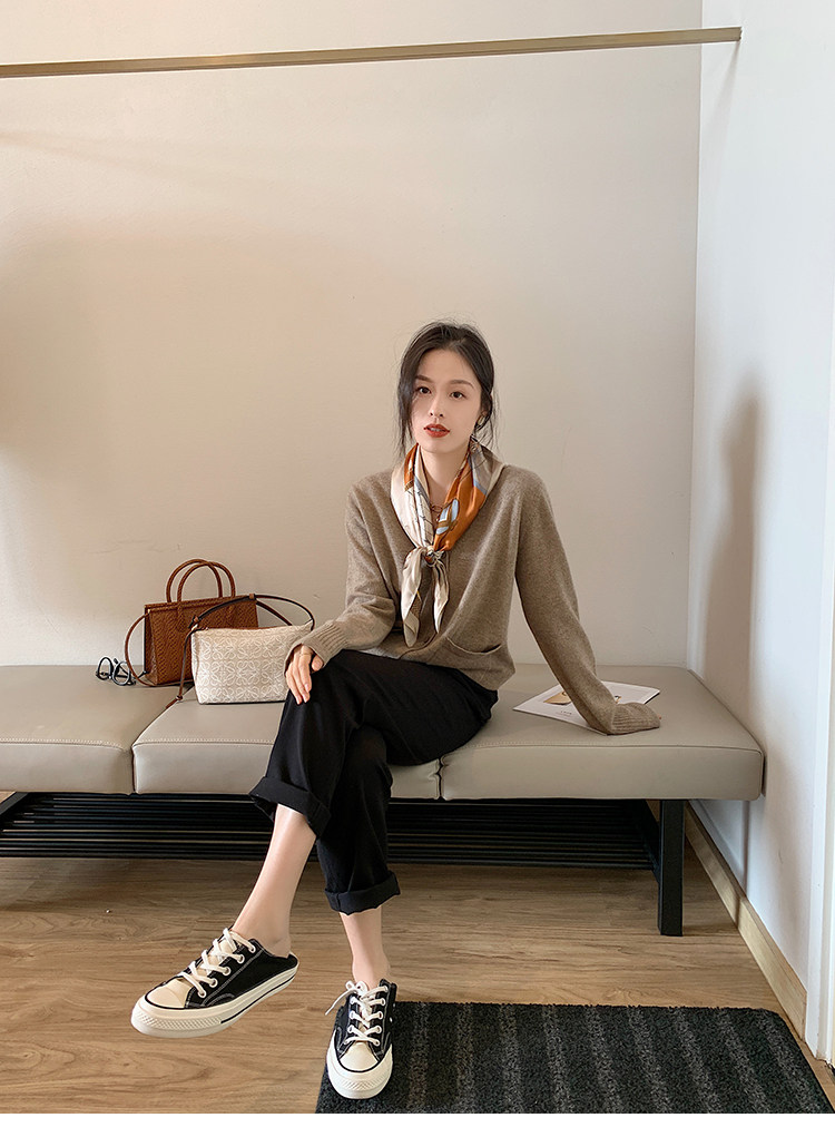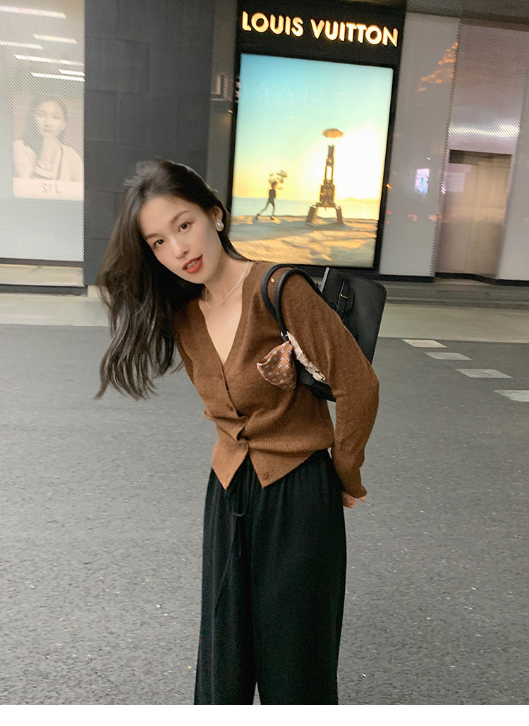 Кашемировый трикотажный лонгслив, кардиган, V-образный вырез