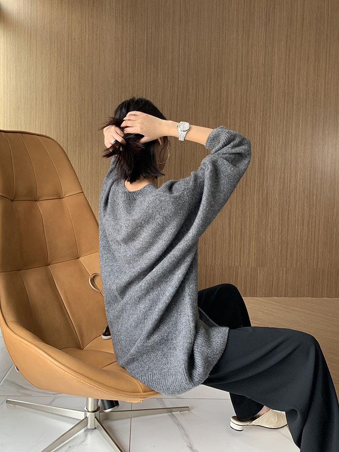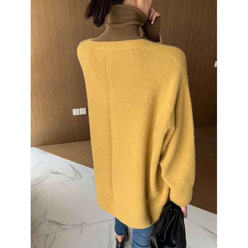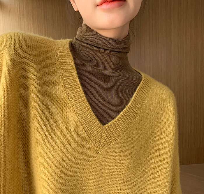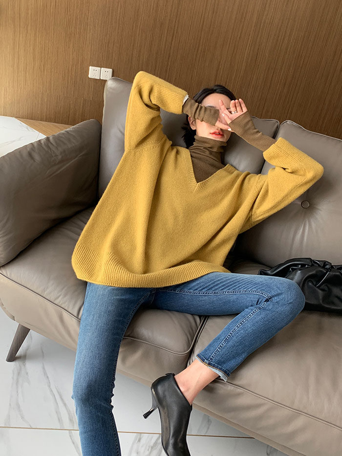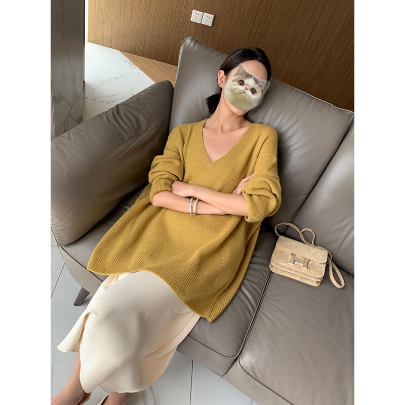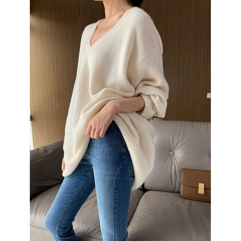 Шерстяной свитер, трикотажный лонгслив, рубашка, V-образный вырез, свободный крой, в западном стиле