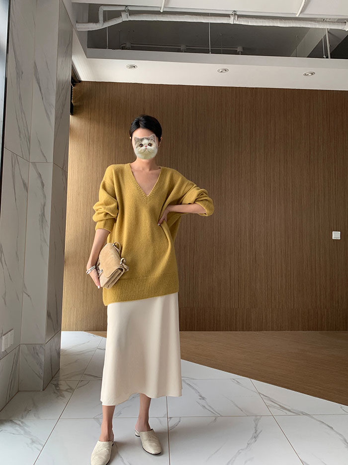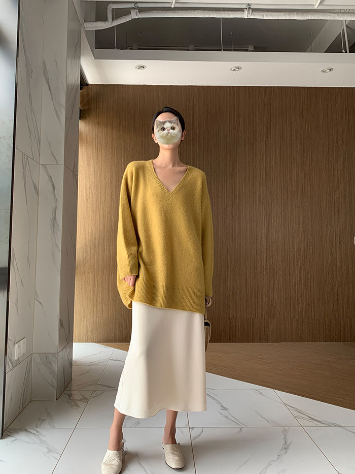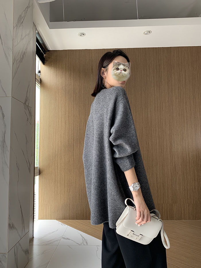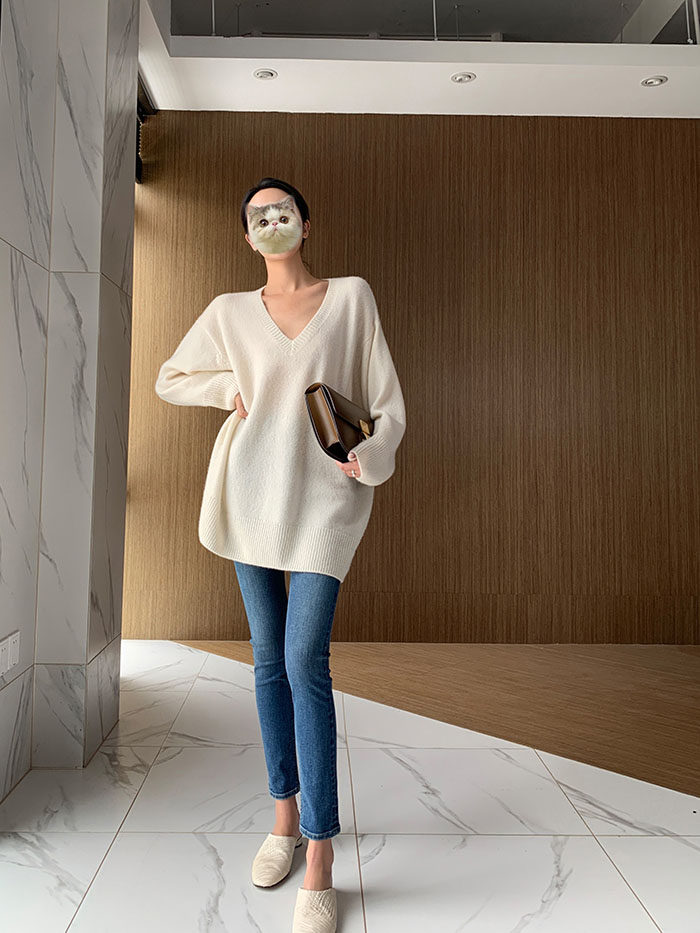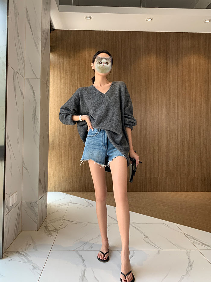 Шерстяной свитер, трикотажный лонгслив, рубашка, V-образный вырез, свободный крой, в западном стиле