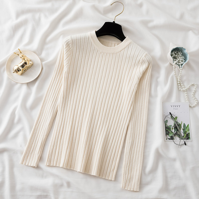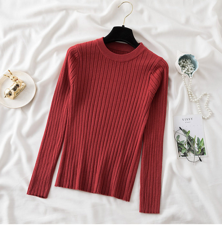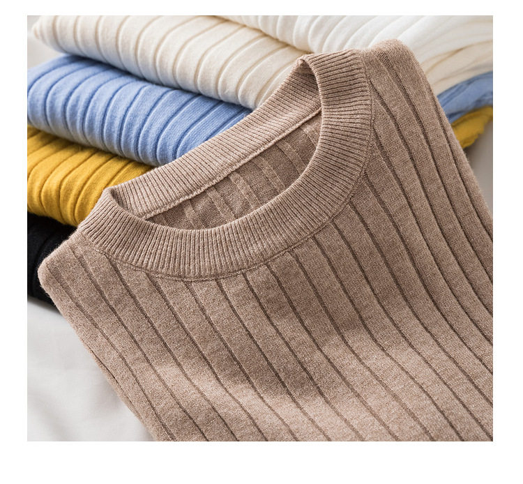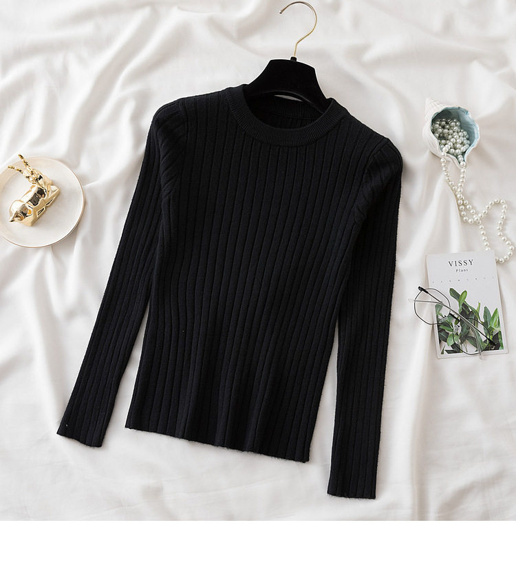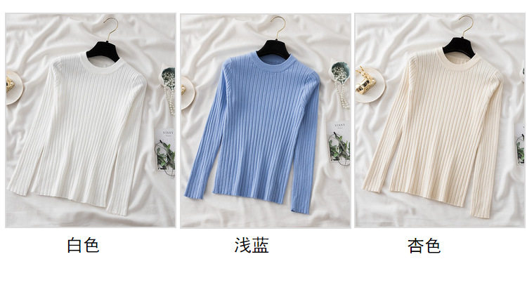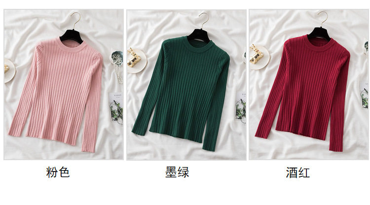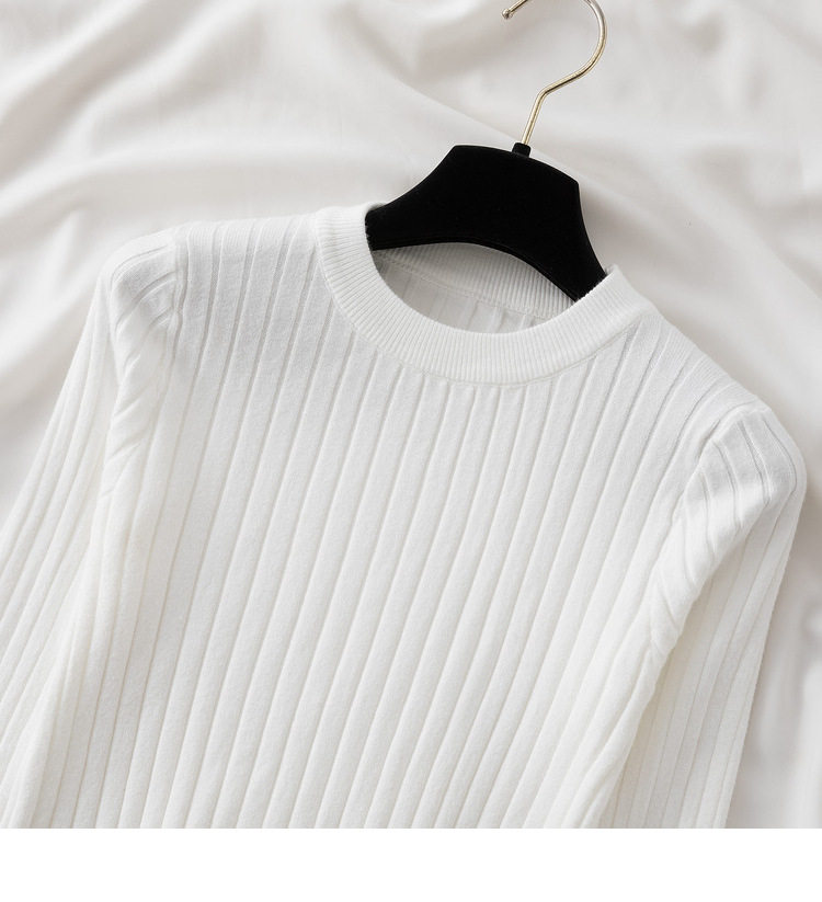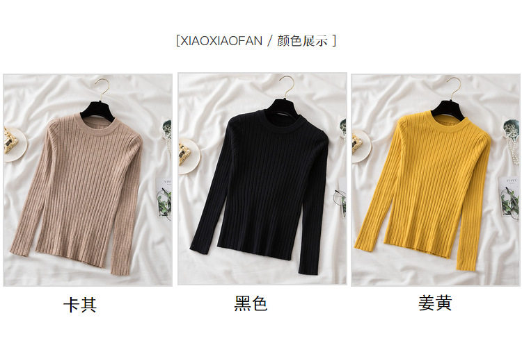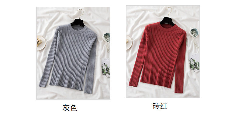 Трикотажный приятный телу демисезонный осенний лонгслив, свитер, круглый воротник, в западном стиле, с рукавом