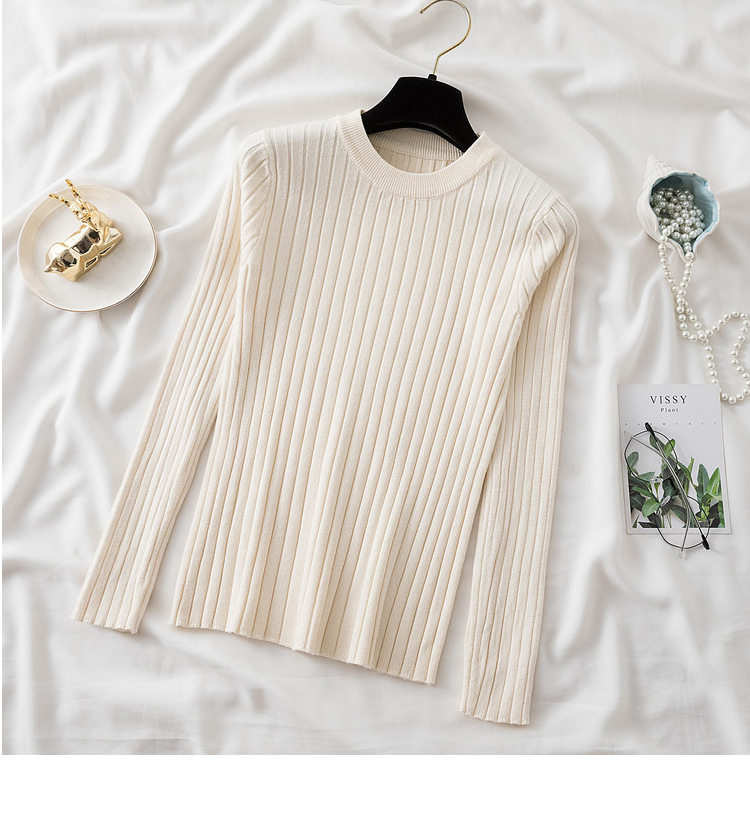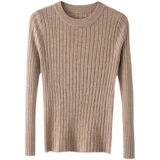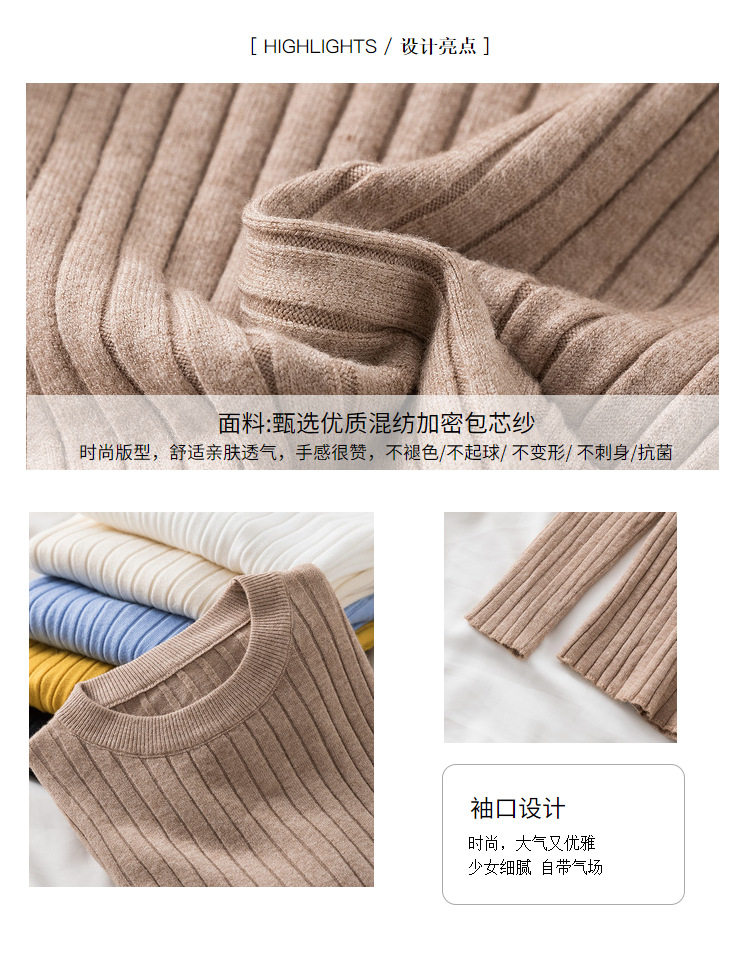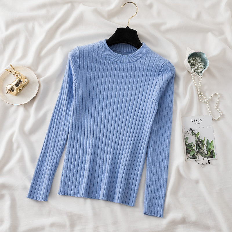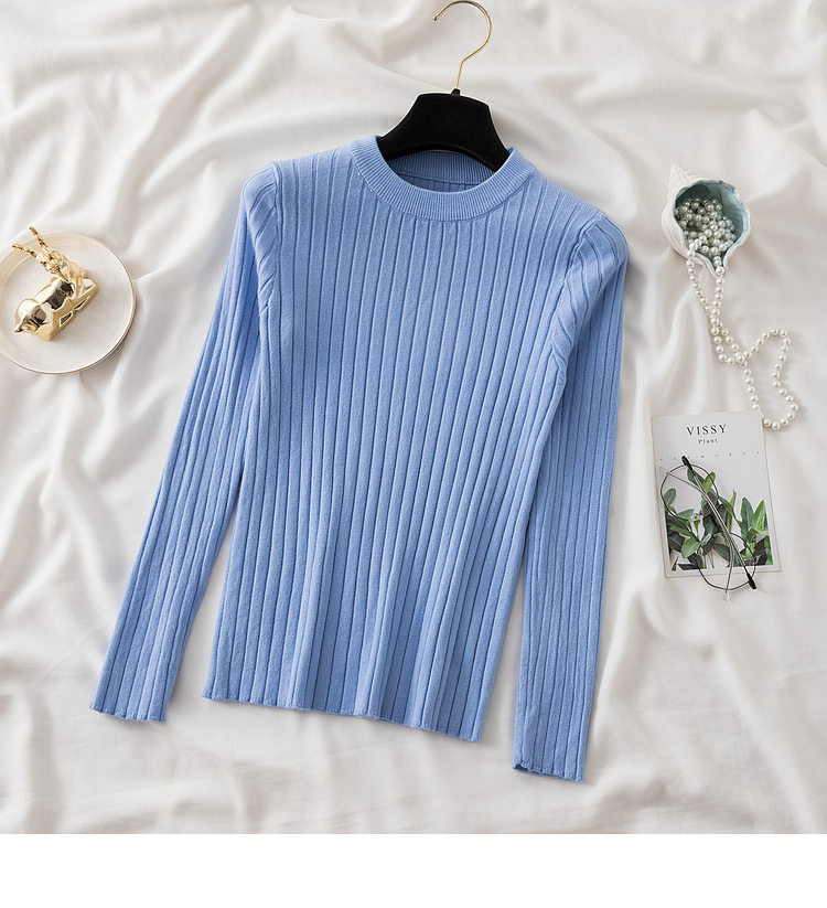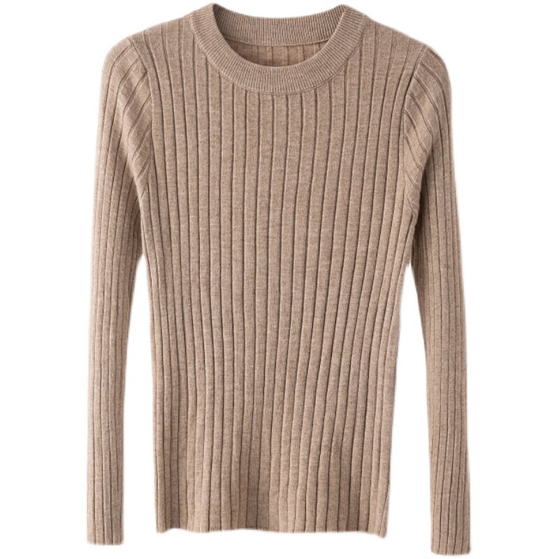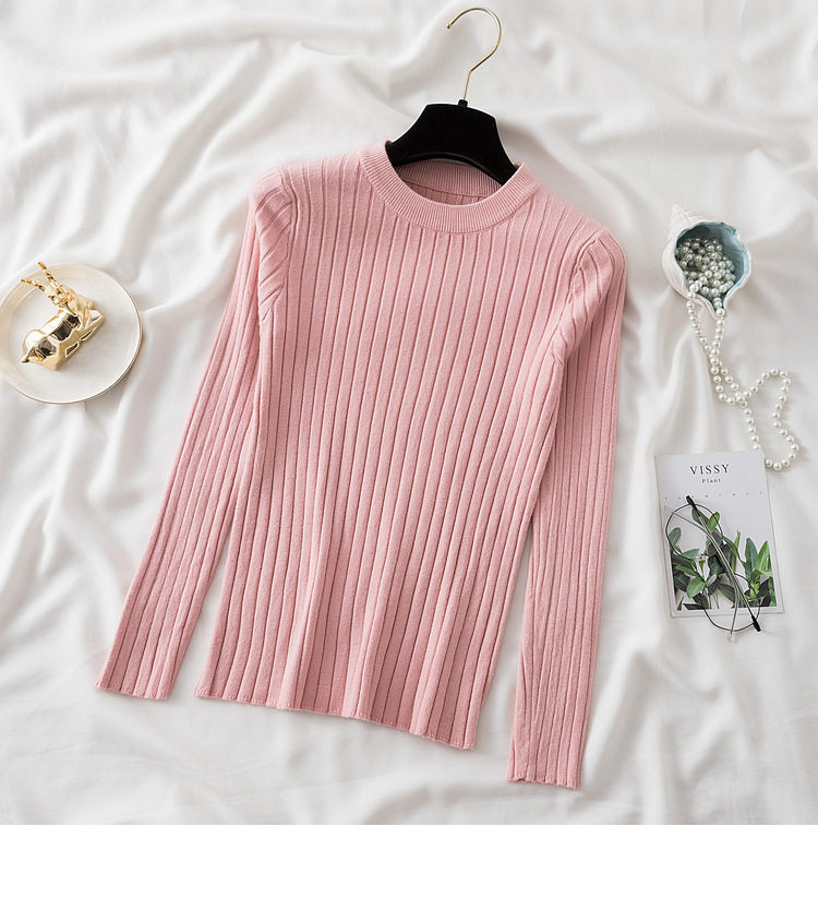 Трикотажный приятный телу демисезонный осенний лонгслив, свитер, круглый воротник, в западном стиле, с рукавом