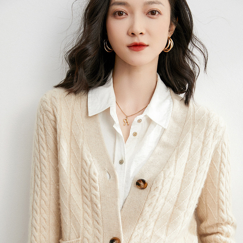 Демисезонный кардиган, шерстяная куртка, кашемировый свитер, V-образный вырез, в западном стиле