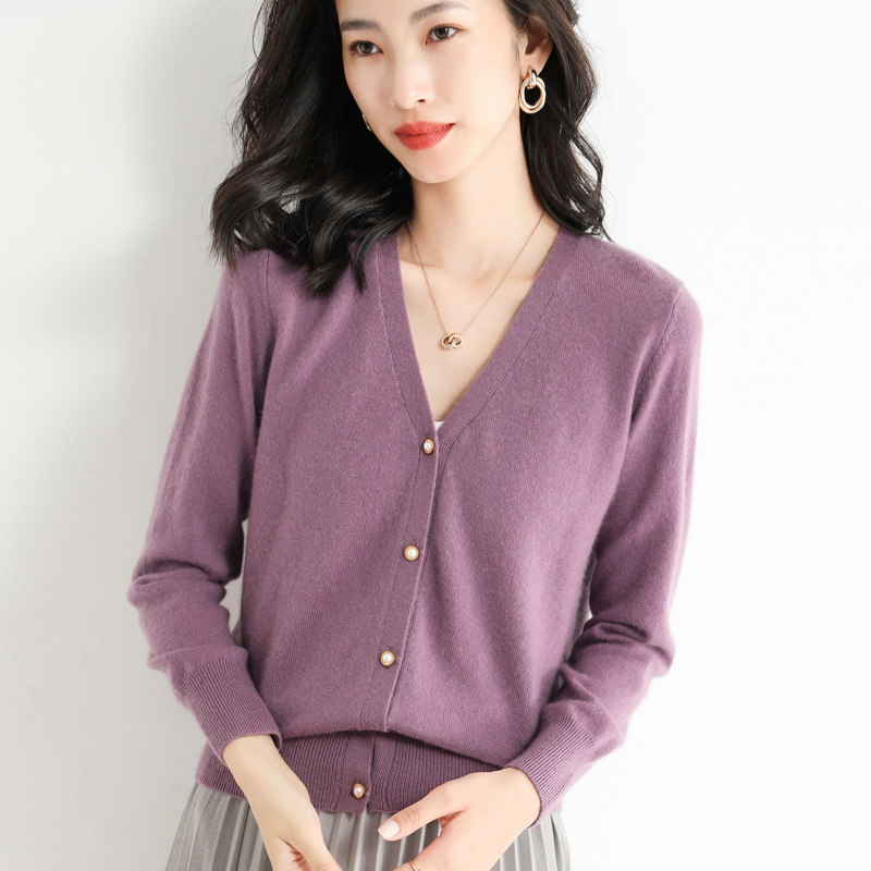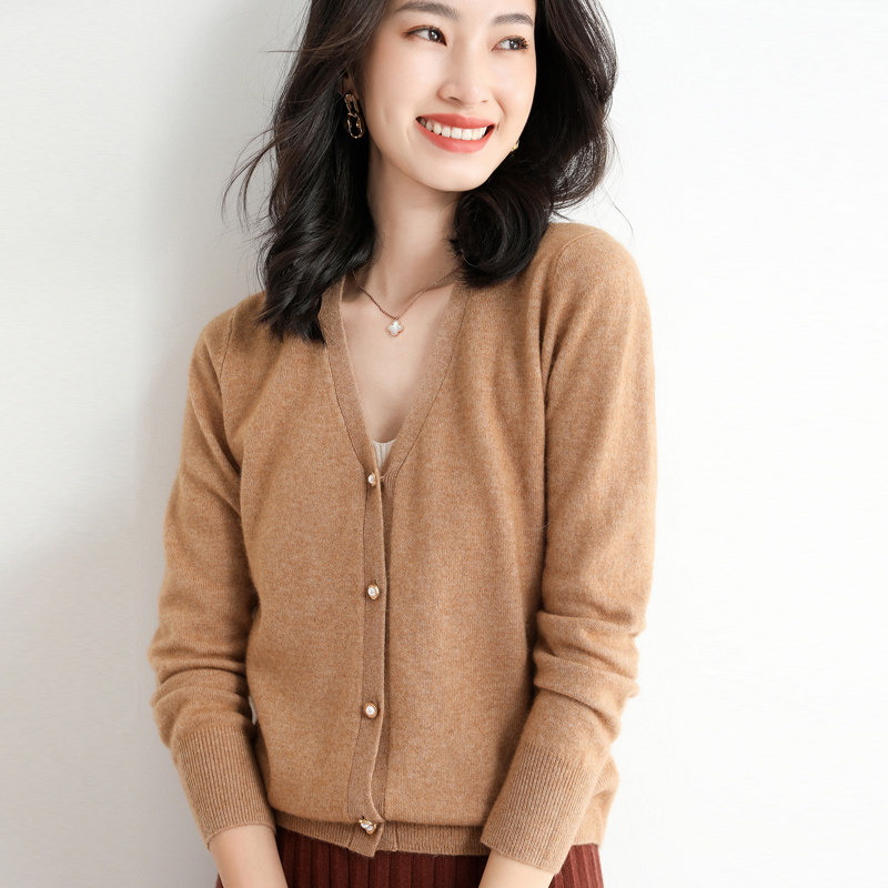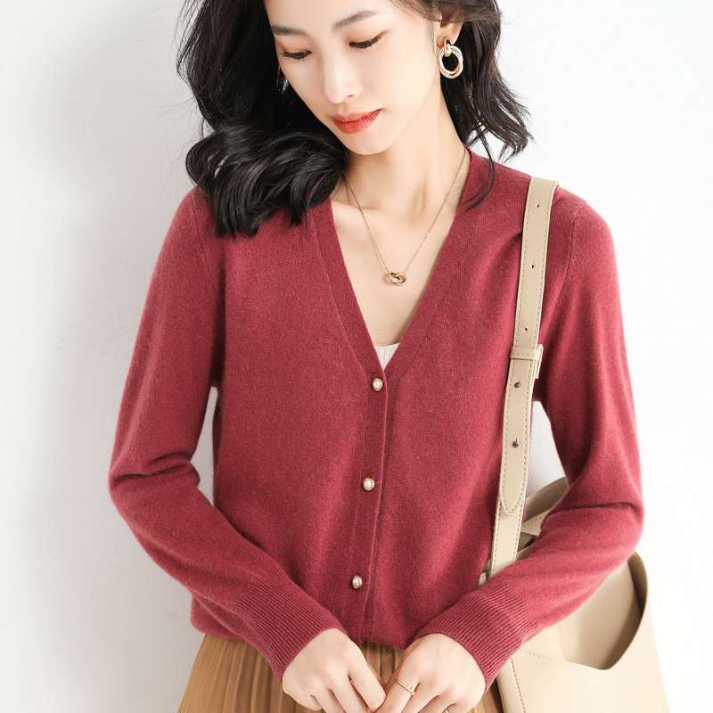 Демисезонный короткий кардиган, базовый свитер, куртка, в корейском стиле, V-образный вырез, высокий воротник