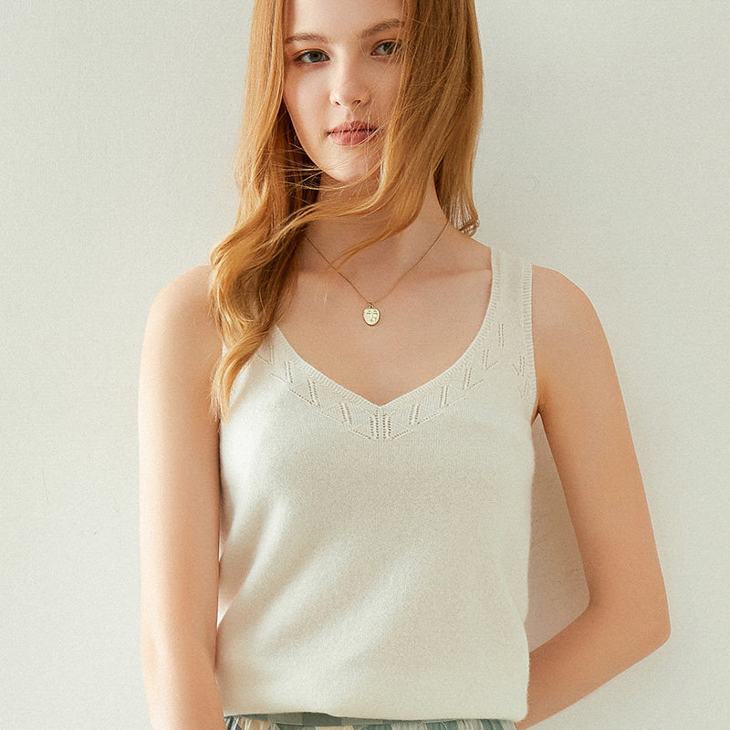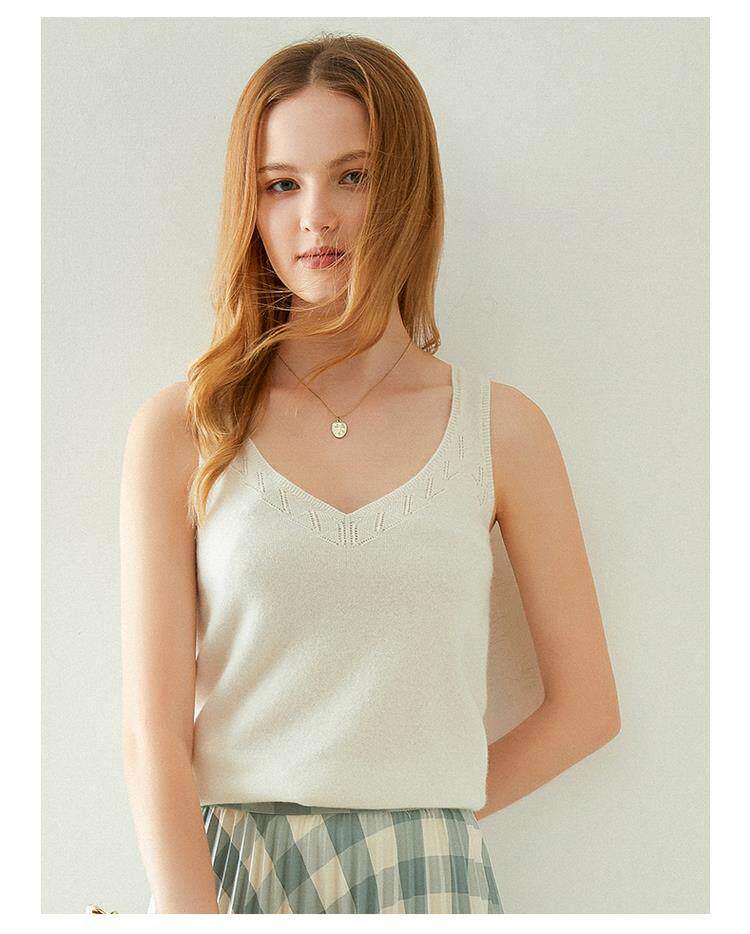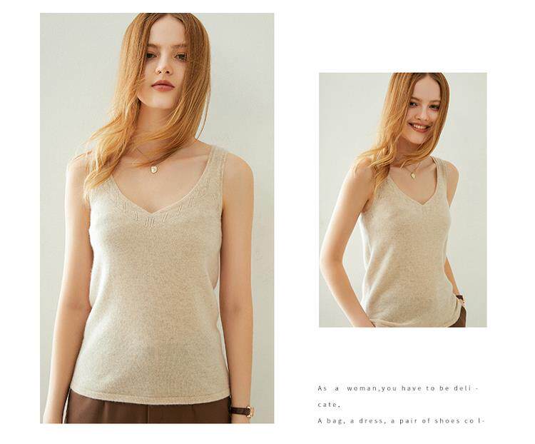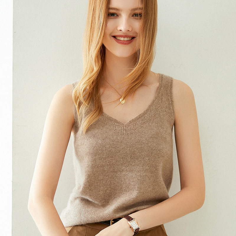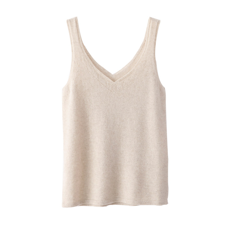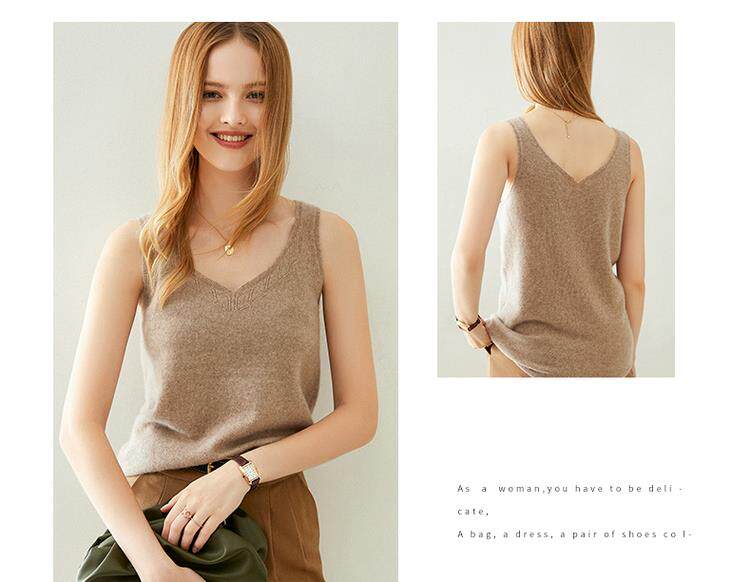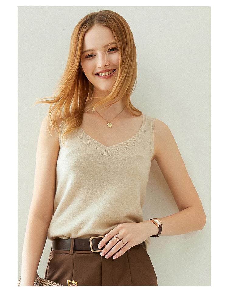 Кашемировый базовый приятный телу топ с чашечками без рукавов, V-образный вырез