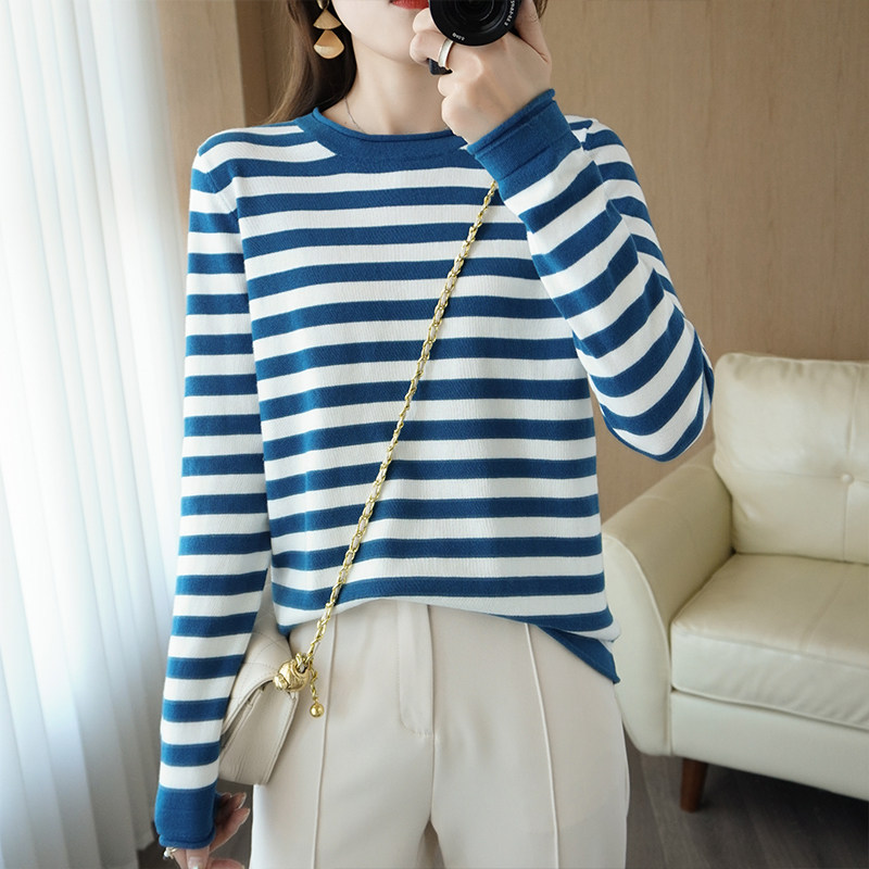 Демисезонный хлопковый трикотажный свитер с круглым воротником, базовая рубашка, лонгслив, коллекция 2021, 100% хлопок