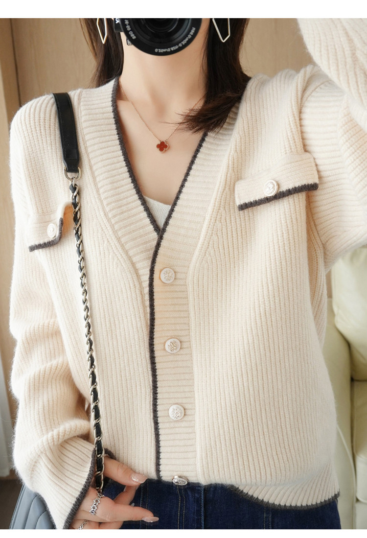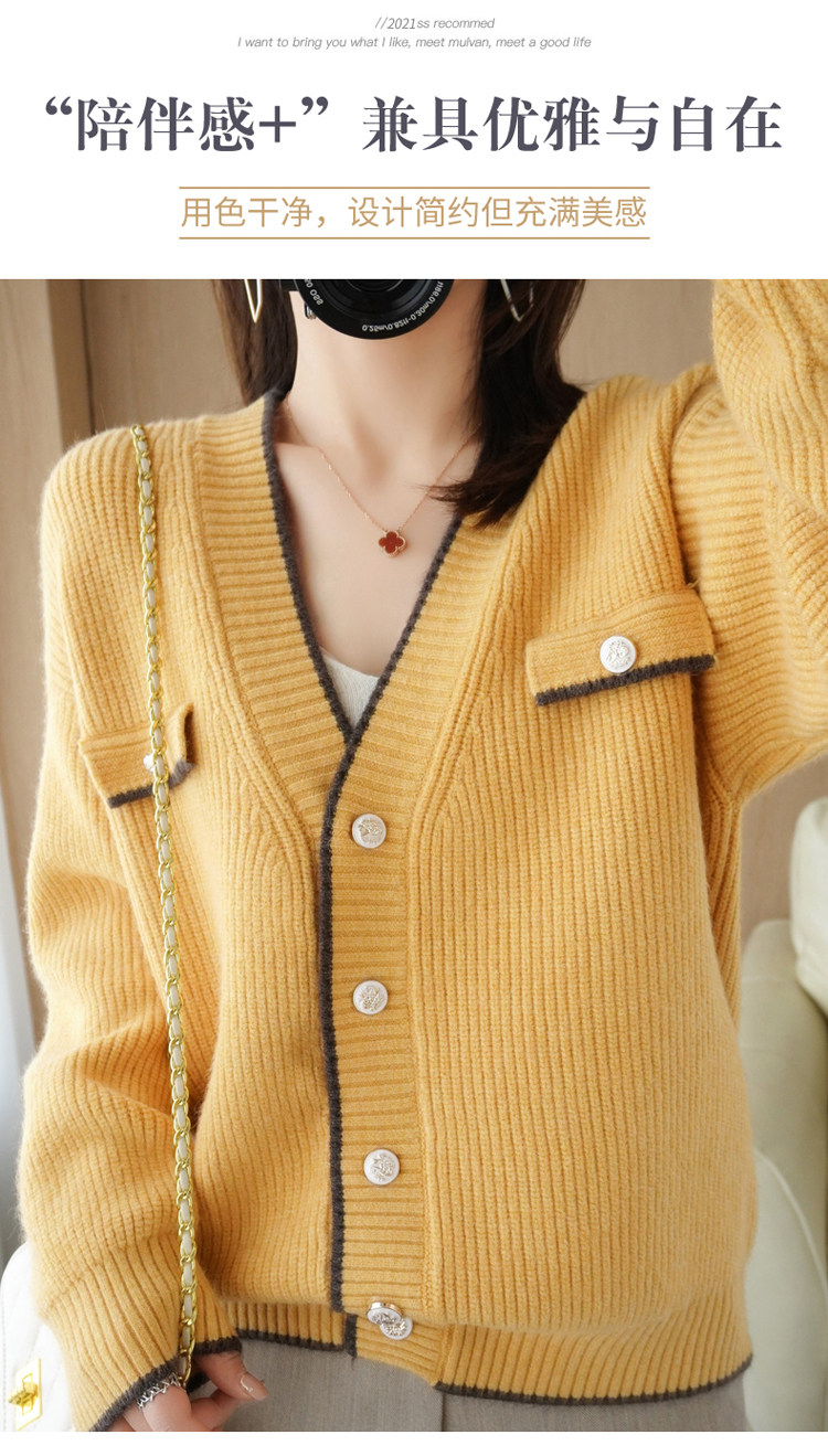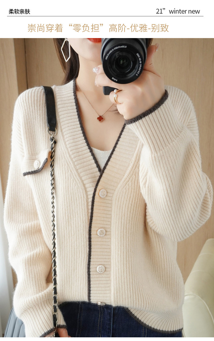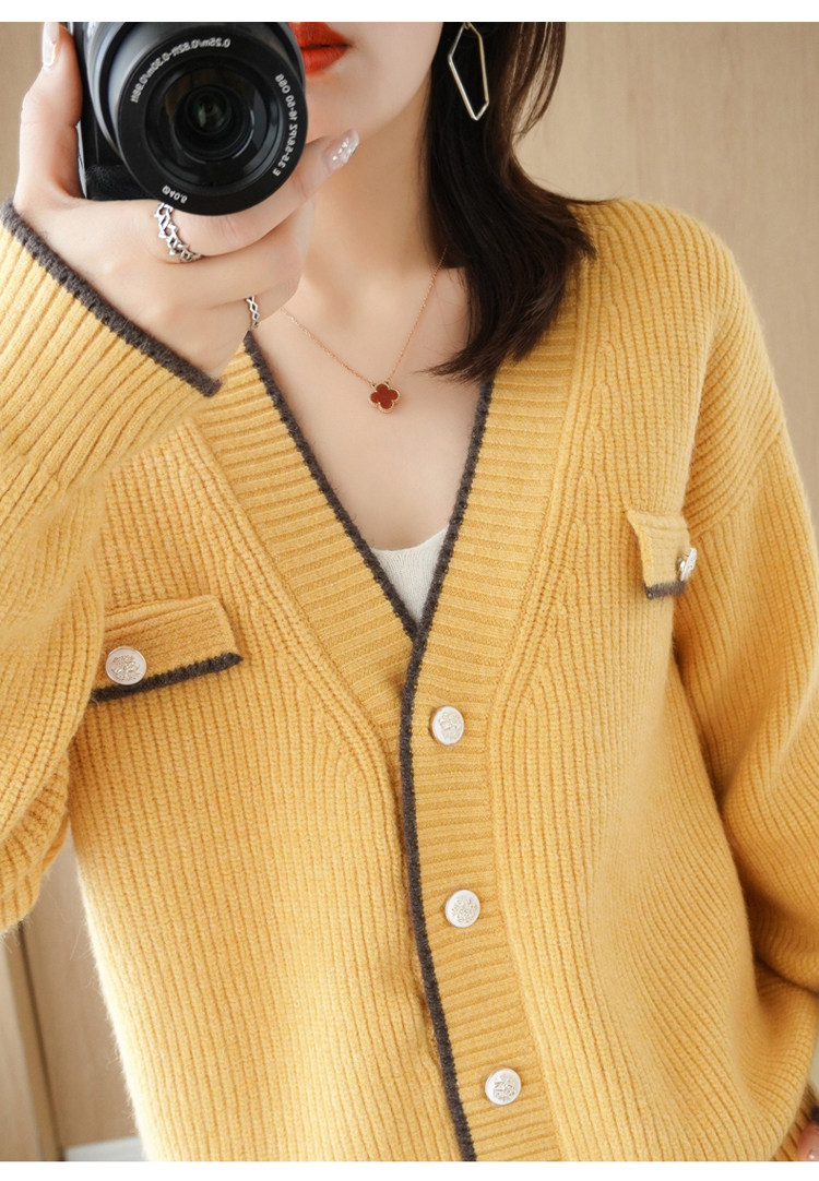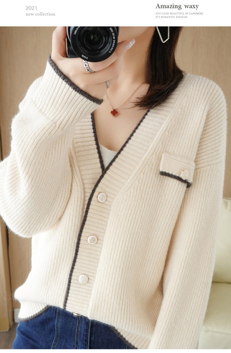 Демисезонный кардиган, свитер, трикотажная куртка, V-образный вырез, коллекция 2021, в стиле Шанель, оверсайз