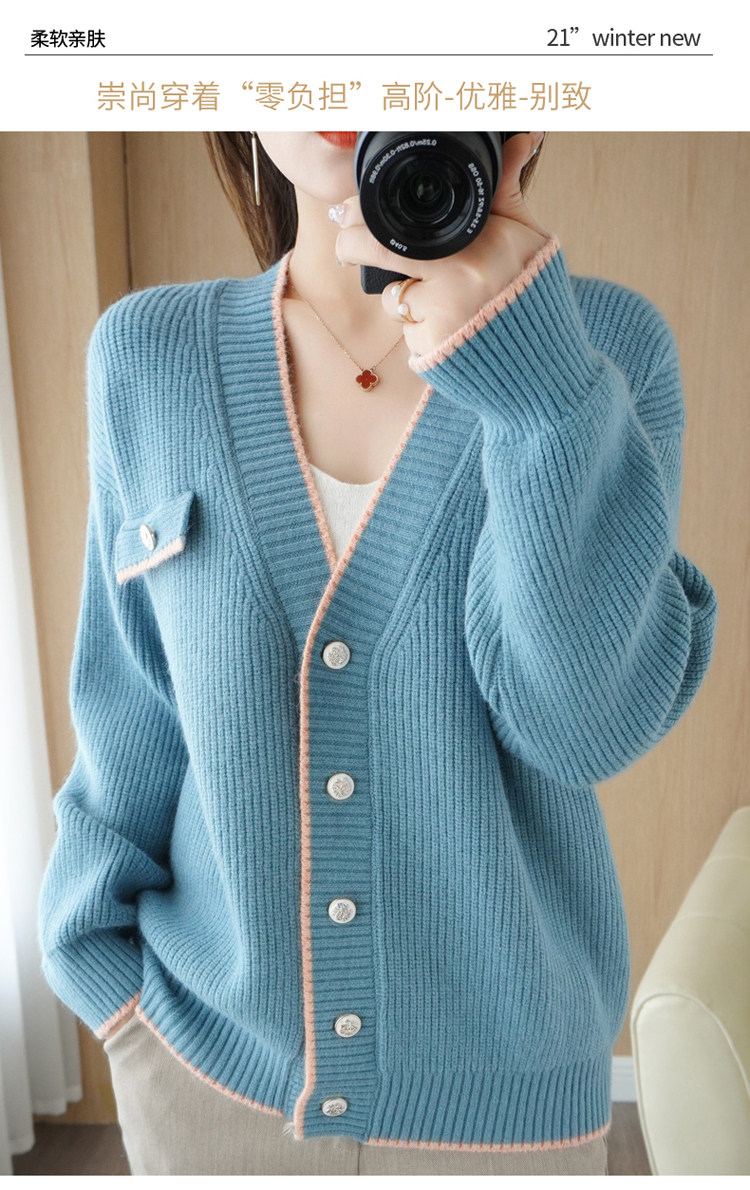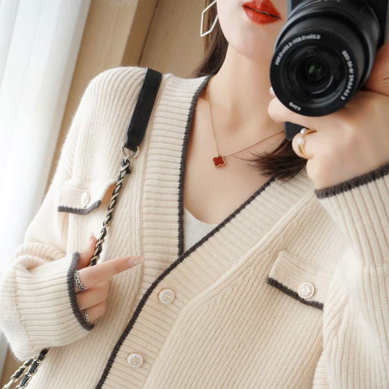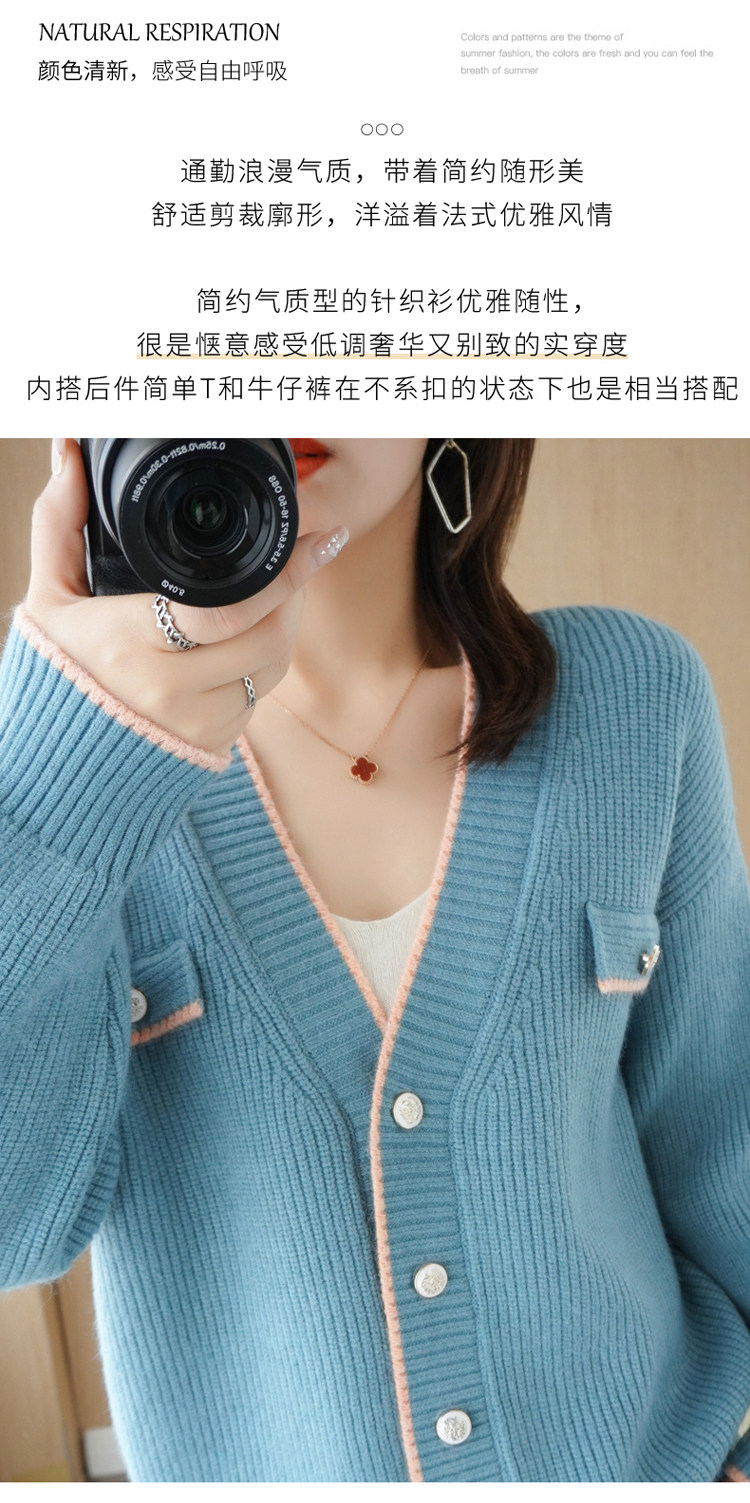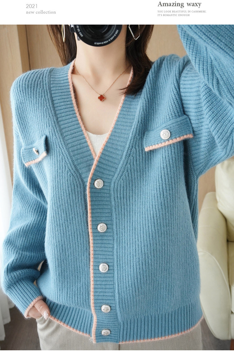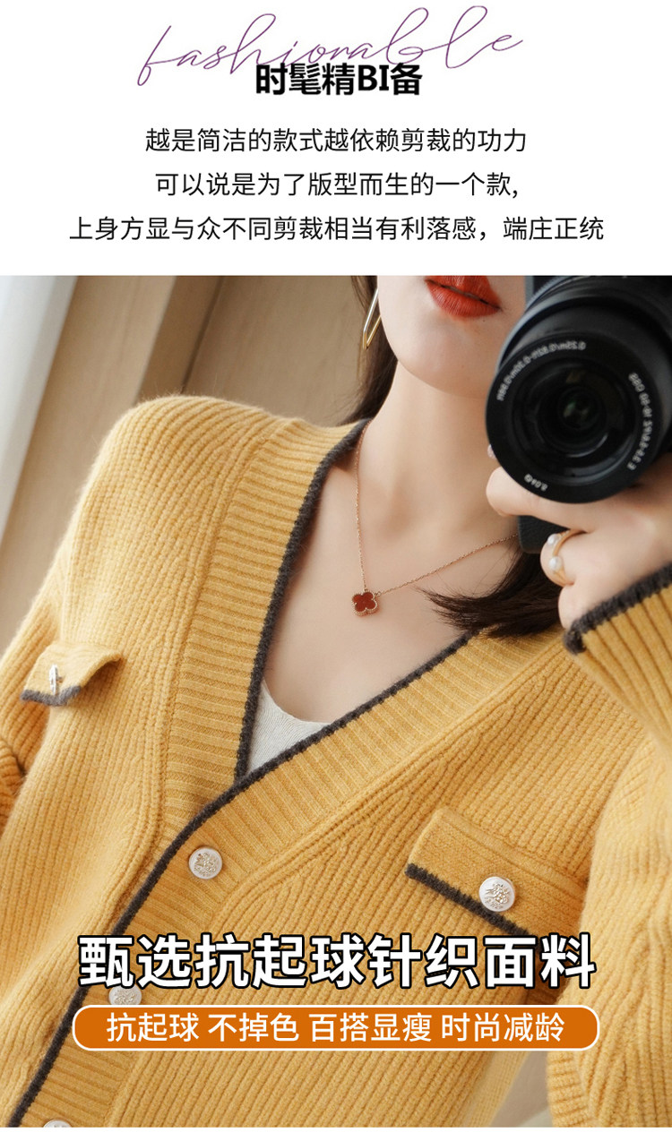 Демисезонный кардиган, свитер, трикотажная куртка, V-образный вырез, коллекция 2021, в стиле Шанель, оверсайз