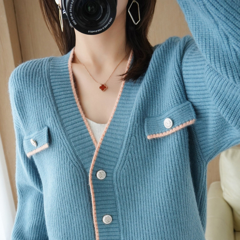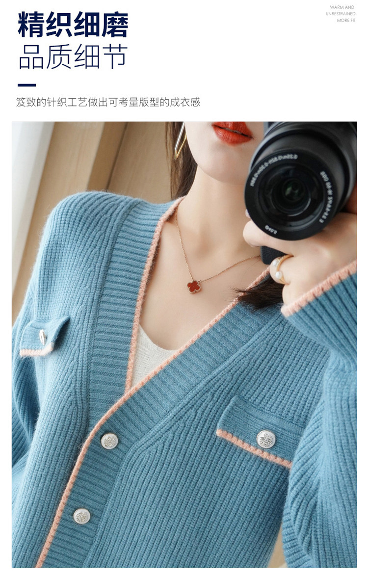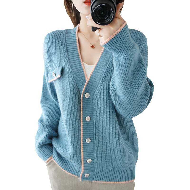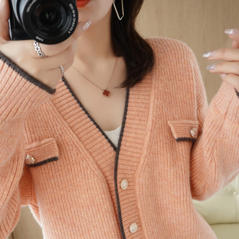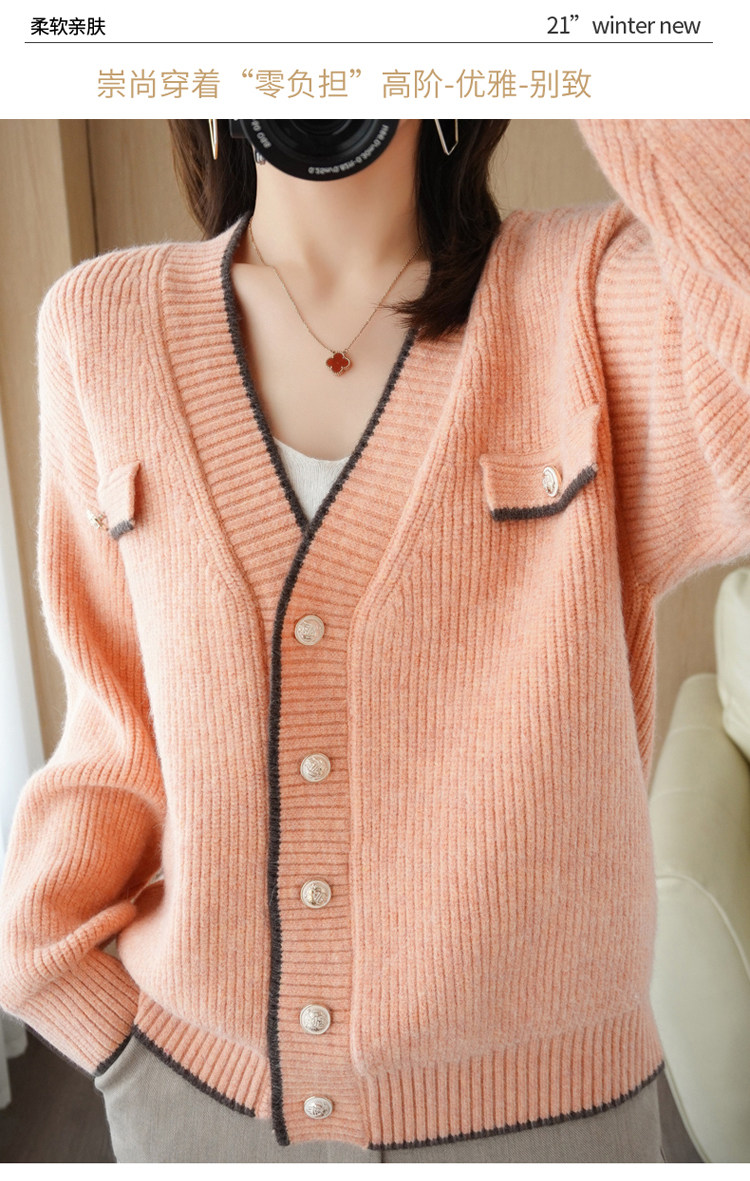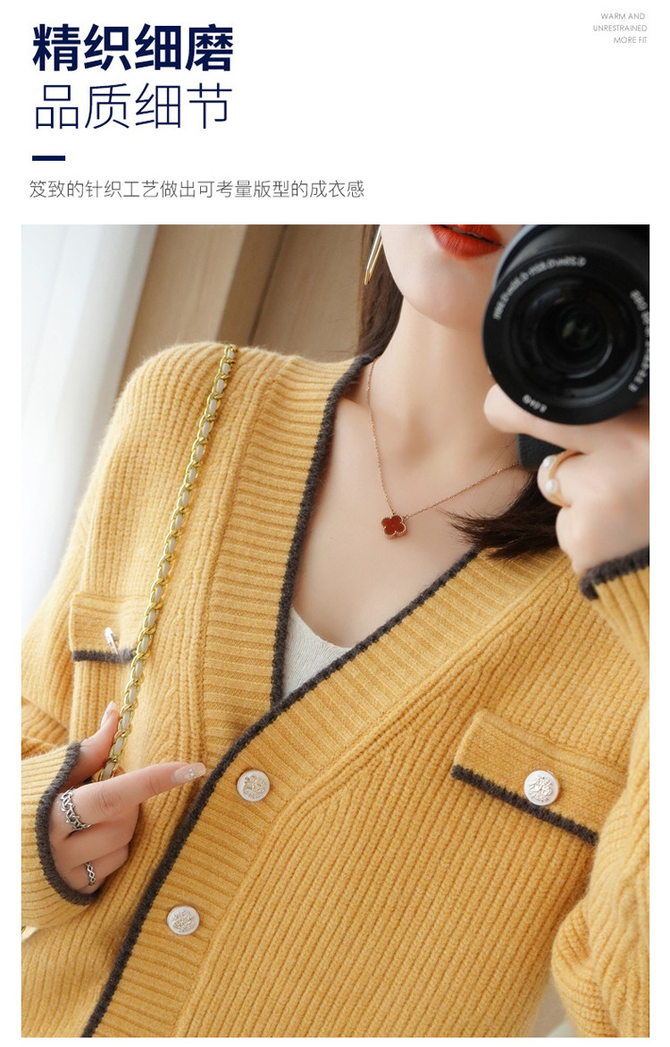 Демисезонный кардиган, свитер, трикотажная куртка, V-образный вырез, коллекция 2021, в стиле Шанель, оверсайз