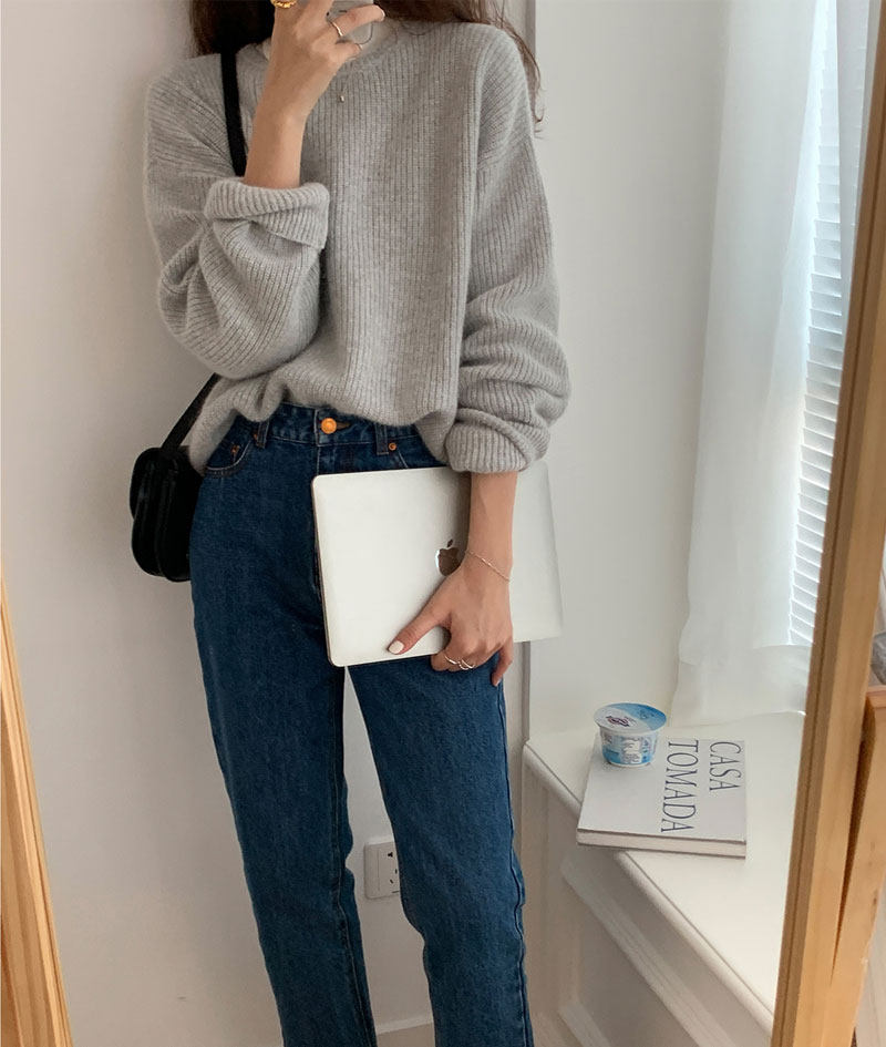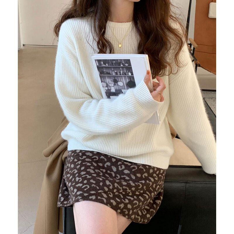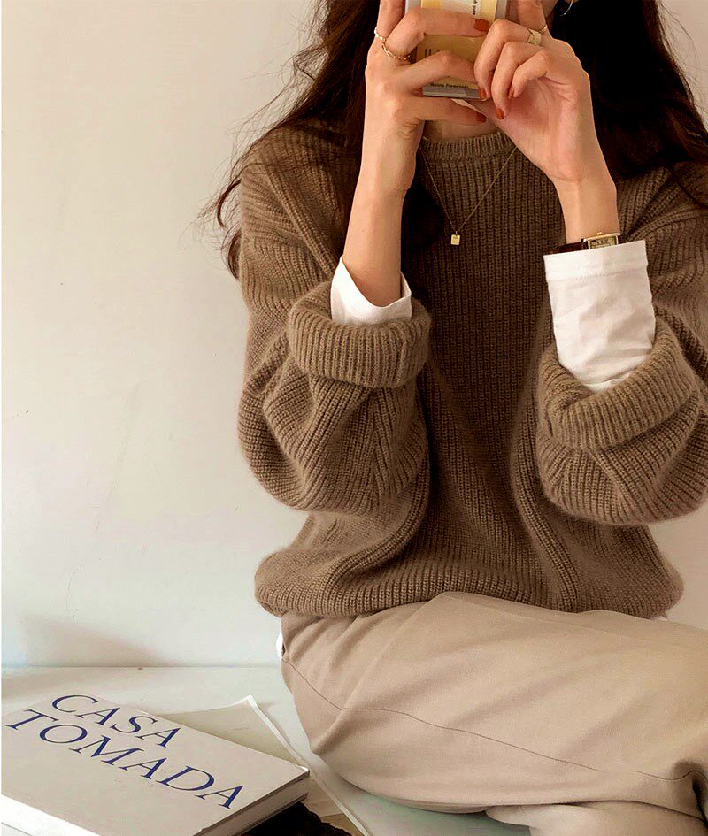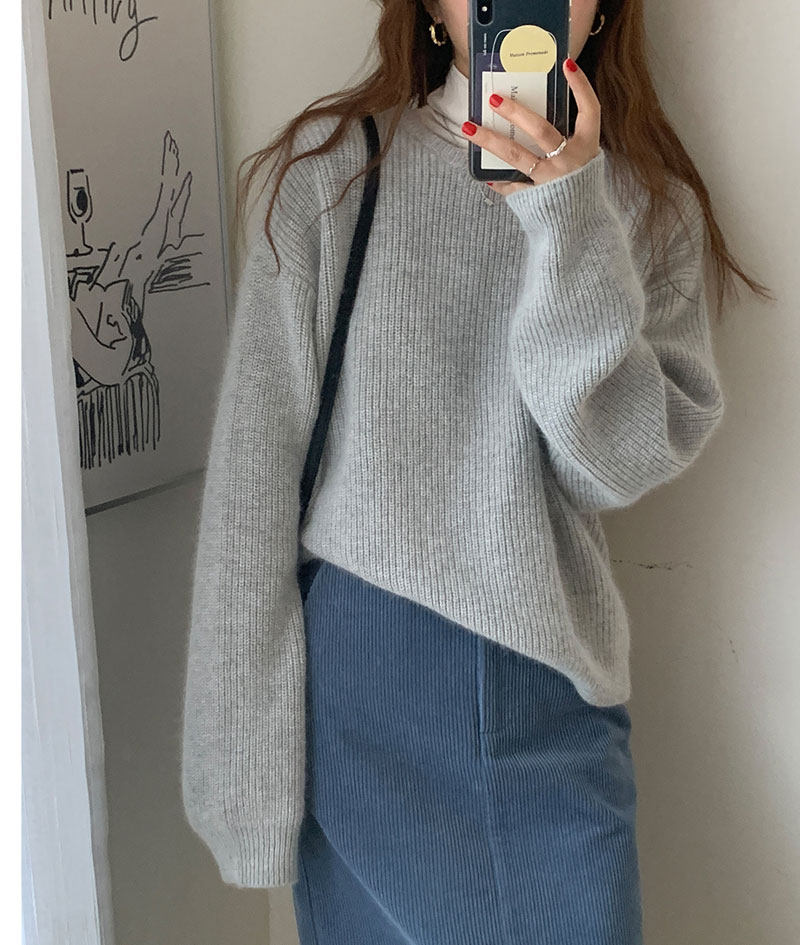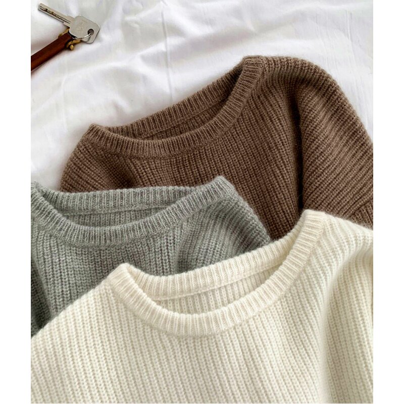 Осенний шерстяной свитер с круглым воротником, базовый кашемировый слиток, увеличенная толщина, свободный крой