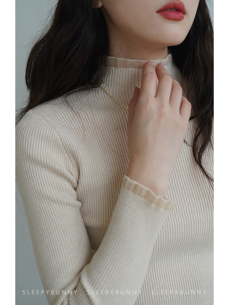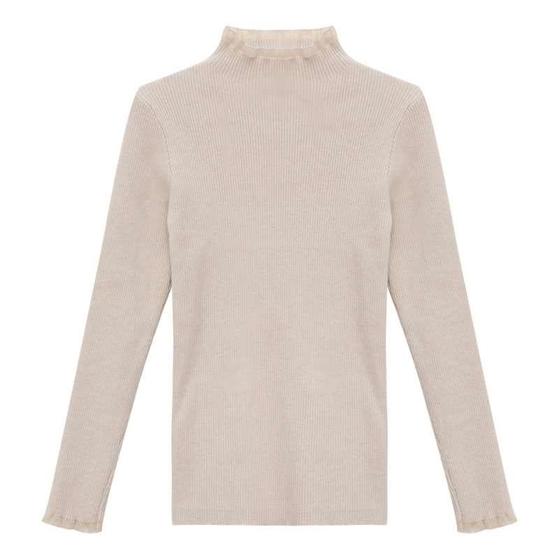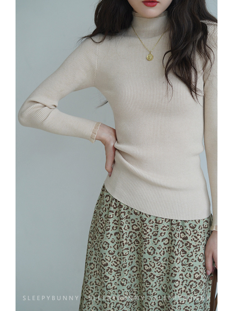Трикотажный лонгслив, осенний приталенный базовый свитер, высокий воротник