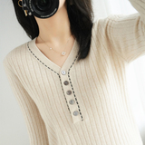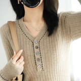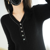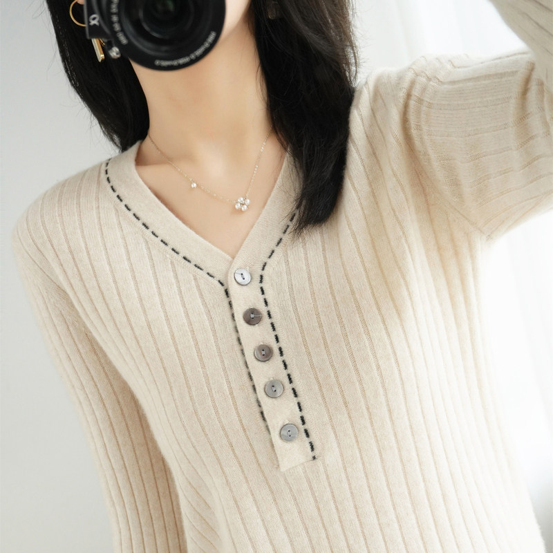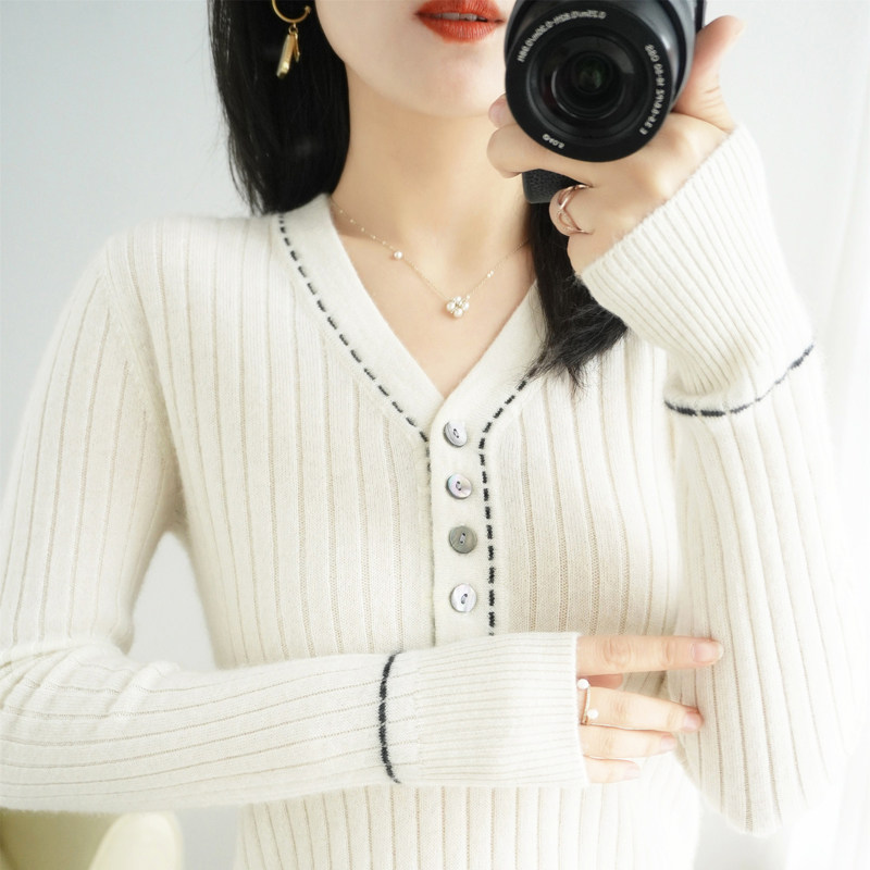 Базовый приятный телу демисезонный кашемировый приталенный трикотажный свитер, V-образный вырез, в стиле Шанель, коллекция 2021