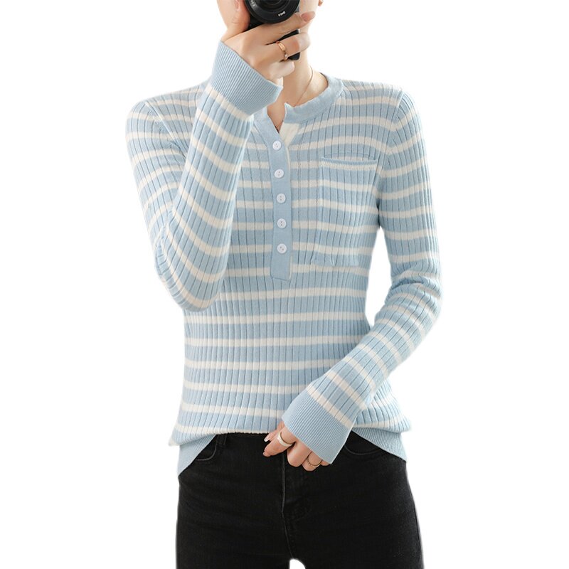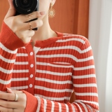Хлопковый базовый приятный телу трикотажный свитер, лонгслив, демисезонные нарукавники, 100% хлопок, облегающий крой, коллекция 2021, в корейском стиле
