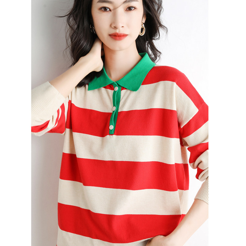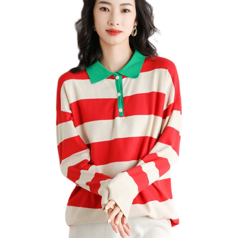 Демисезонный ретро шерстяной свитер, трикотажная рубашка, воротник поло