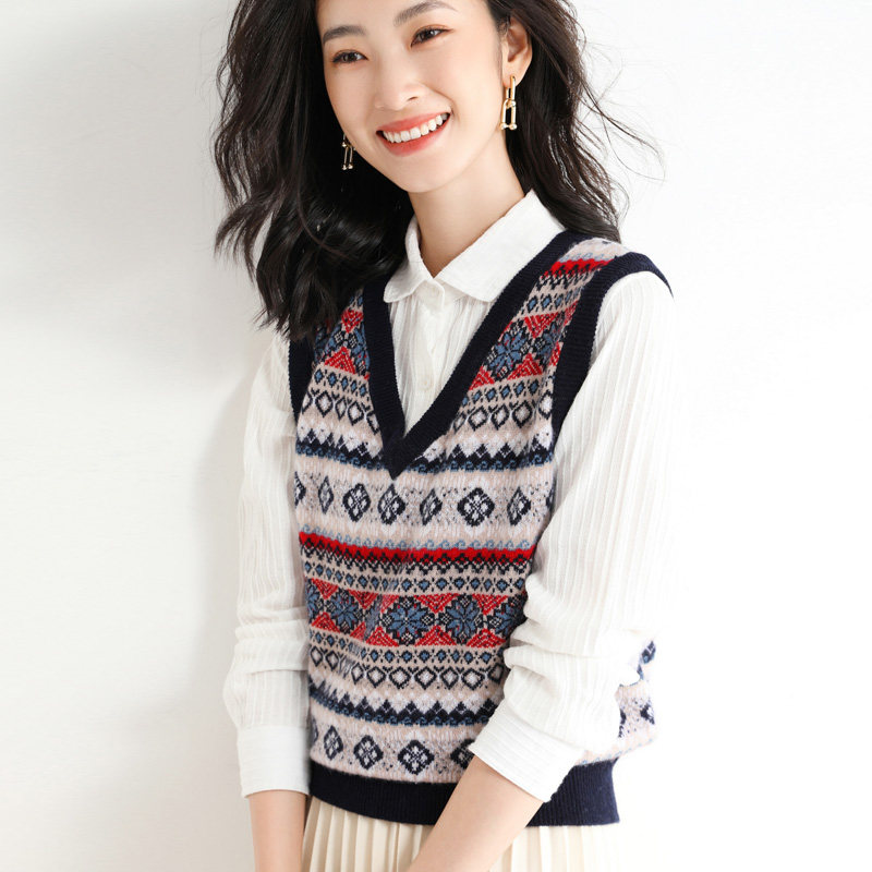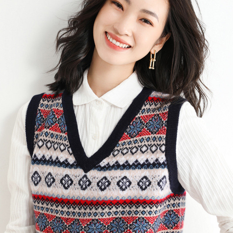 Шерстяной этнический жилет, трикотажный свитер без рукавов, куртка, этнический стиль, V-образный вырез