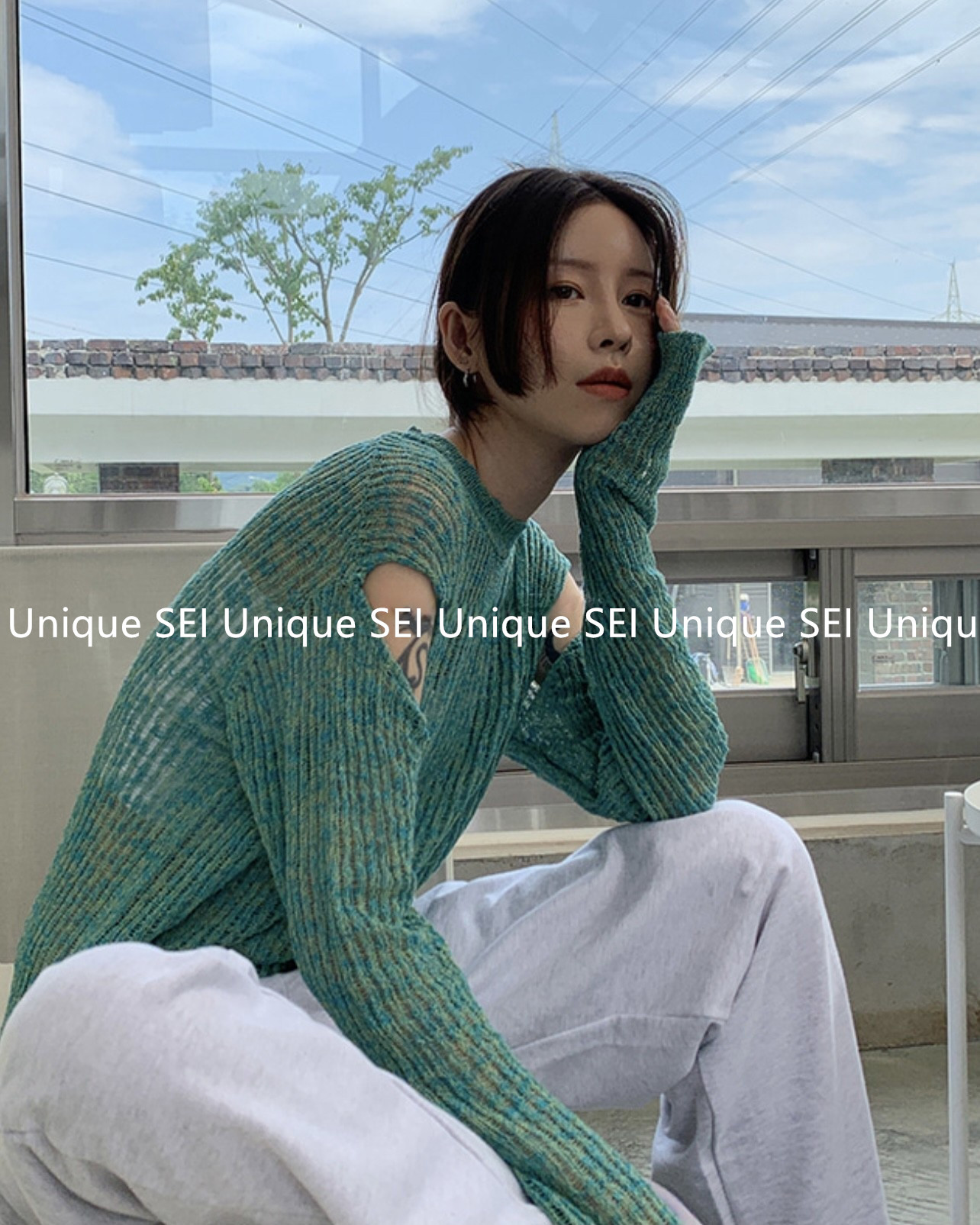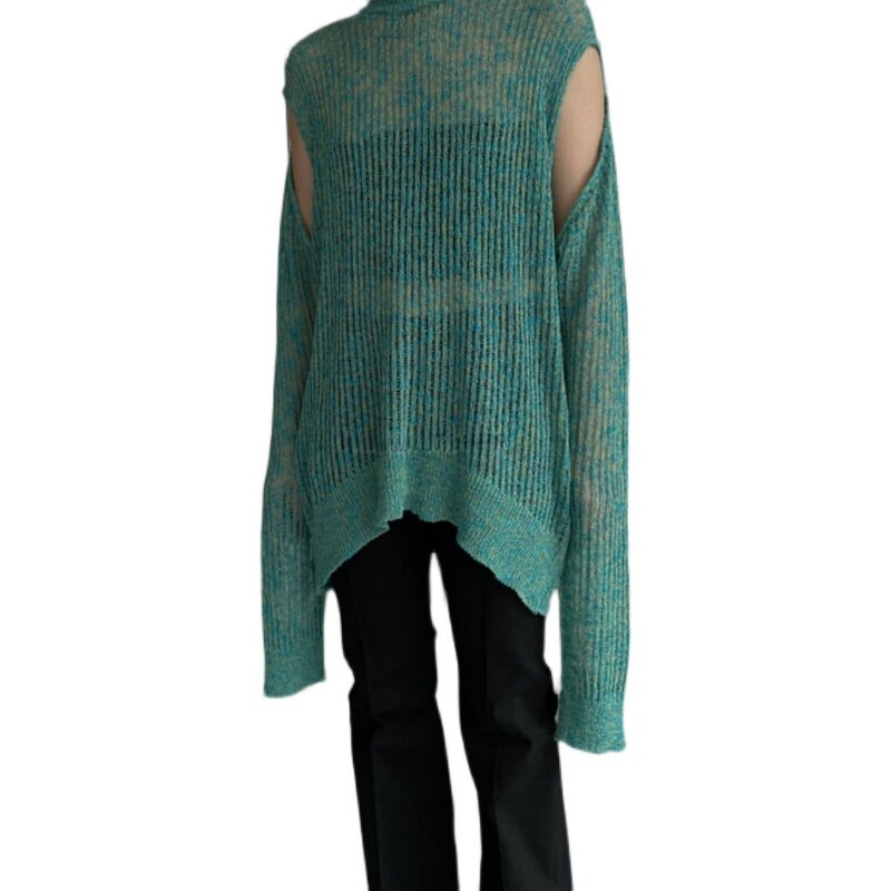 Уникальный Sei Corean Nishe Ранняя осень смешанный цвет слегка проникновенный на плечо полой круглой шеи свободный свитер свитер