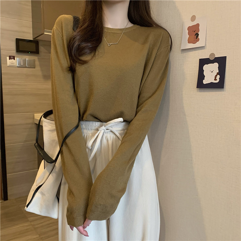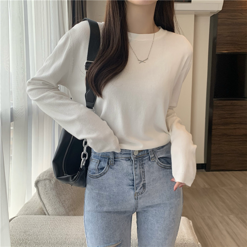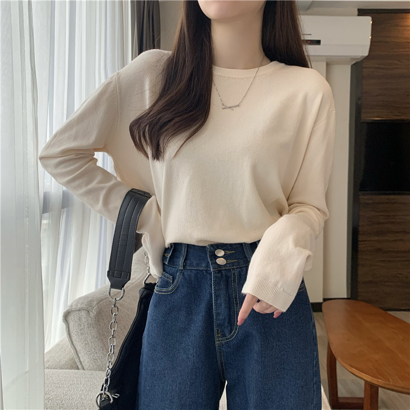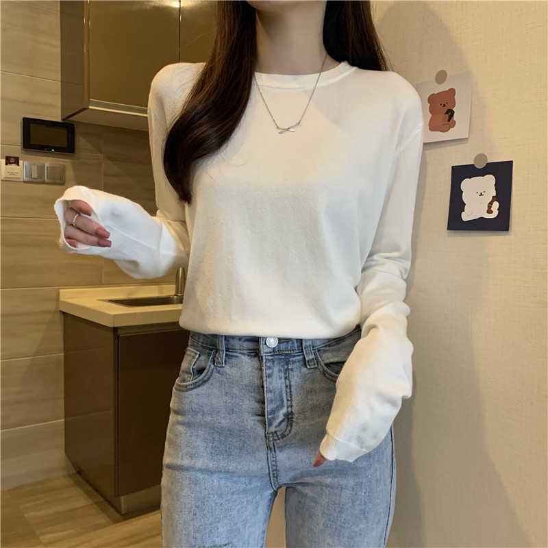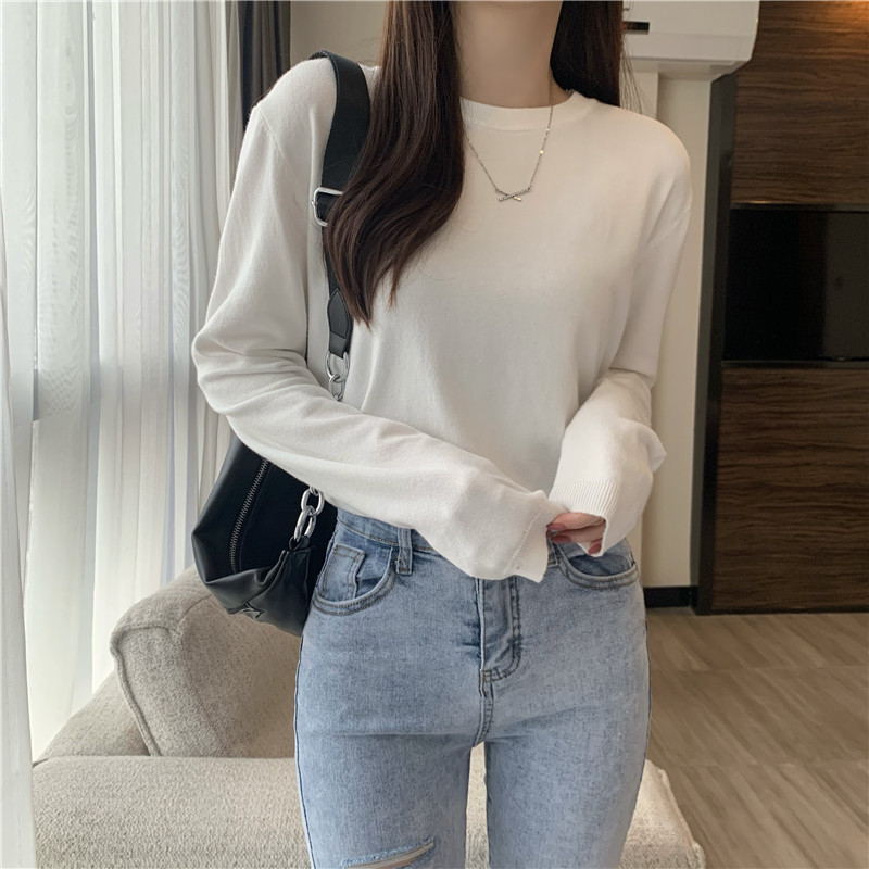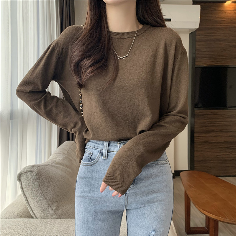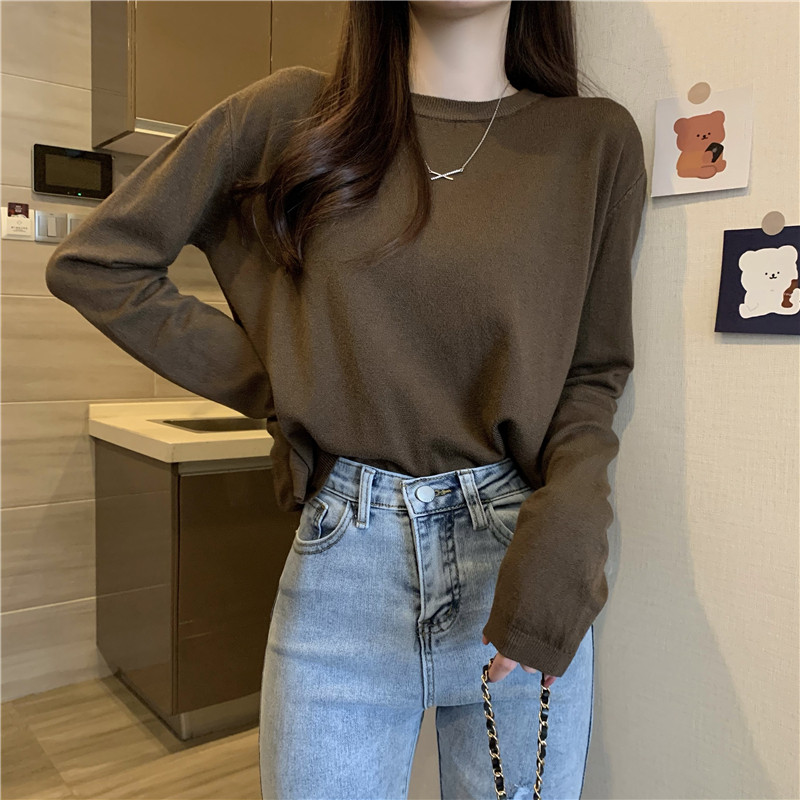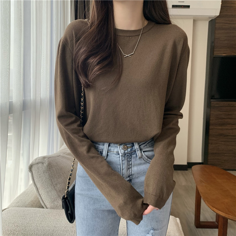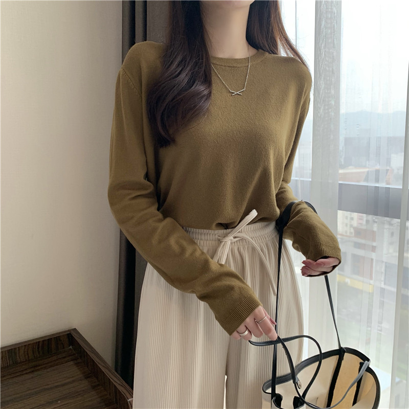 Цветной осенний свитер, приталенный базовый приятный телу трикотажный лонгслив с круглым воротником