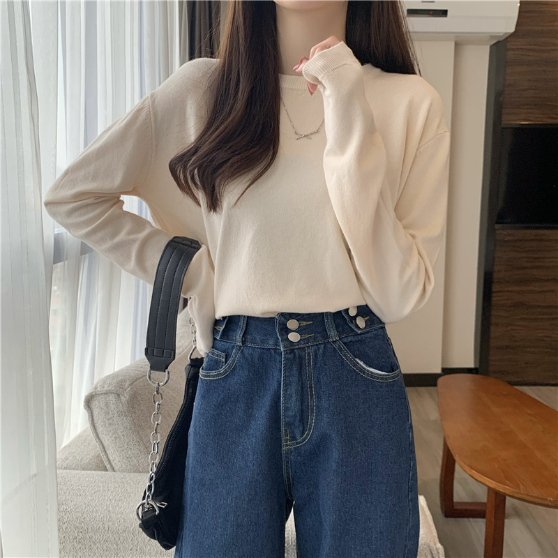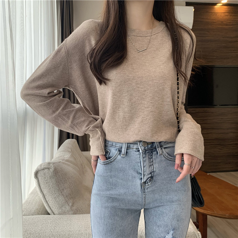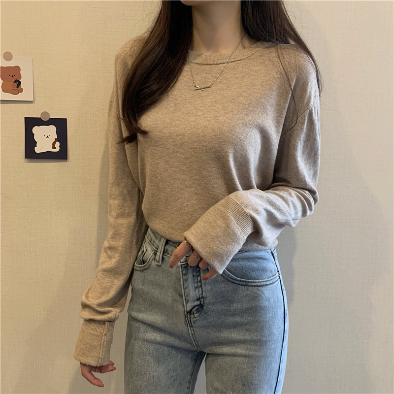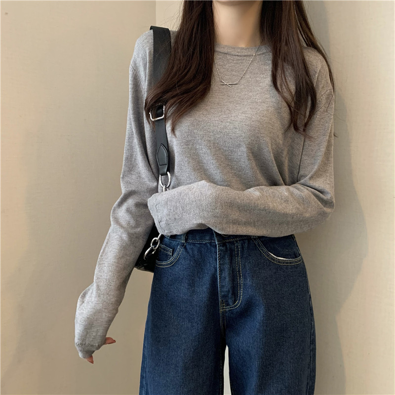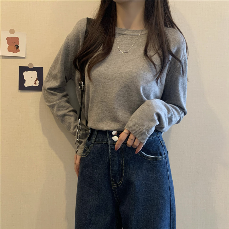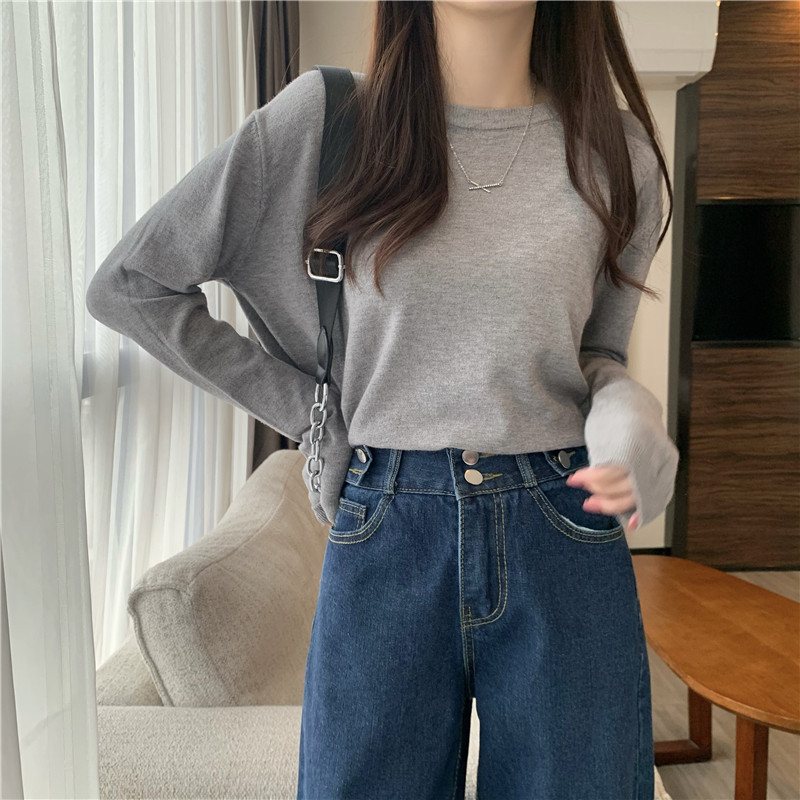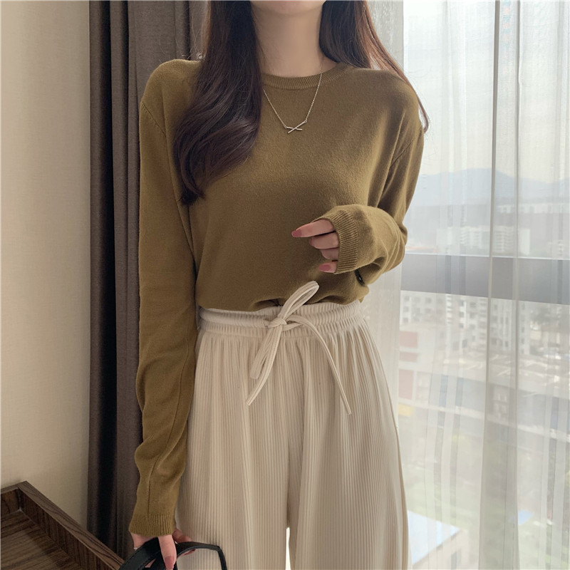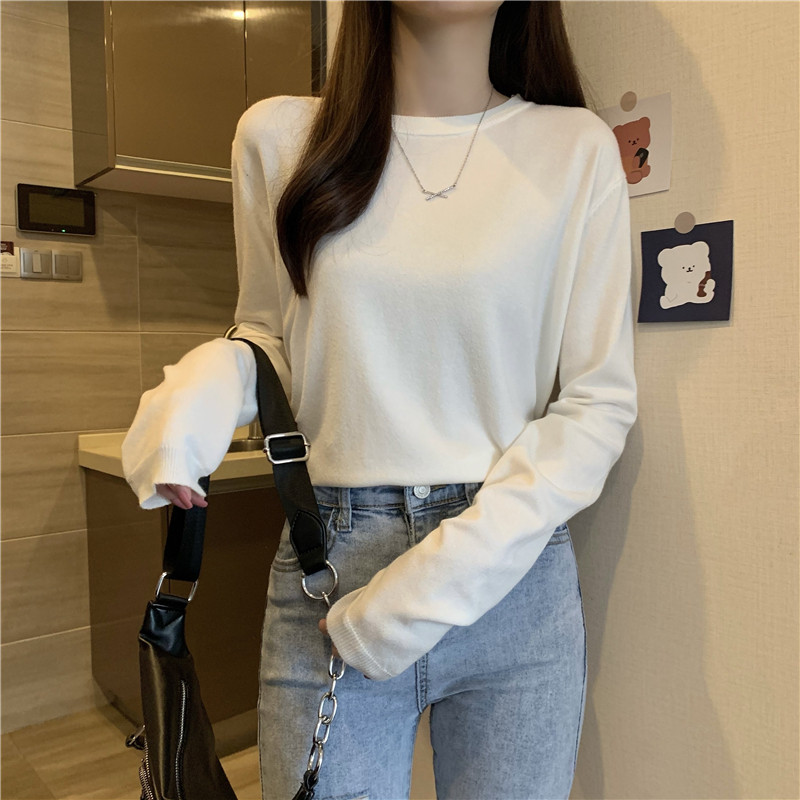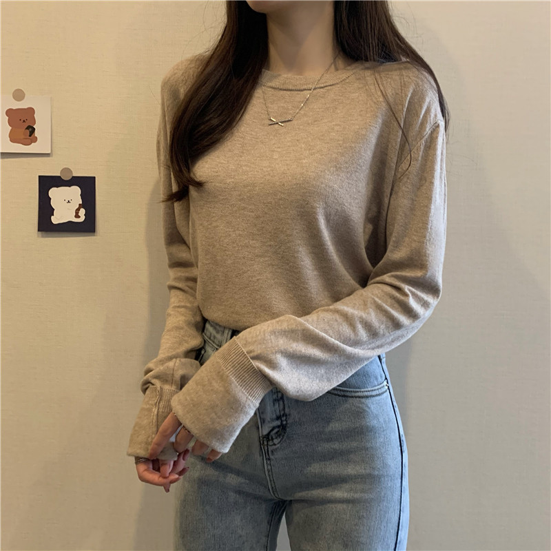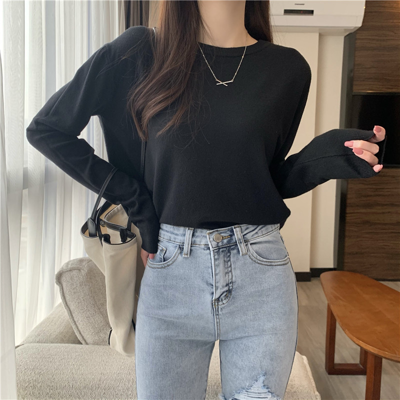 Цветной осенний свитер, приталенный базовый приятный телу трикотажный лонгслив с круглым воротником