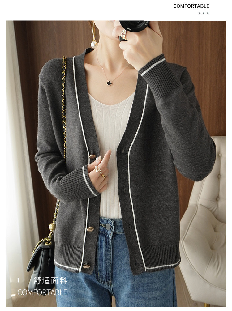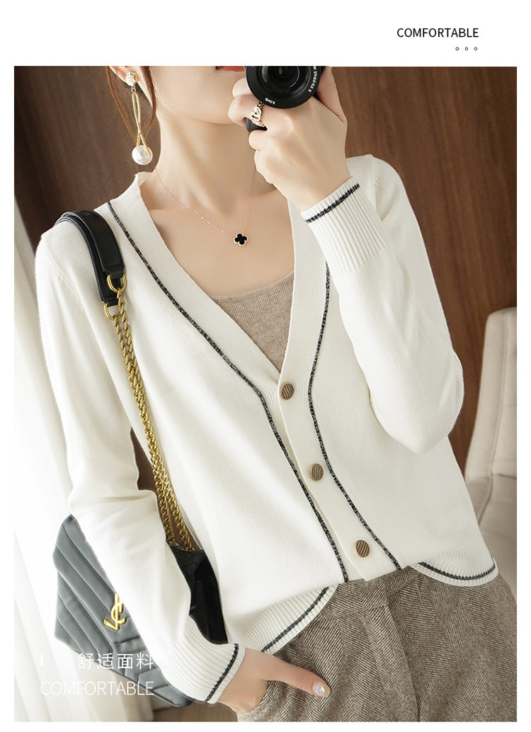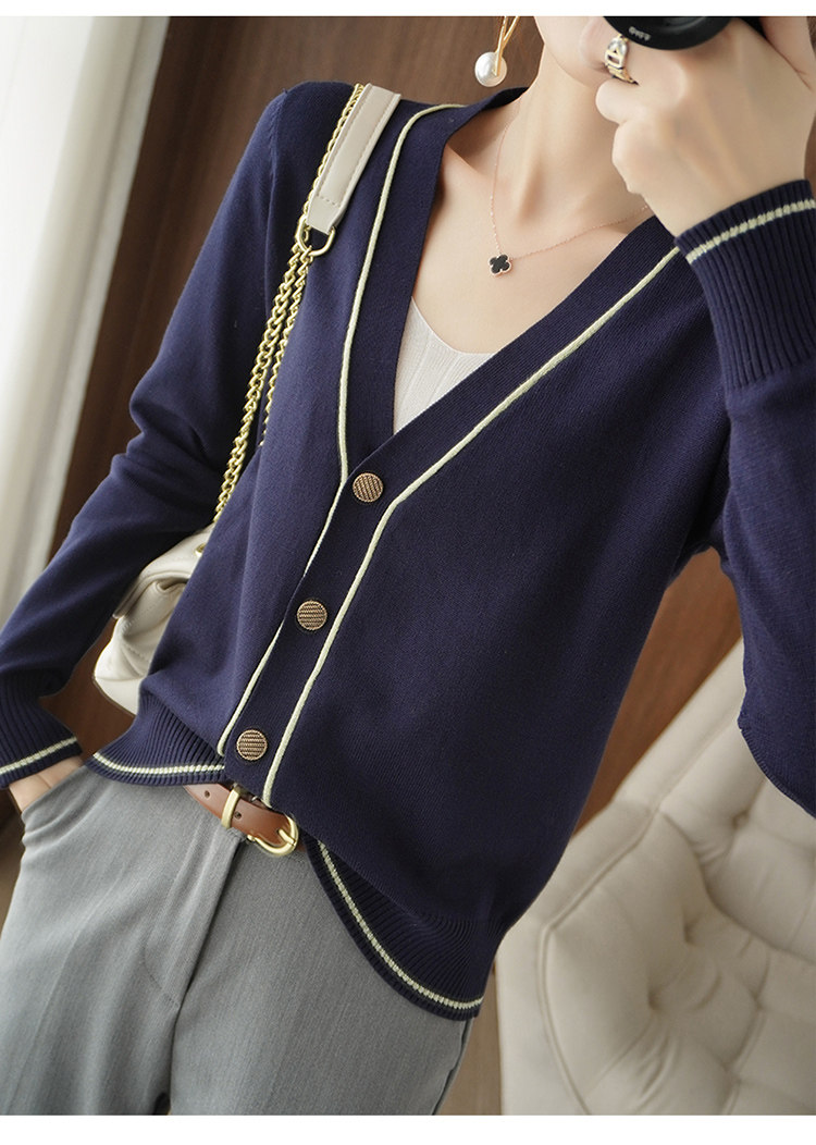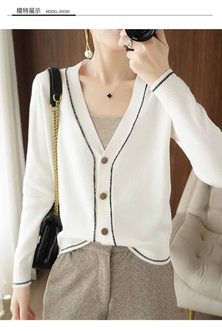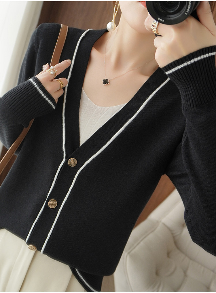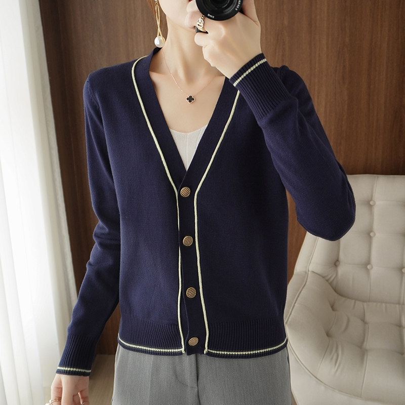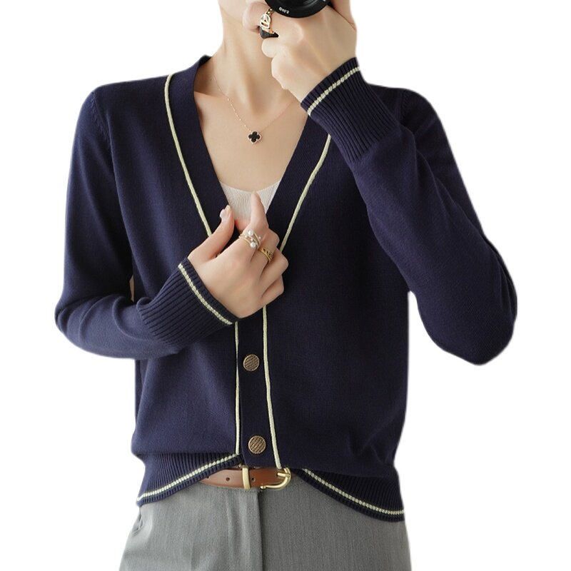 Осенняя тонкая куртка, шерстяной кардиган, трикотажный свитер, лонгслив, V-образный вырез, в стиле Шанель