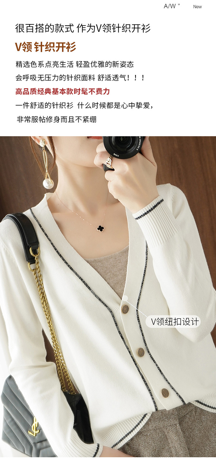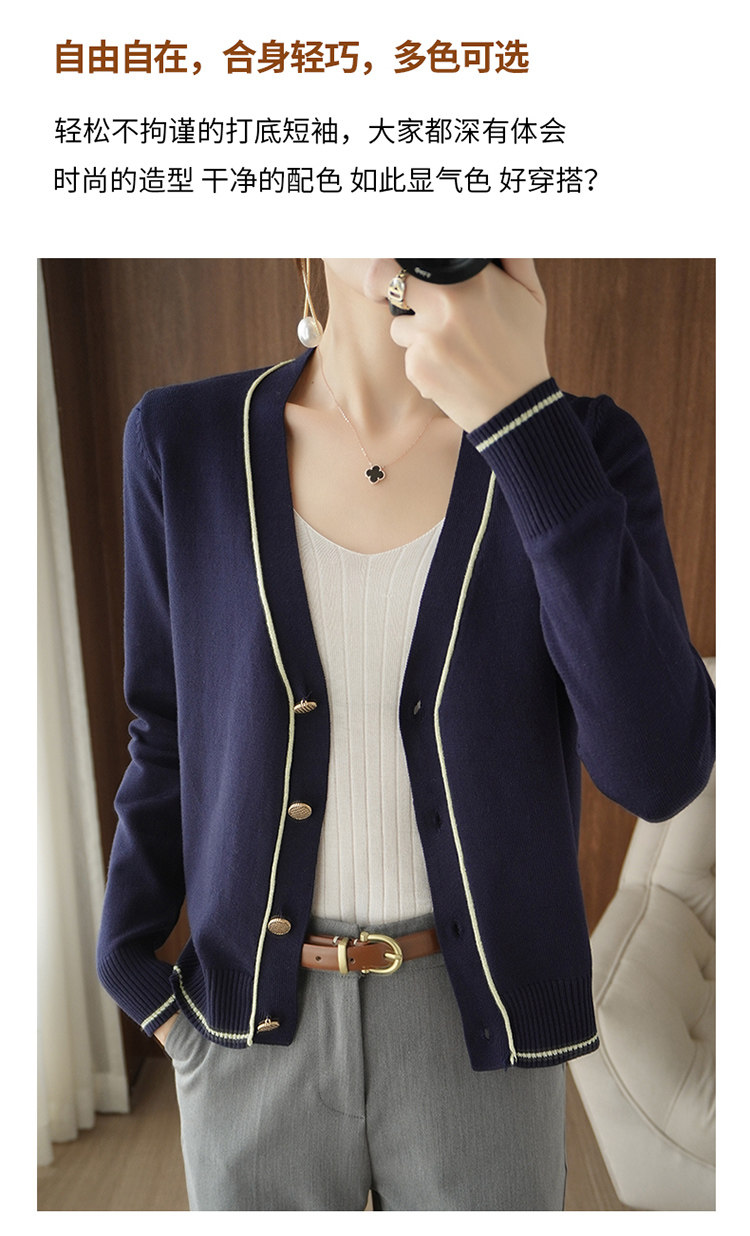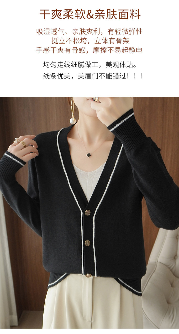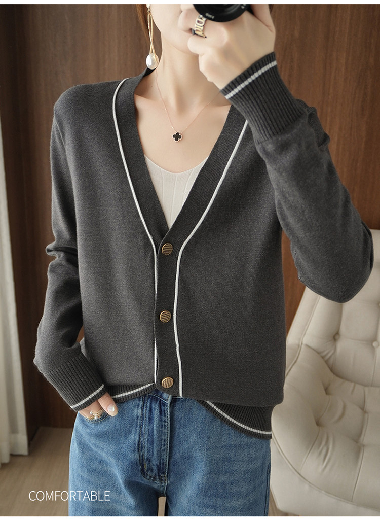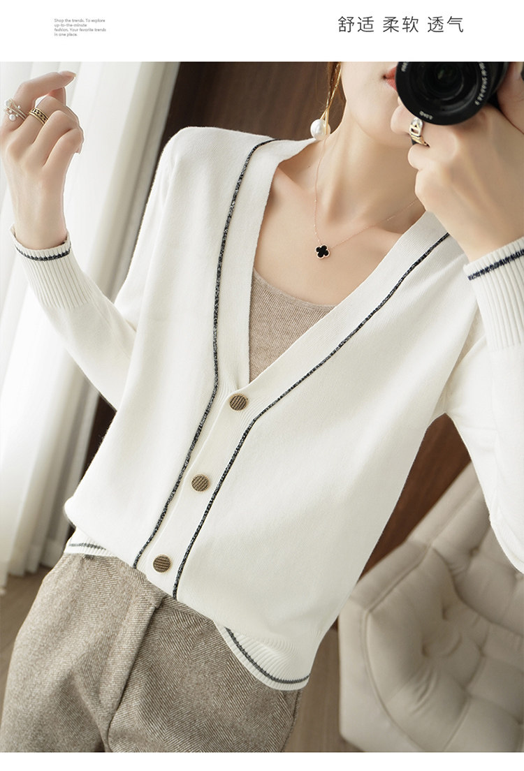 Осенняя тонкая куртка, шерстяной кардиган, трикотажный свитер, лонгслив, V-образный вырез, в стиле Шанель