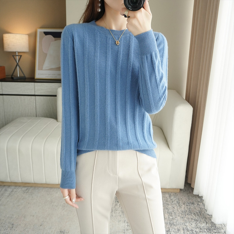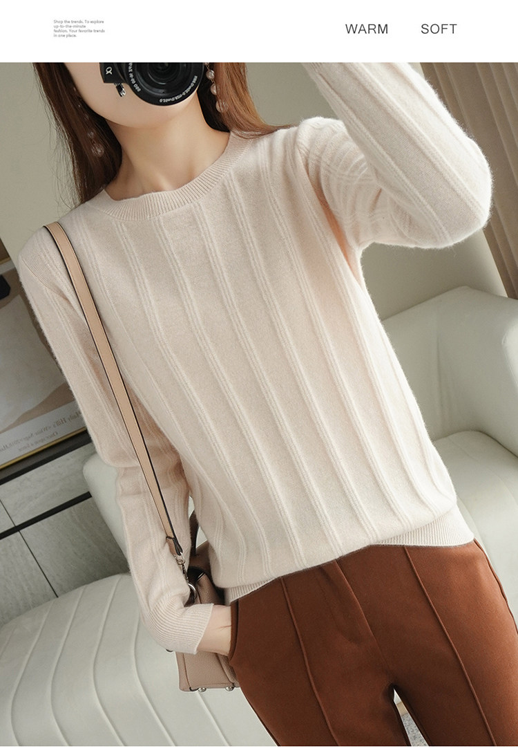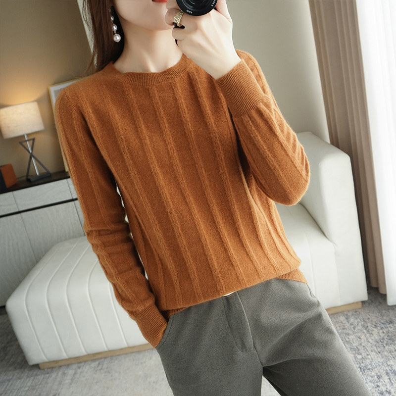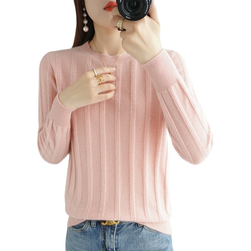 Шерстяной демисезонный трикотажный базовый кашемировый свитер с круглым воротником, коллекция 2021, свободный крой