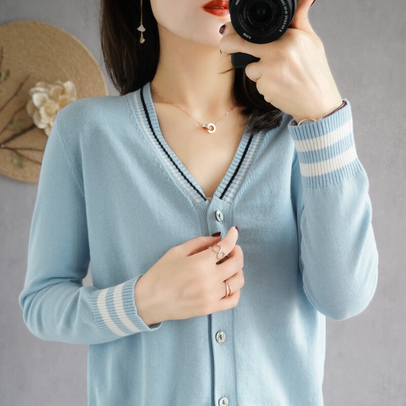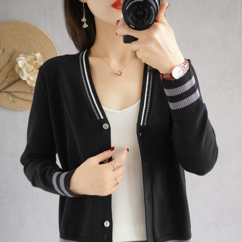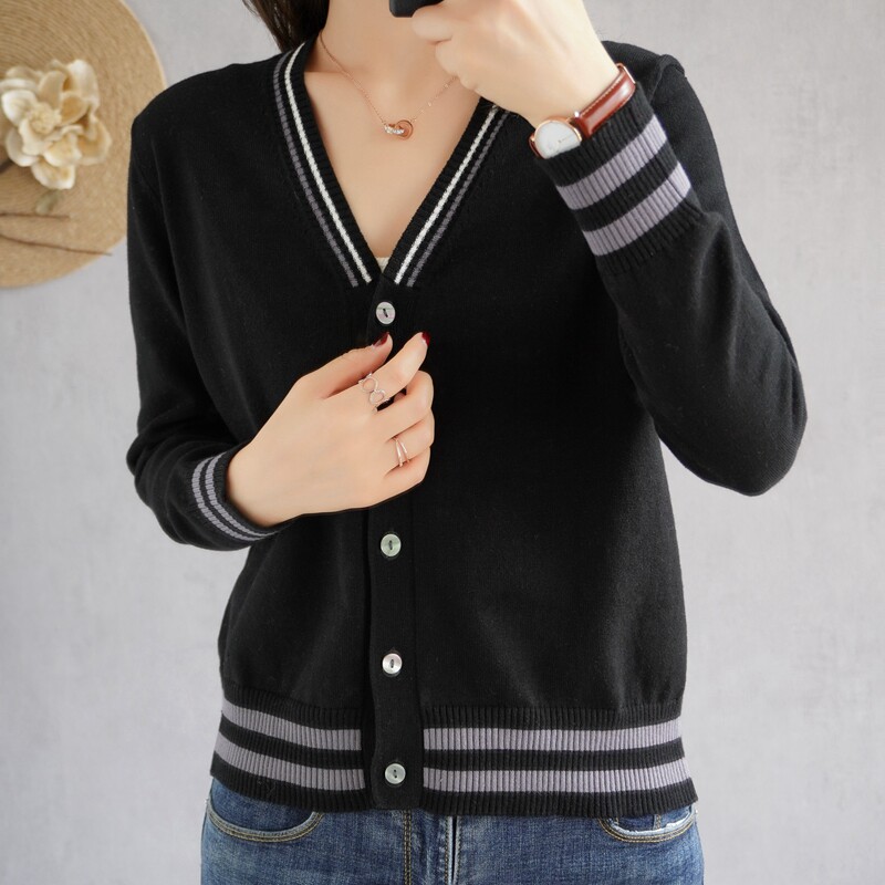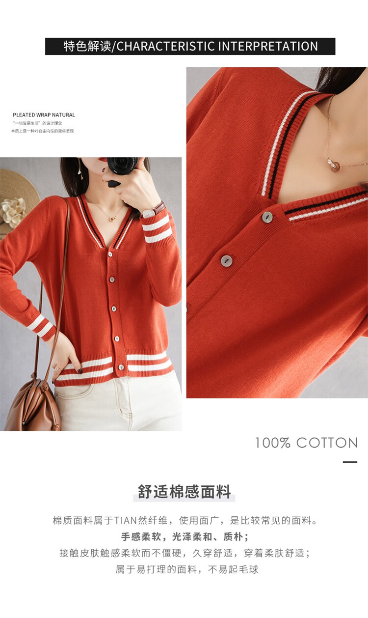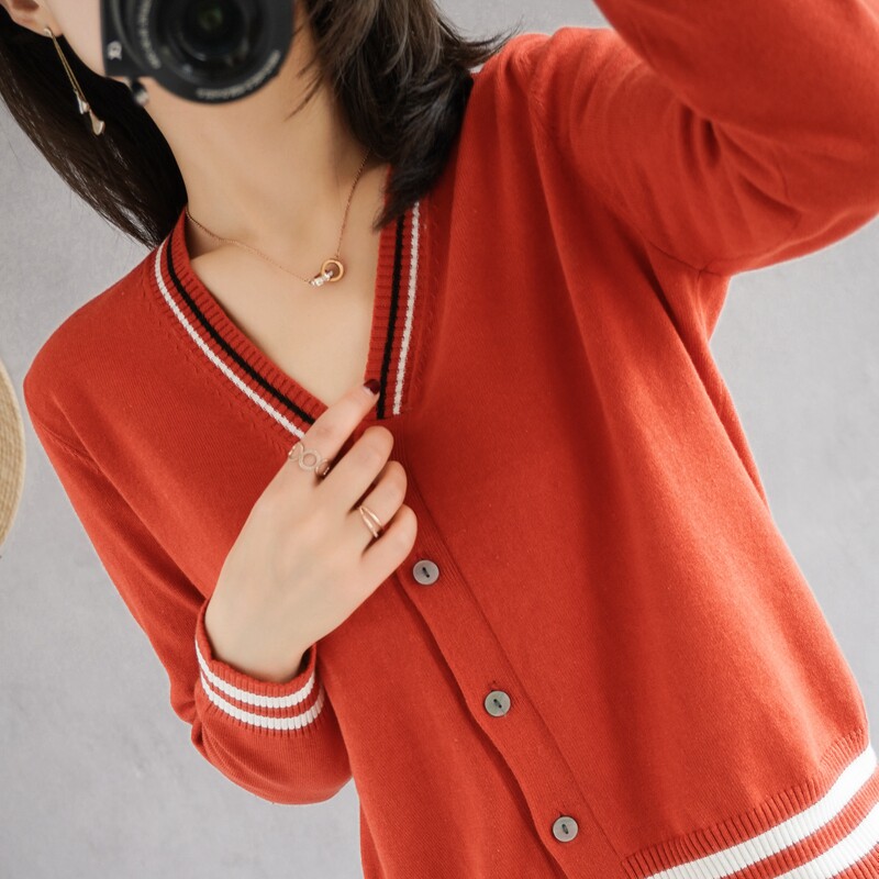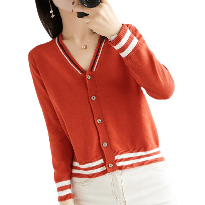 Демисезонный хлопковый короткий лонгслив, кардиган, свитер для отдыха, куртка, V-образный вырез, 100% хлопок