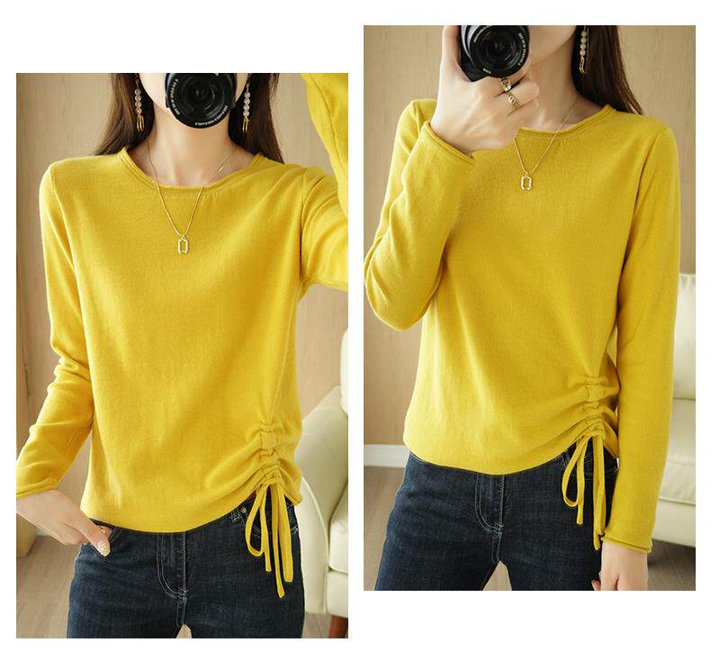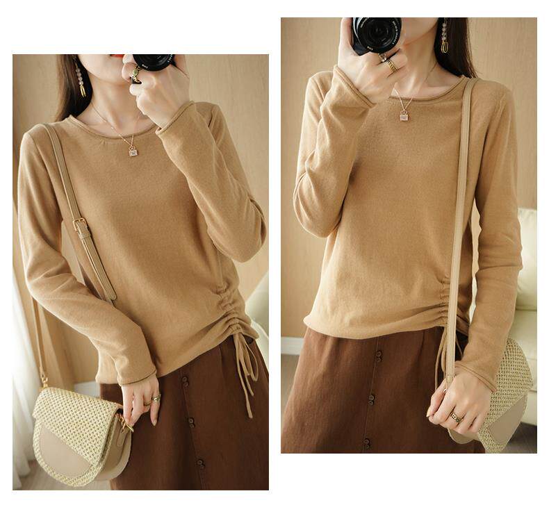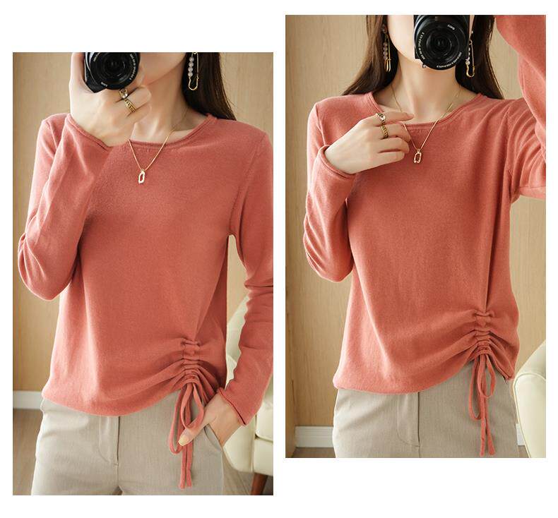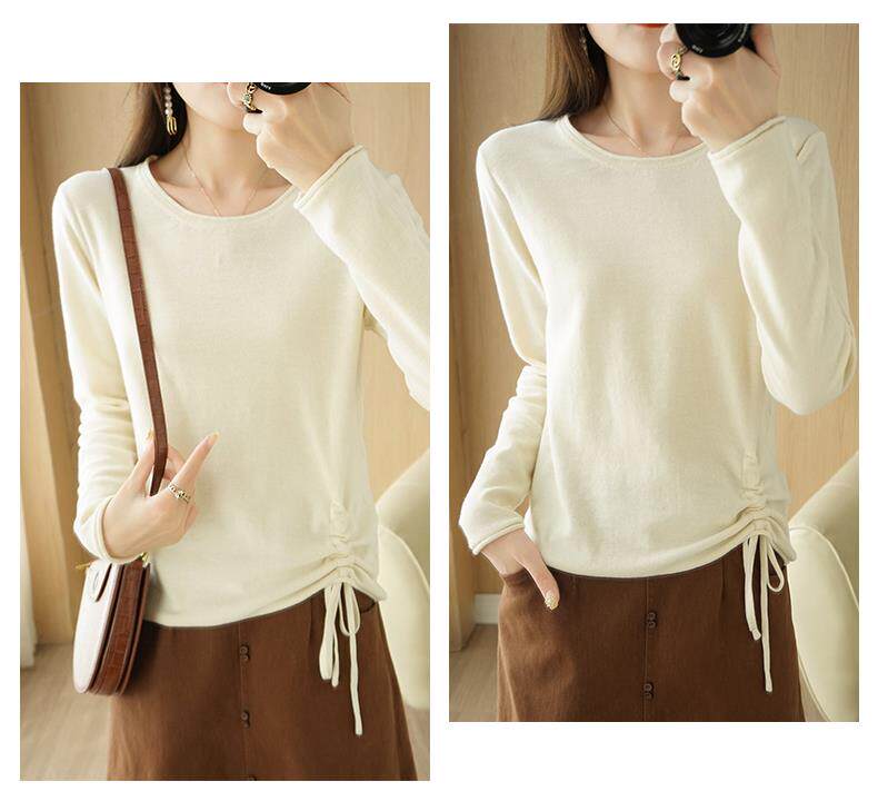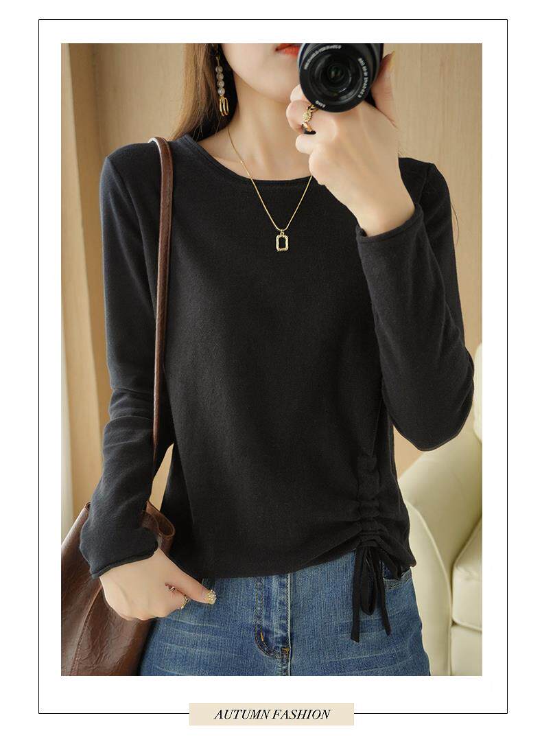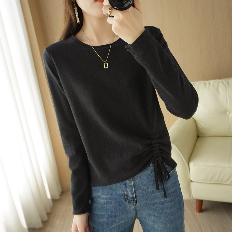 Хлопковый трикотажный лонгслив с круглым воротником, короткий свитер, 100% хлопок, на шнурках, в корейском стиле, городской стиль