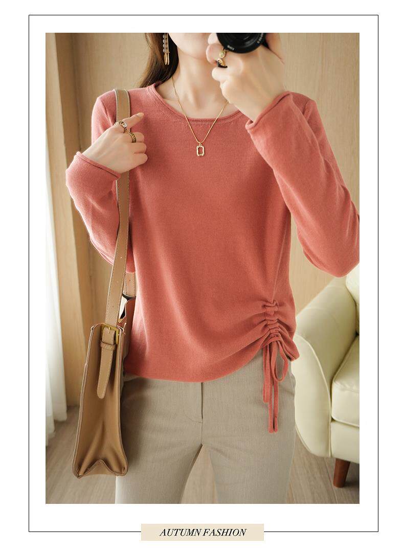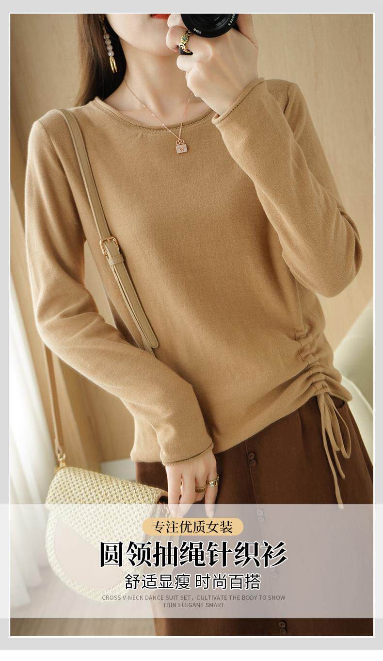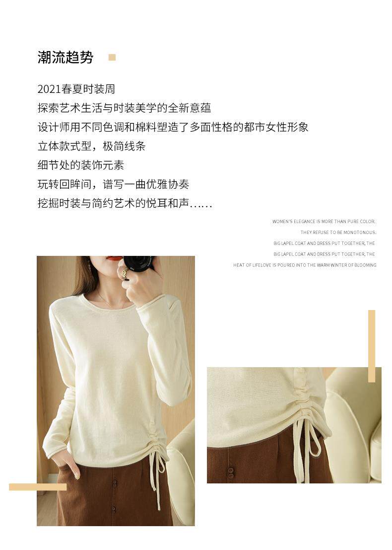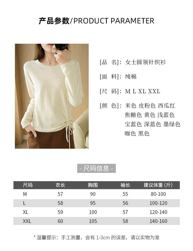 Хлопковый трикотажный лонгслив с круглым воротником, короткий свитер, 100% хлопок, на шнурках, в корейском стиле, городской стиль