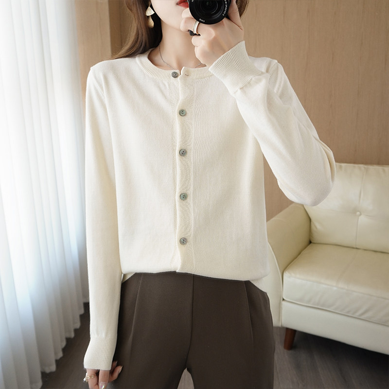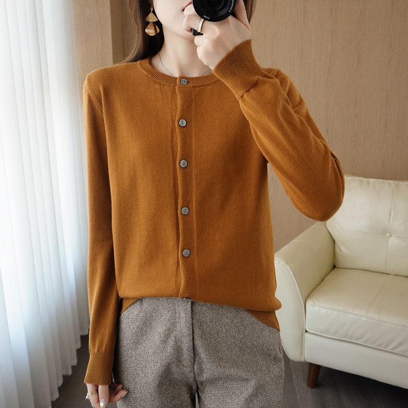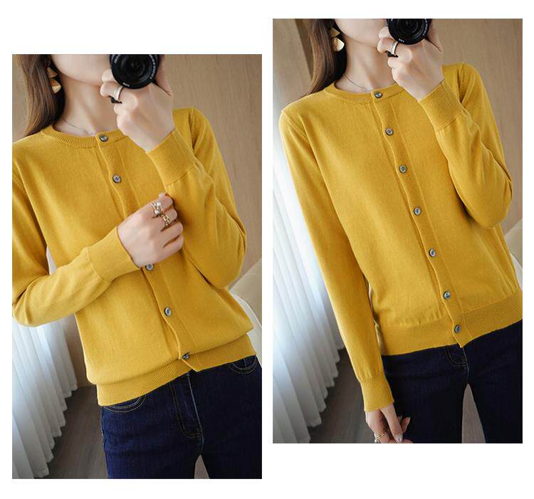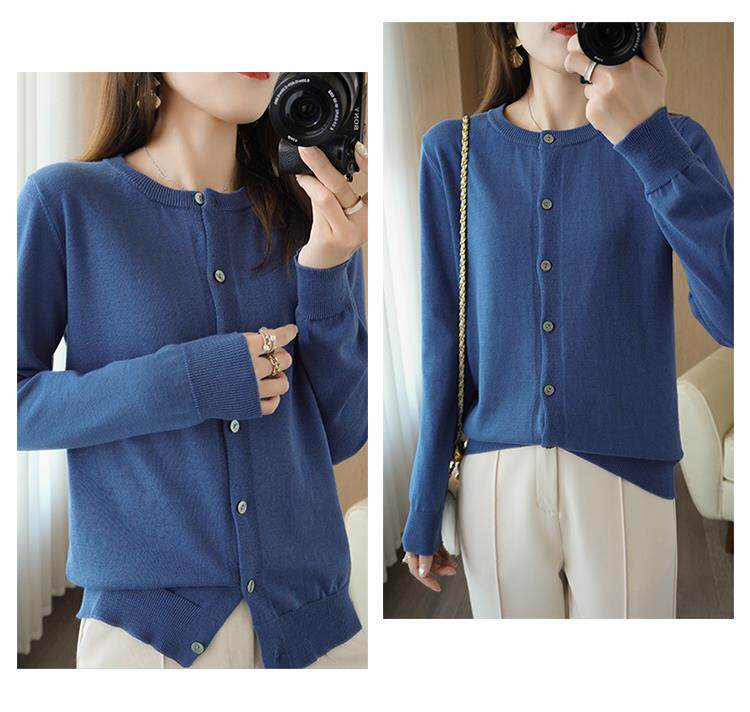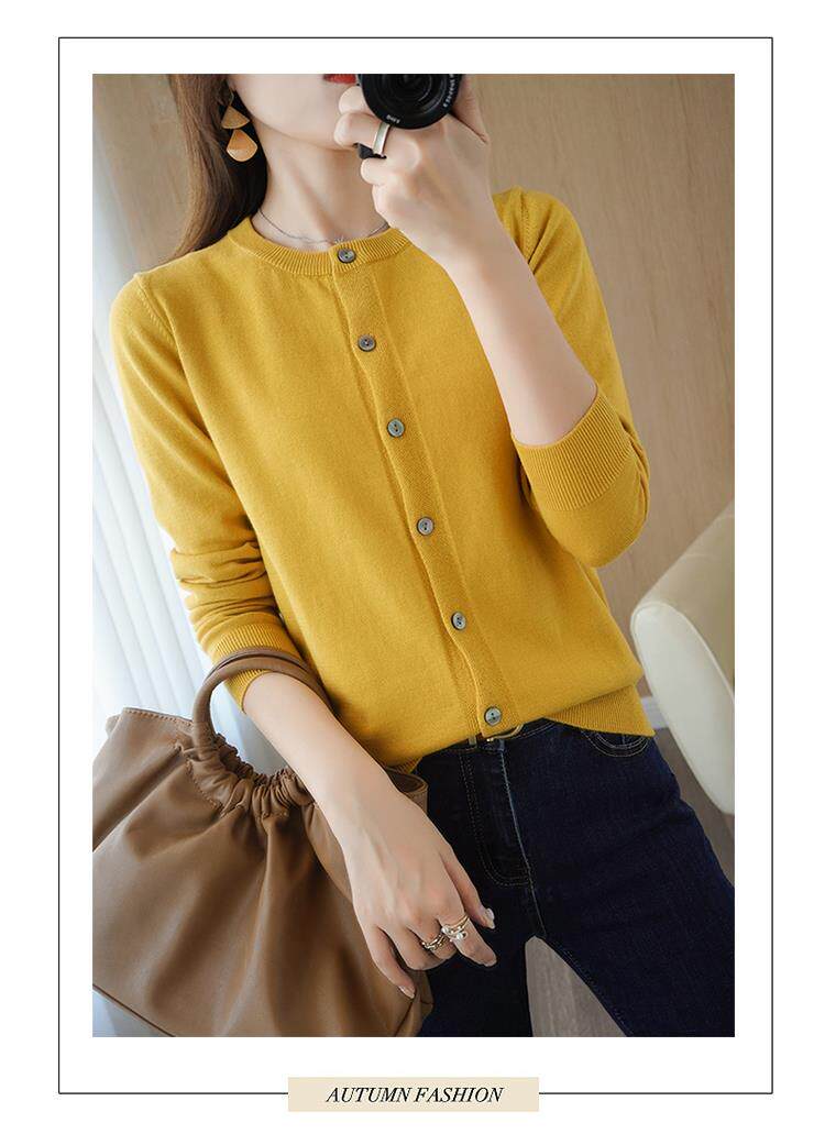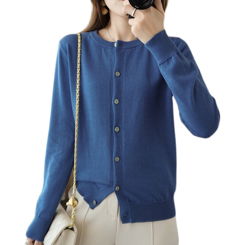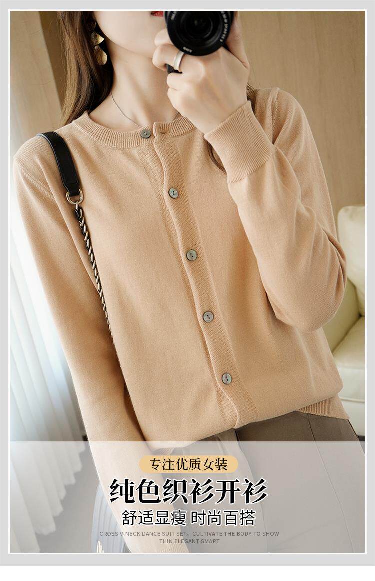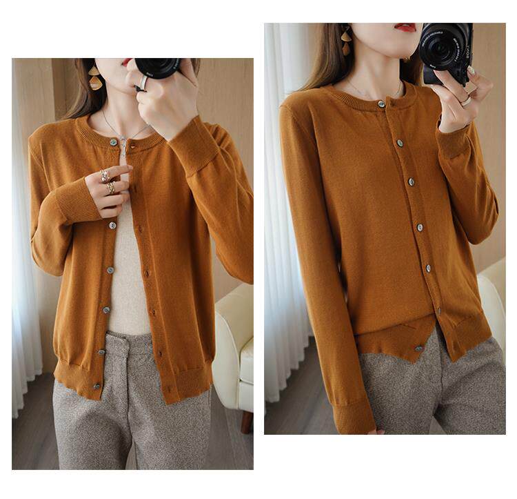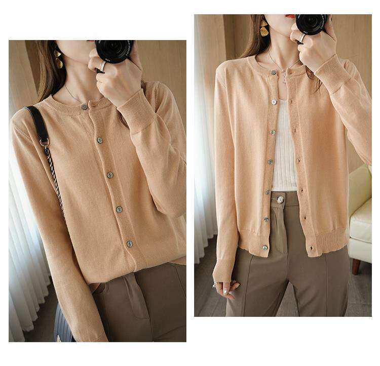 Демисезонный кардиган с круглым воротником, однотонный лонгслив, свитер, куртка, оверсайз