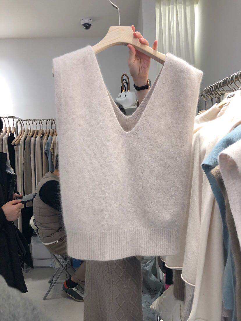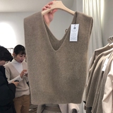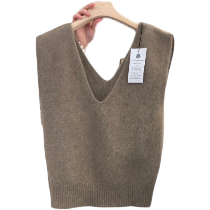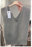 Демисезонный шерстяной короткий жилет, кашемировая трикотажная майка топ, куртка, свободный крой, V-образный вырез, большой размер