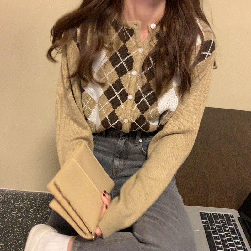 Тонкий свитер с ромбовидным узором, осенняя куртка, базовый трикотажный лонгслив, кардиган, 2021 года