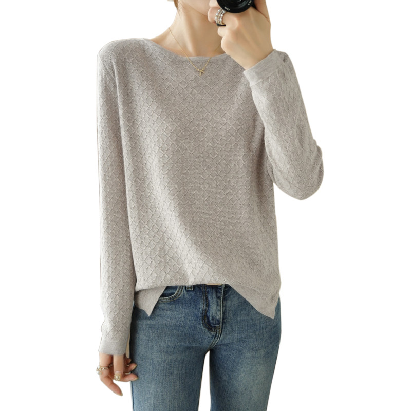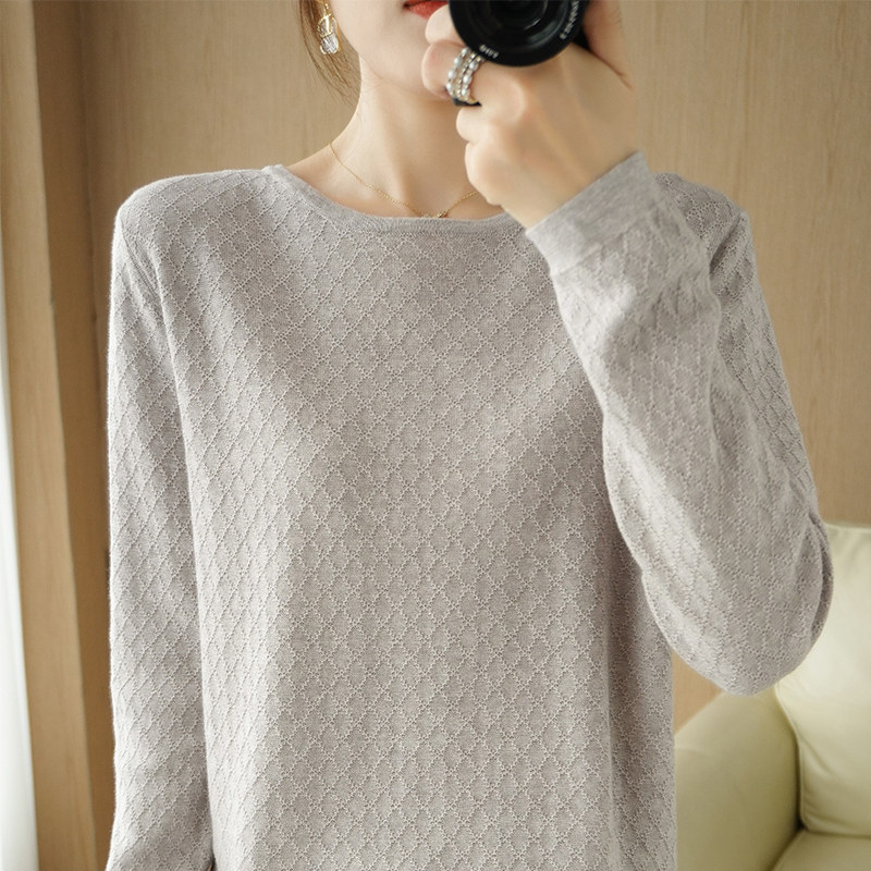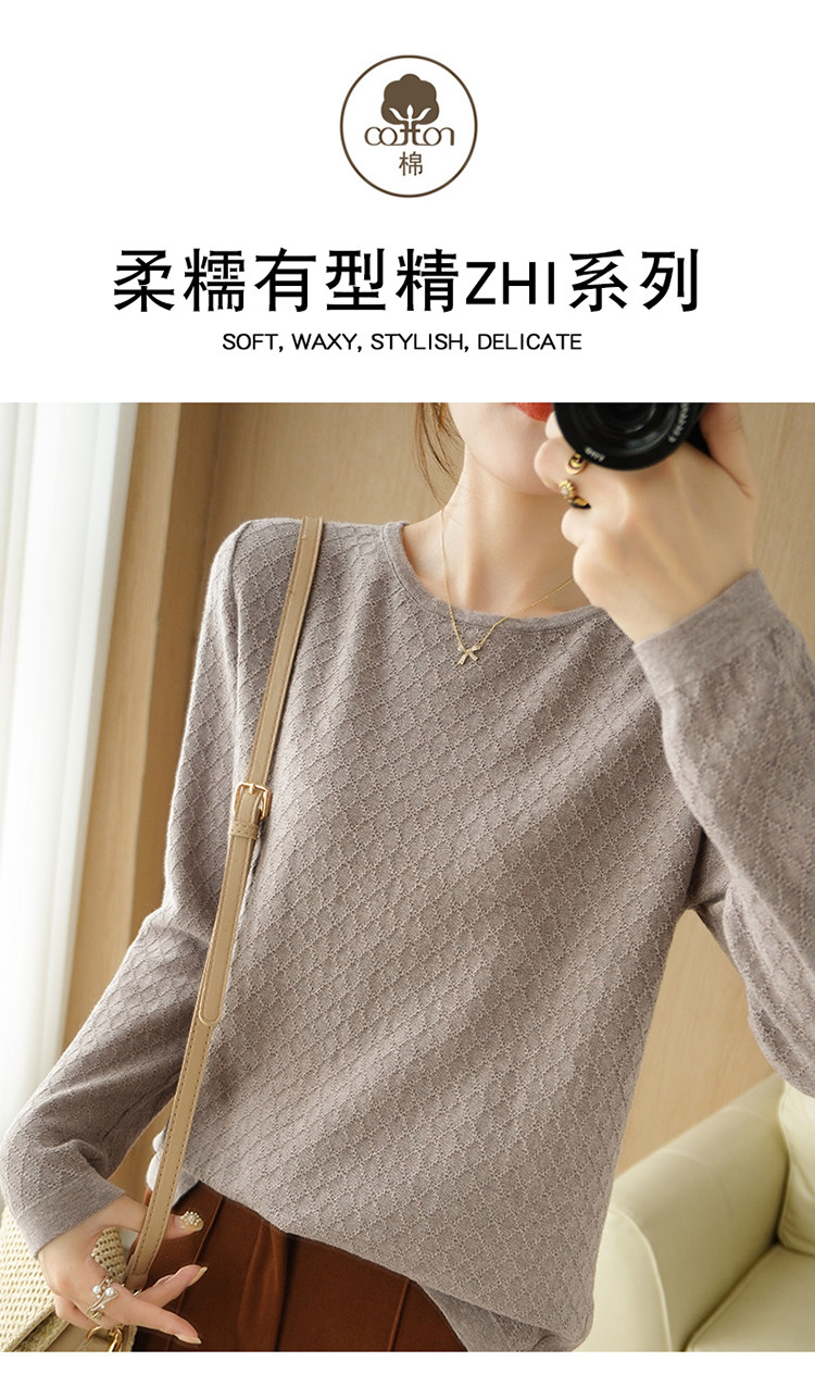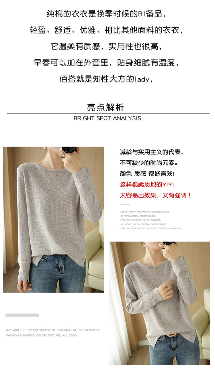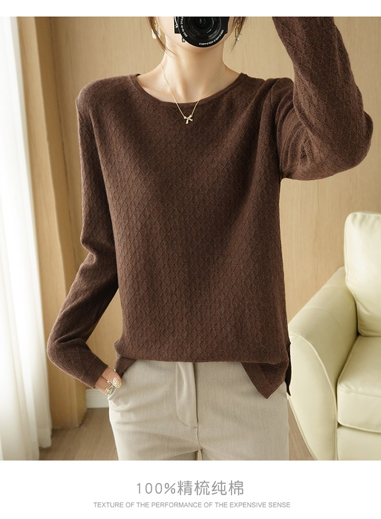 Осенний хлопковый трикотажный тонкий свитер, базовый лонгслив с круглым воротником, 100% хлопок