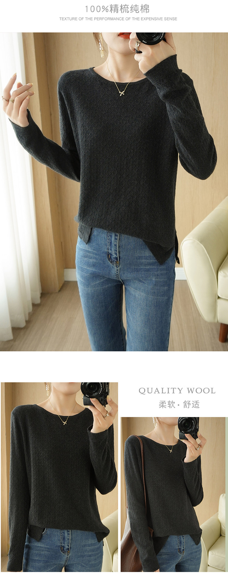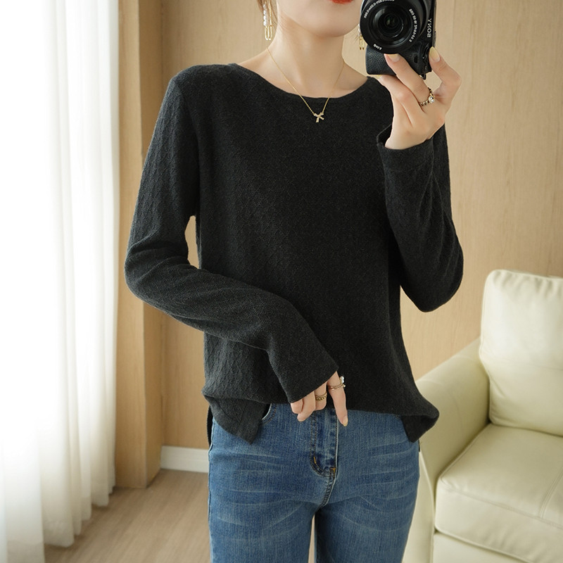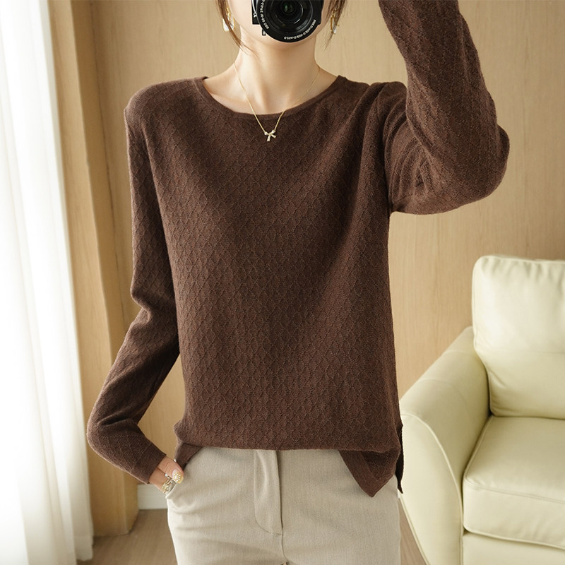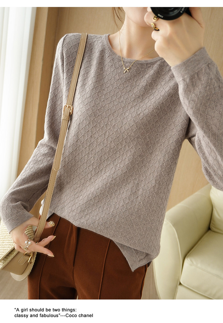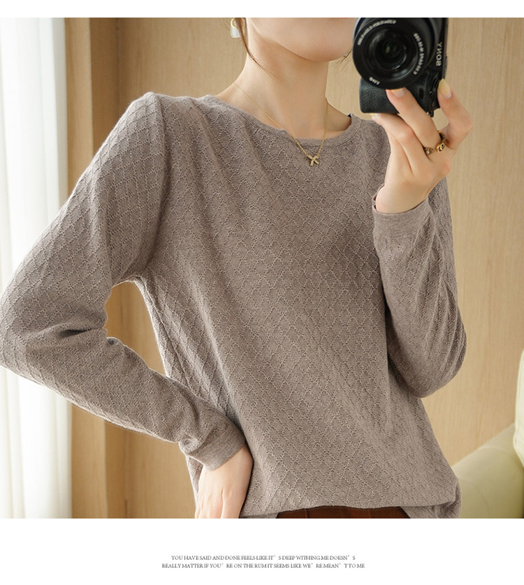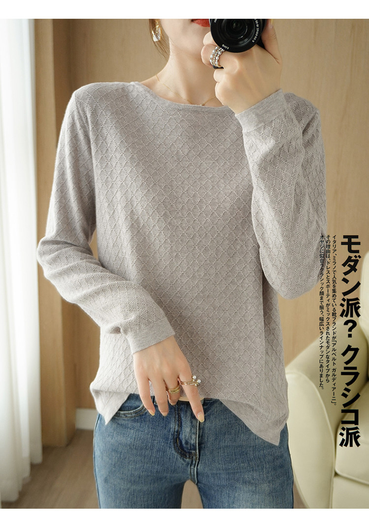 Осенний хлопковый трикотажный тонкий свитер, базовый лонгслив с круглым воротником, 100% хлопок