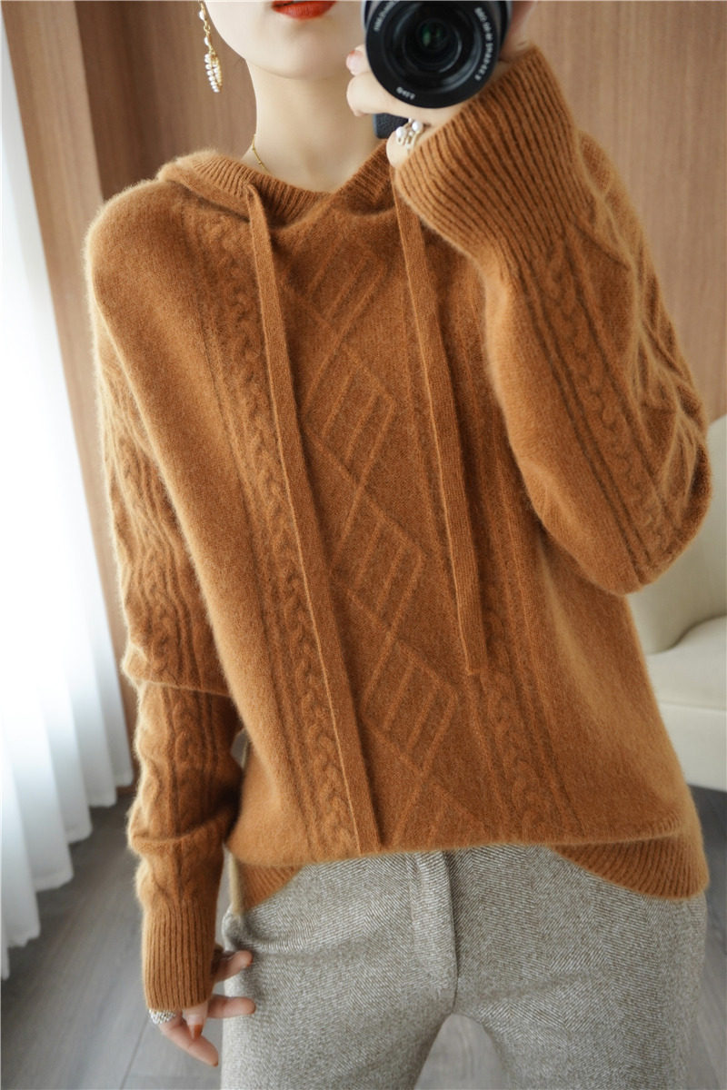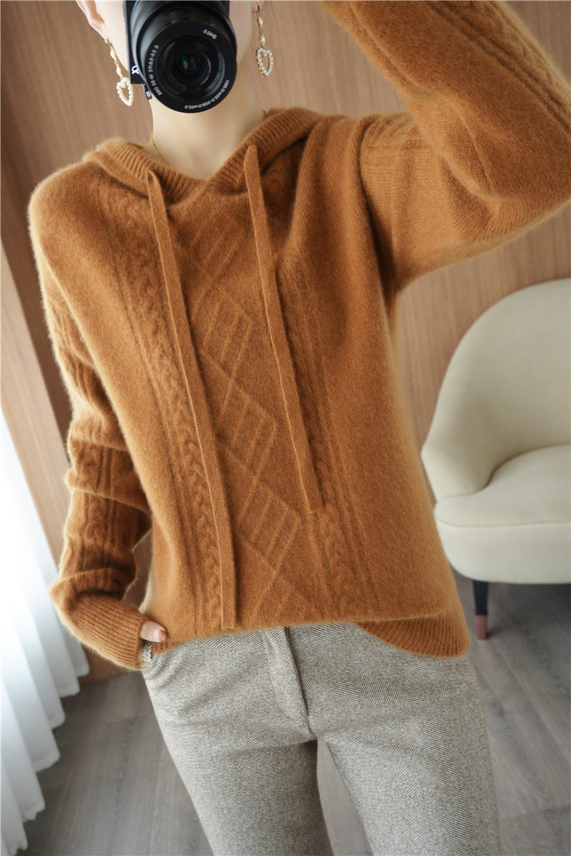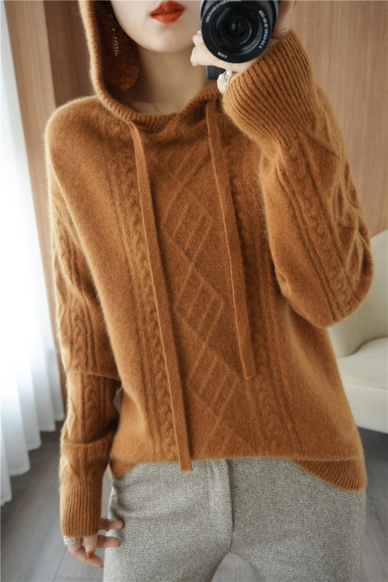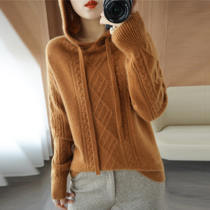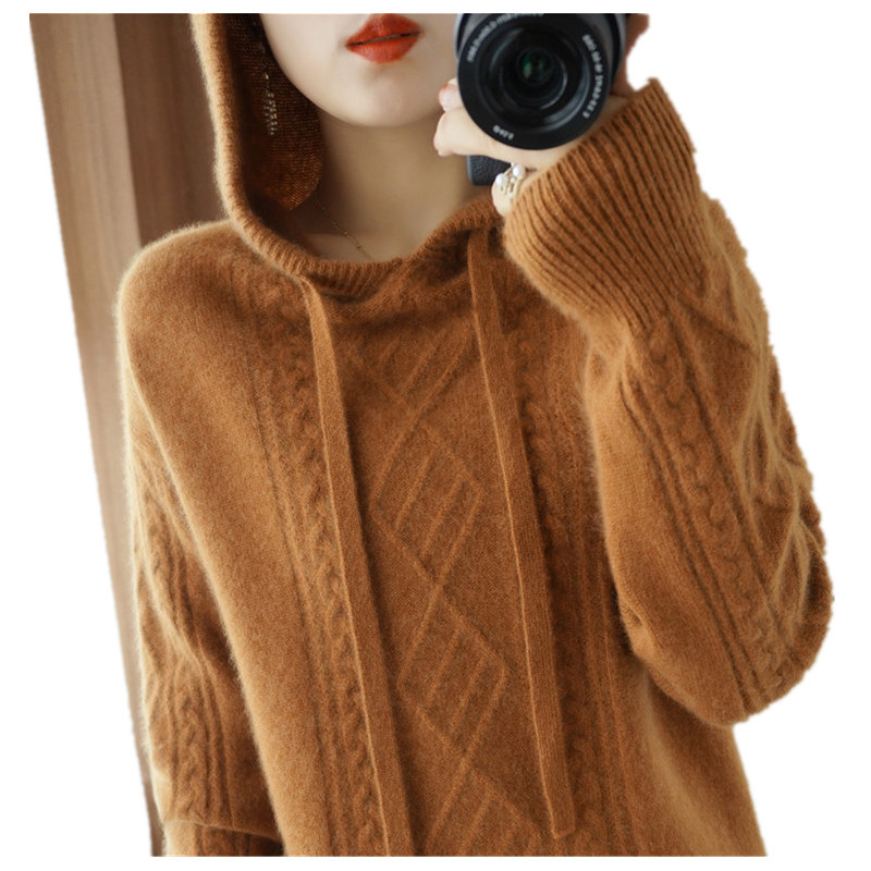 Зимний шерстяной балахон с капюшоном, трикотажная толстовка, трикотажный свитер, коллекция 2021, оверсайз